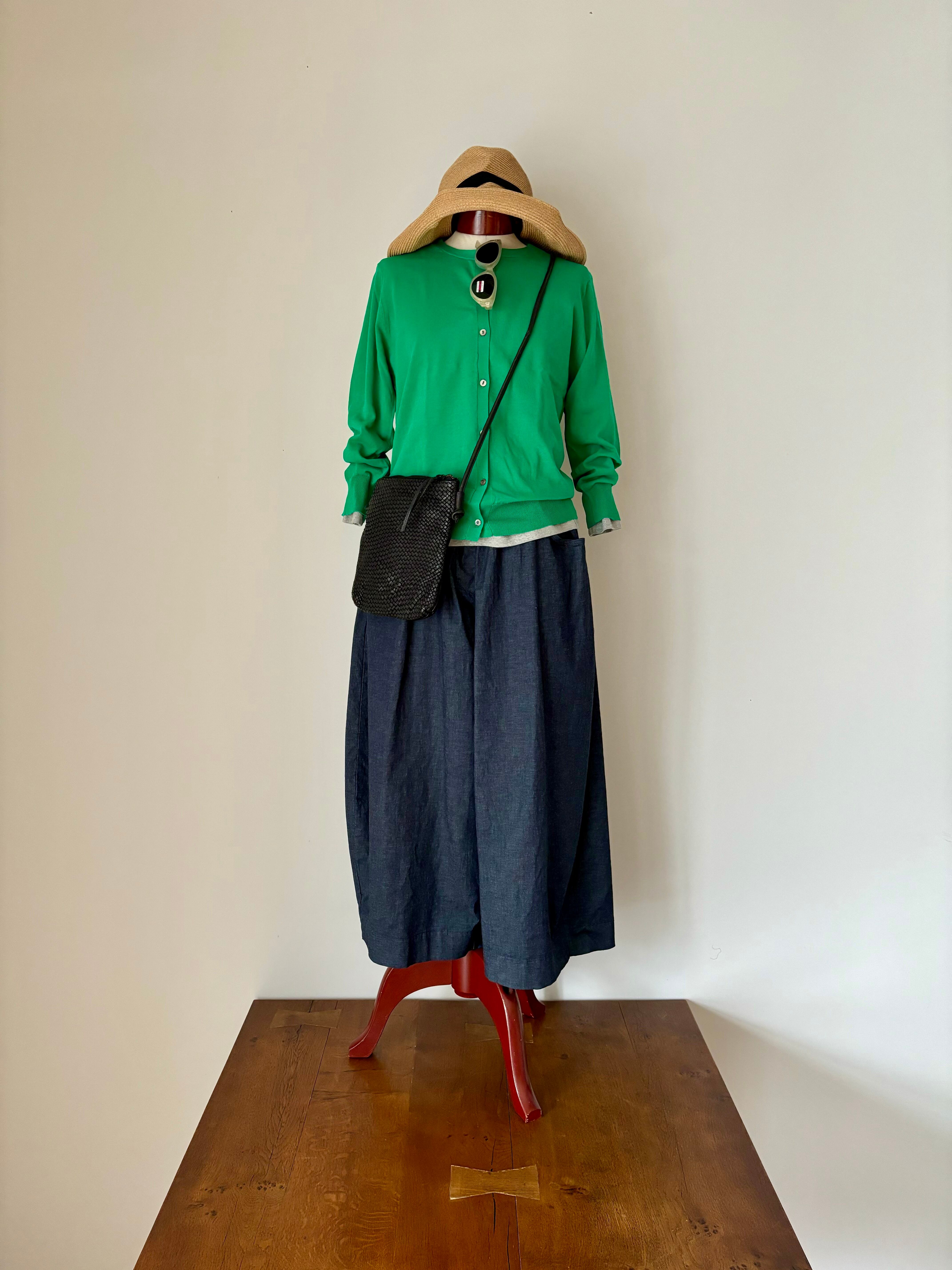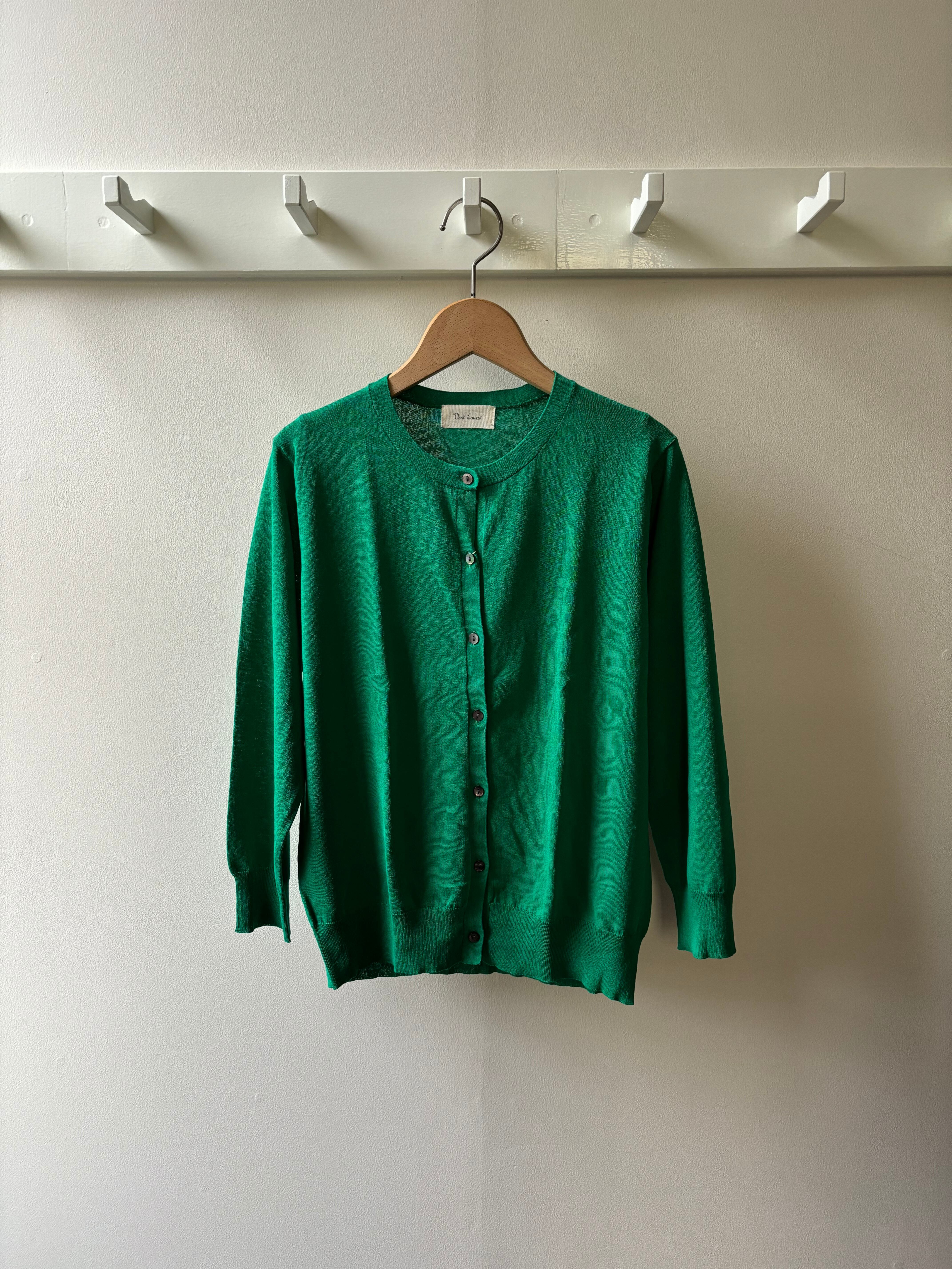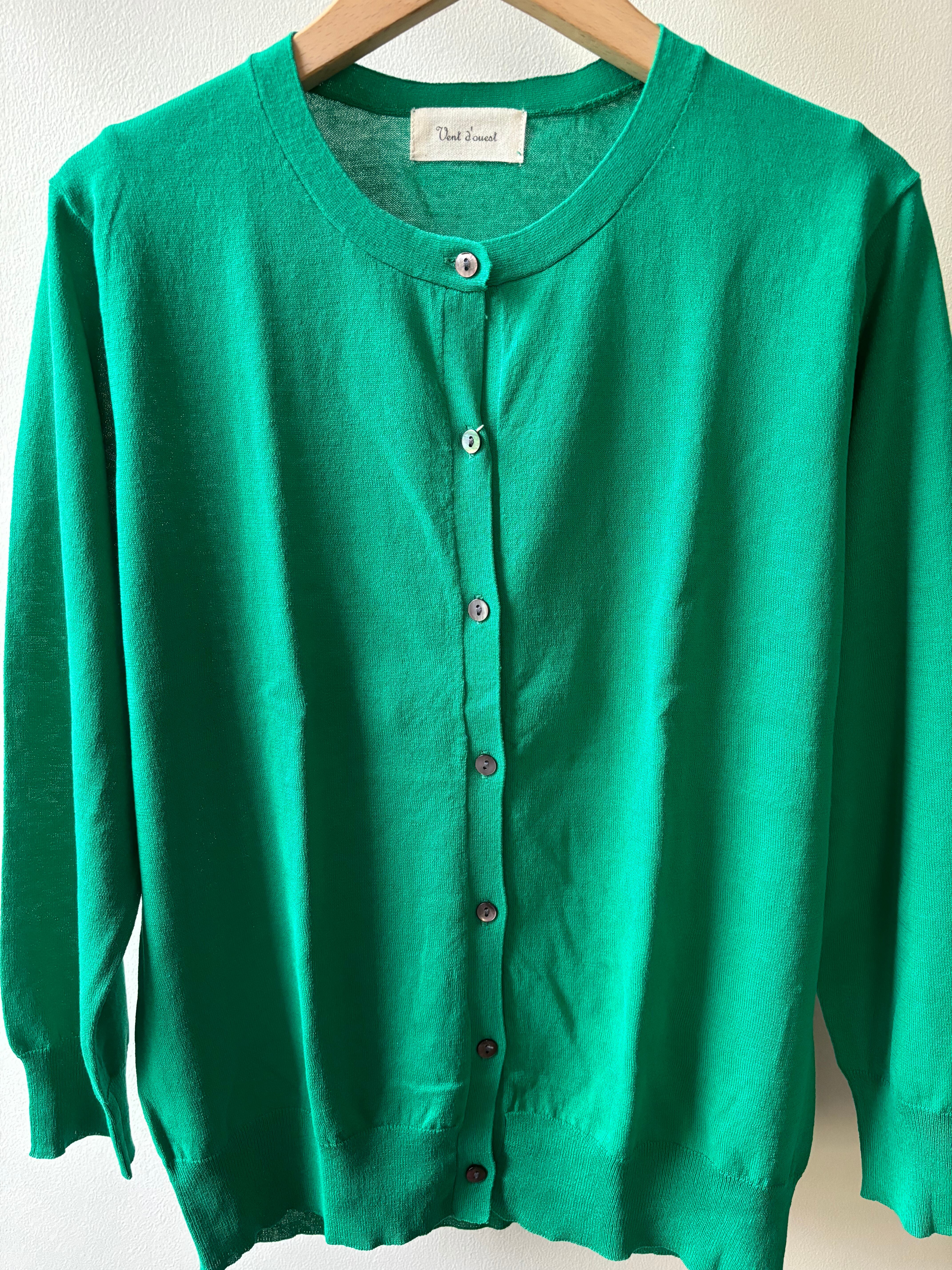 Vent d' ouest【ヴァン・ド・ウエスト】ハイゲージ・イタリア糸・クルーネック・コットンカーディガン (ブルー)
