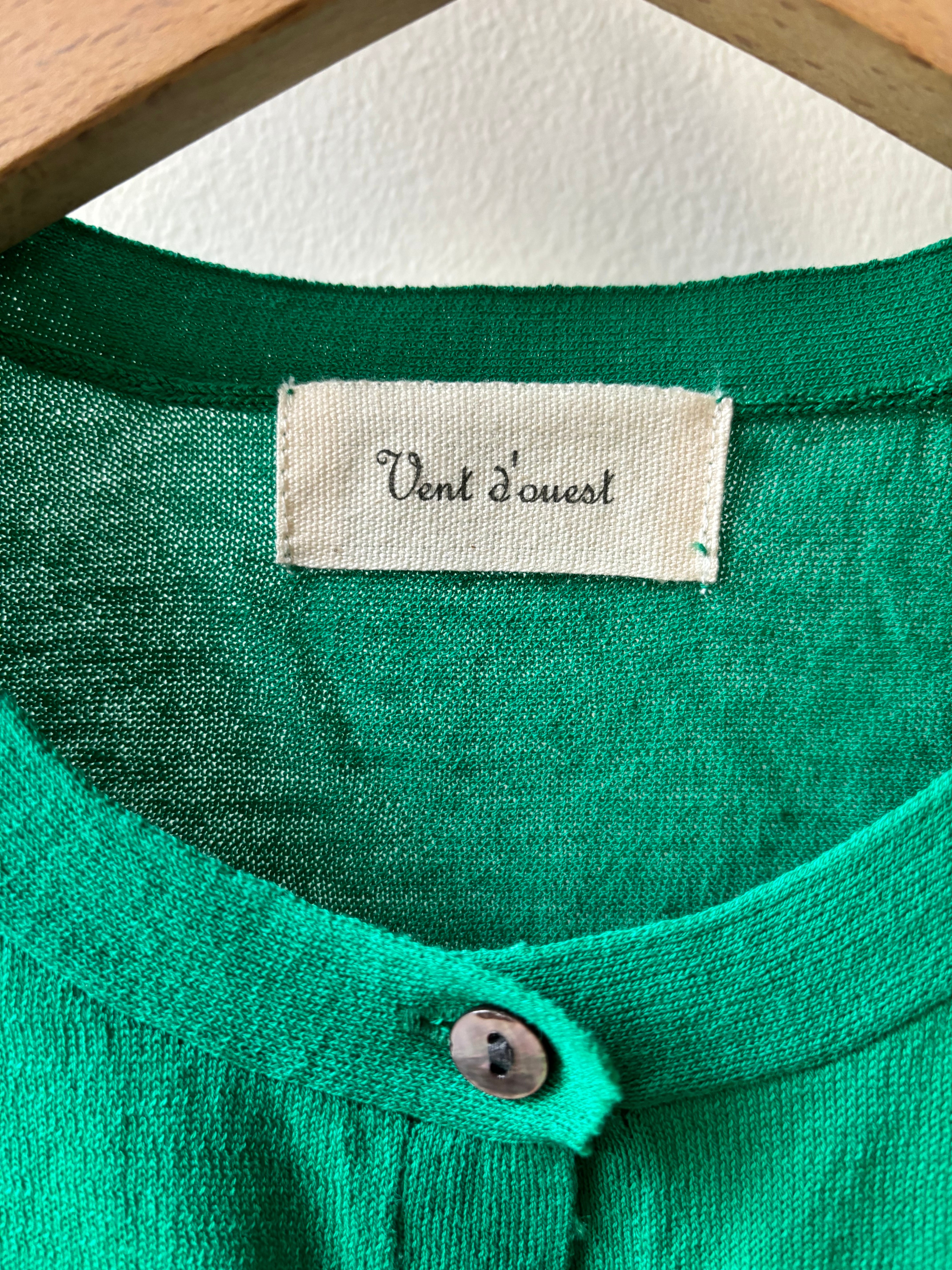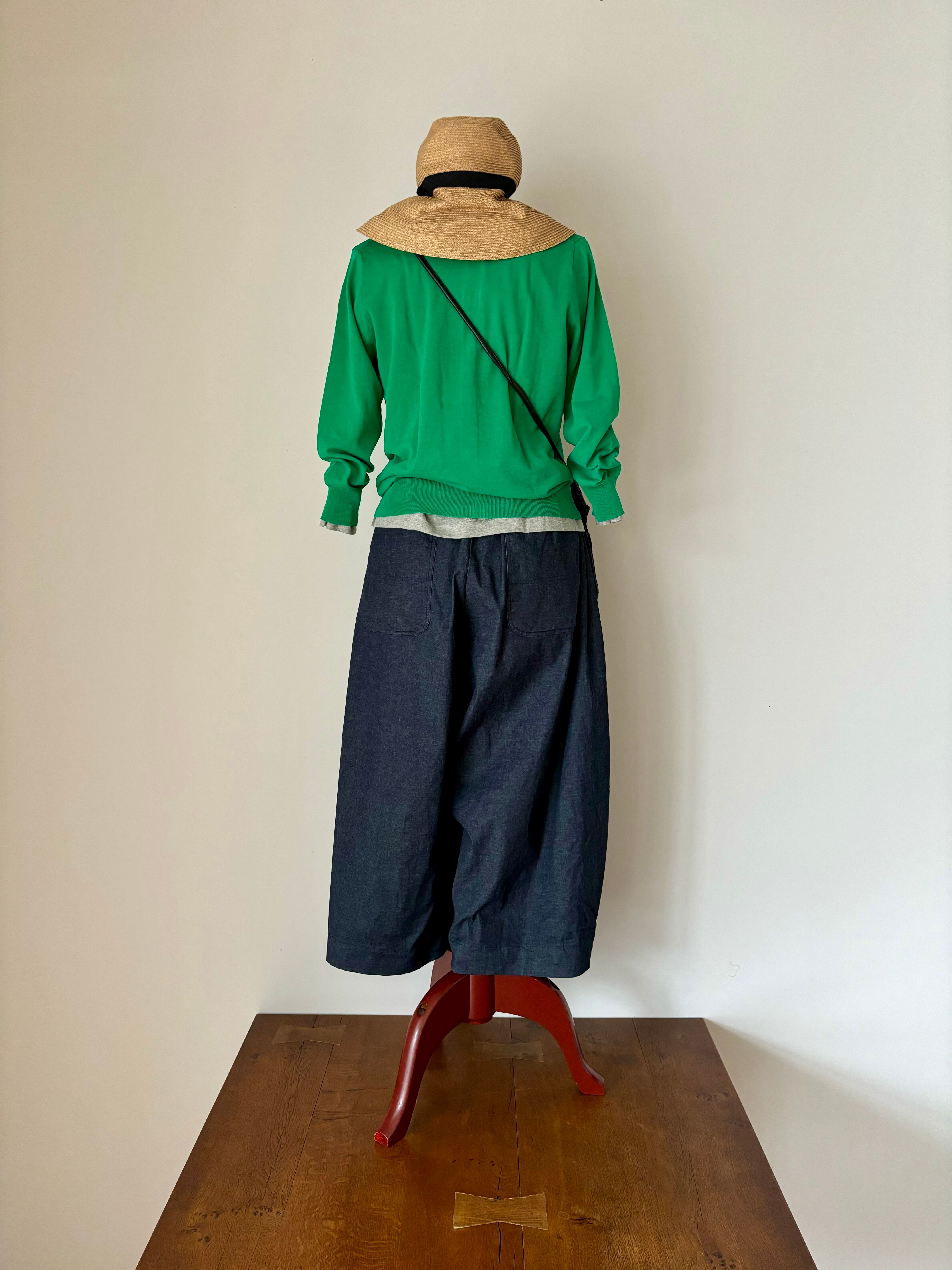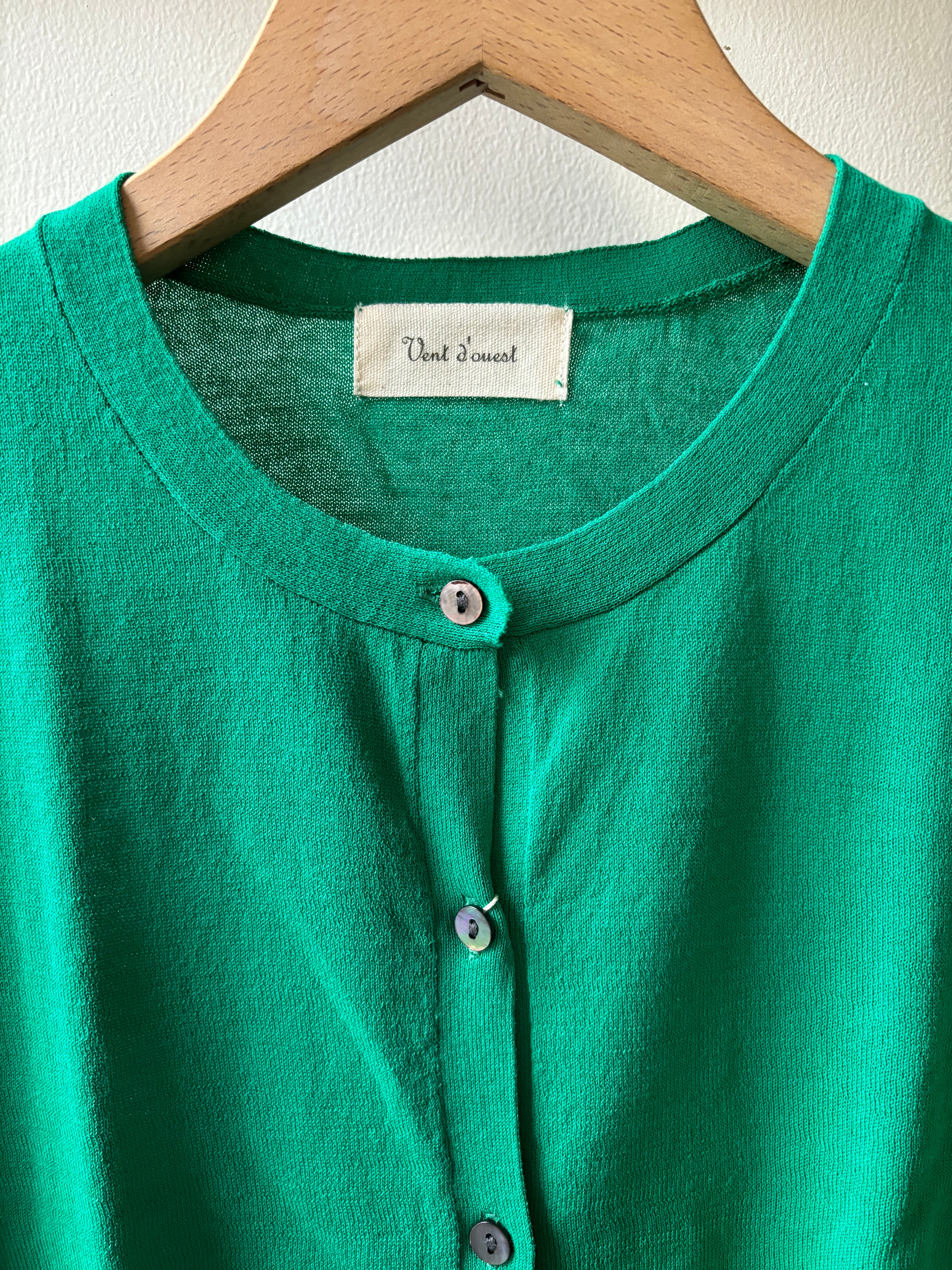 Vent d' ouest【ヴァン・ド・ウエスト】ハイゲージ・イタリア糸・クルーネック・コットンカーディガン (ブルー)