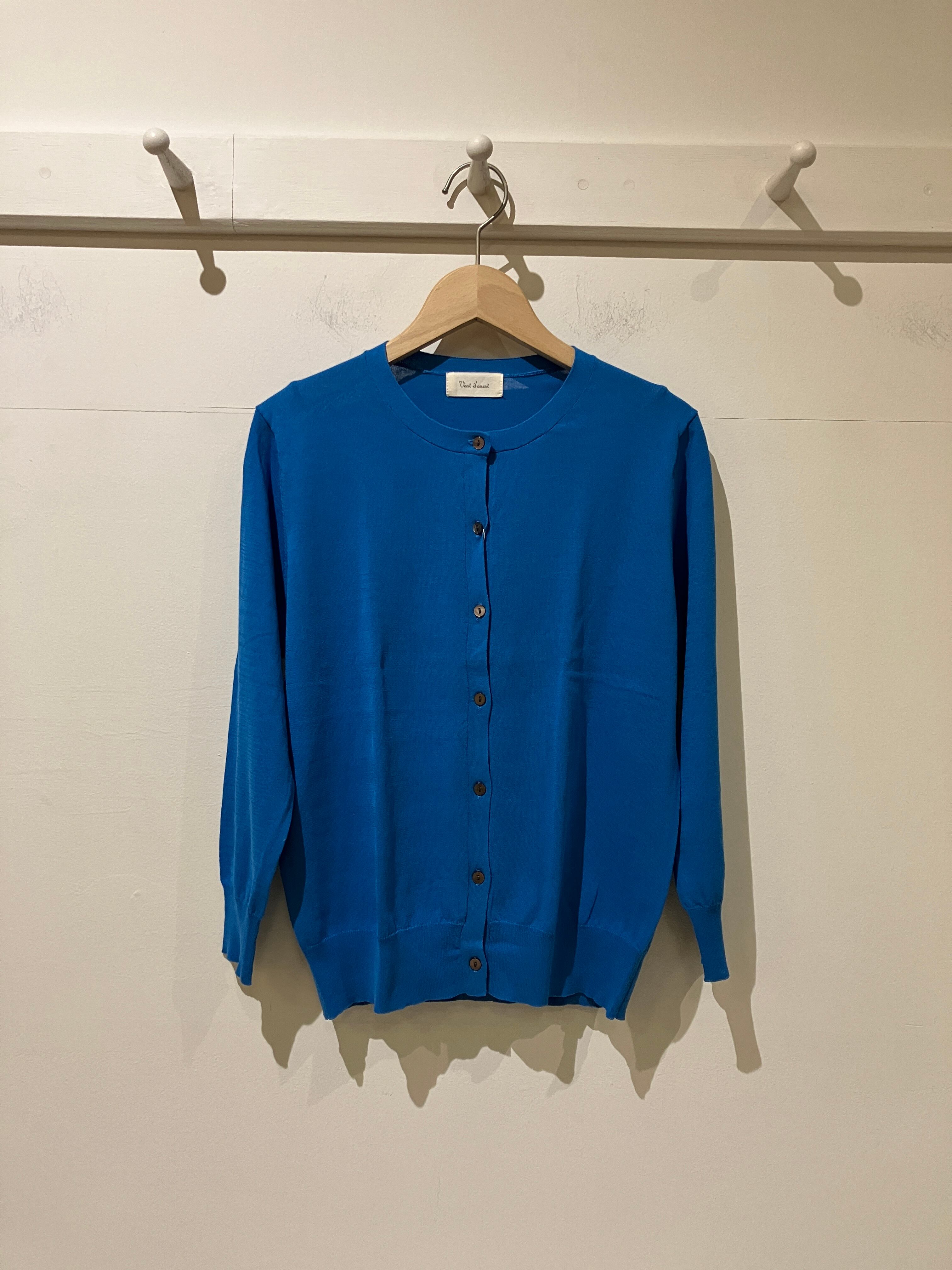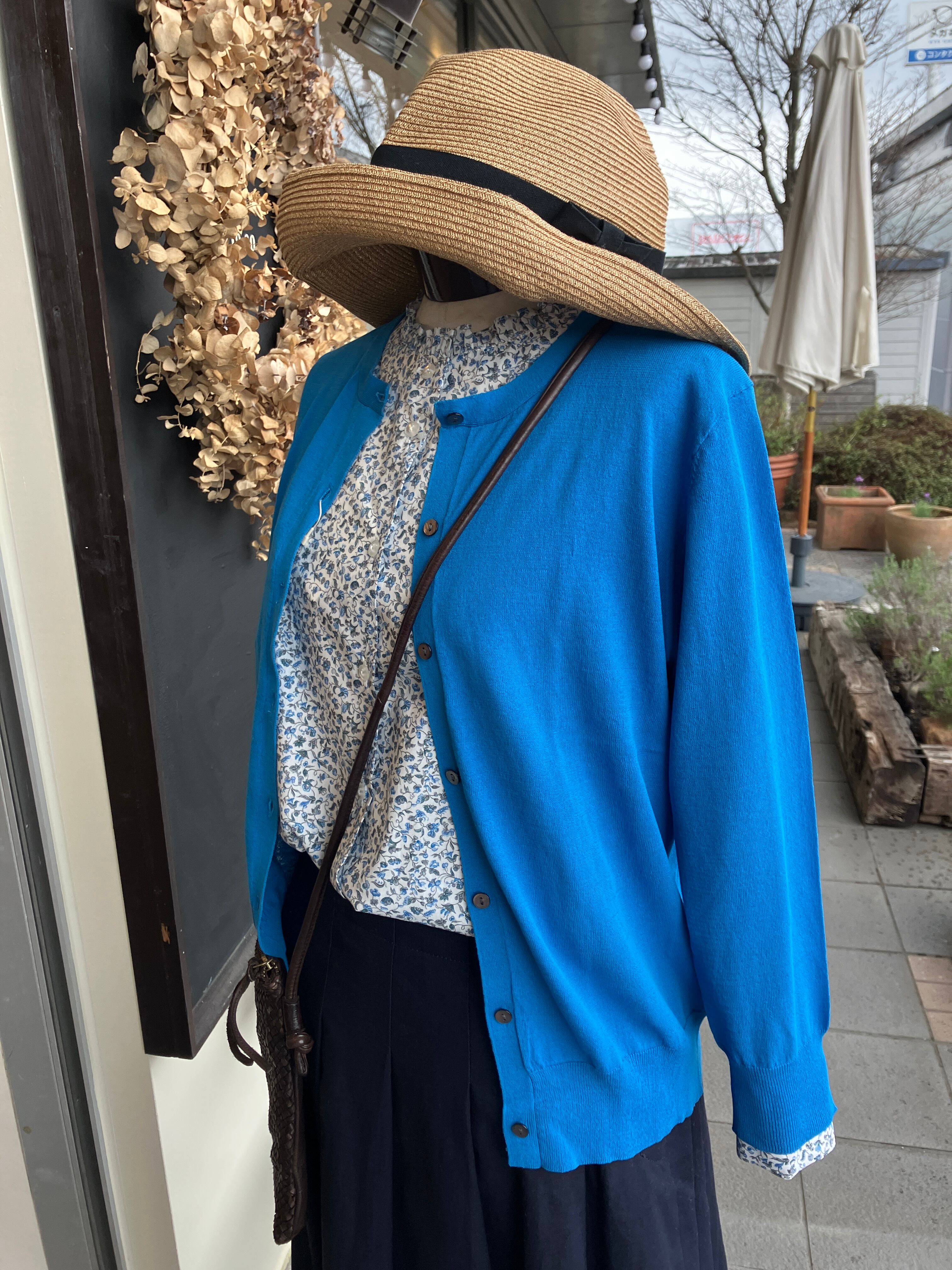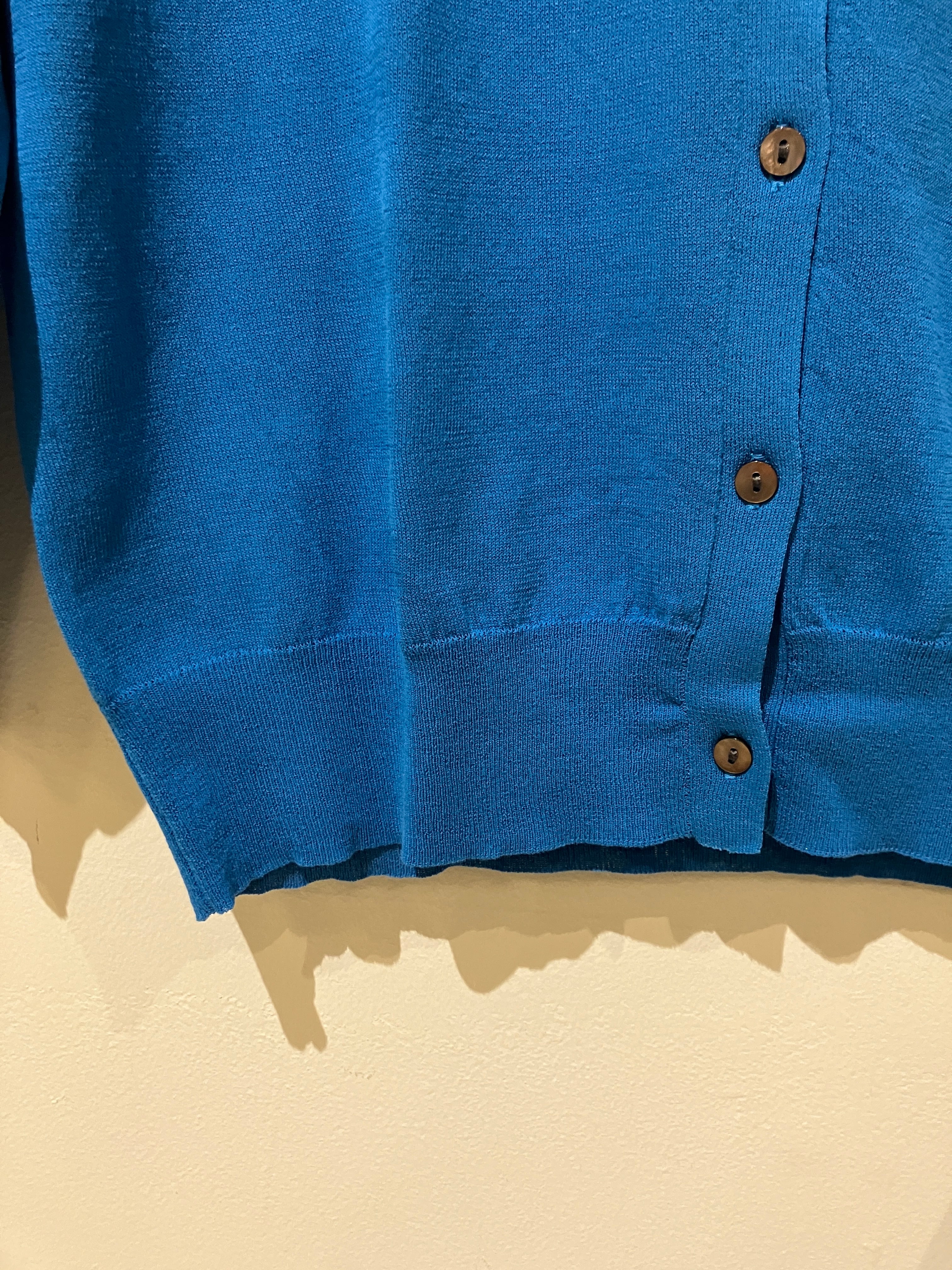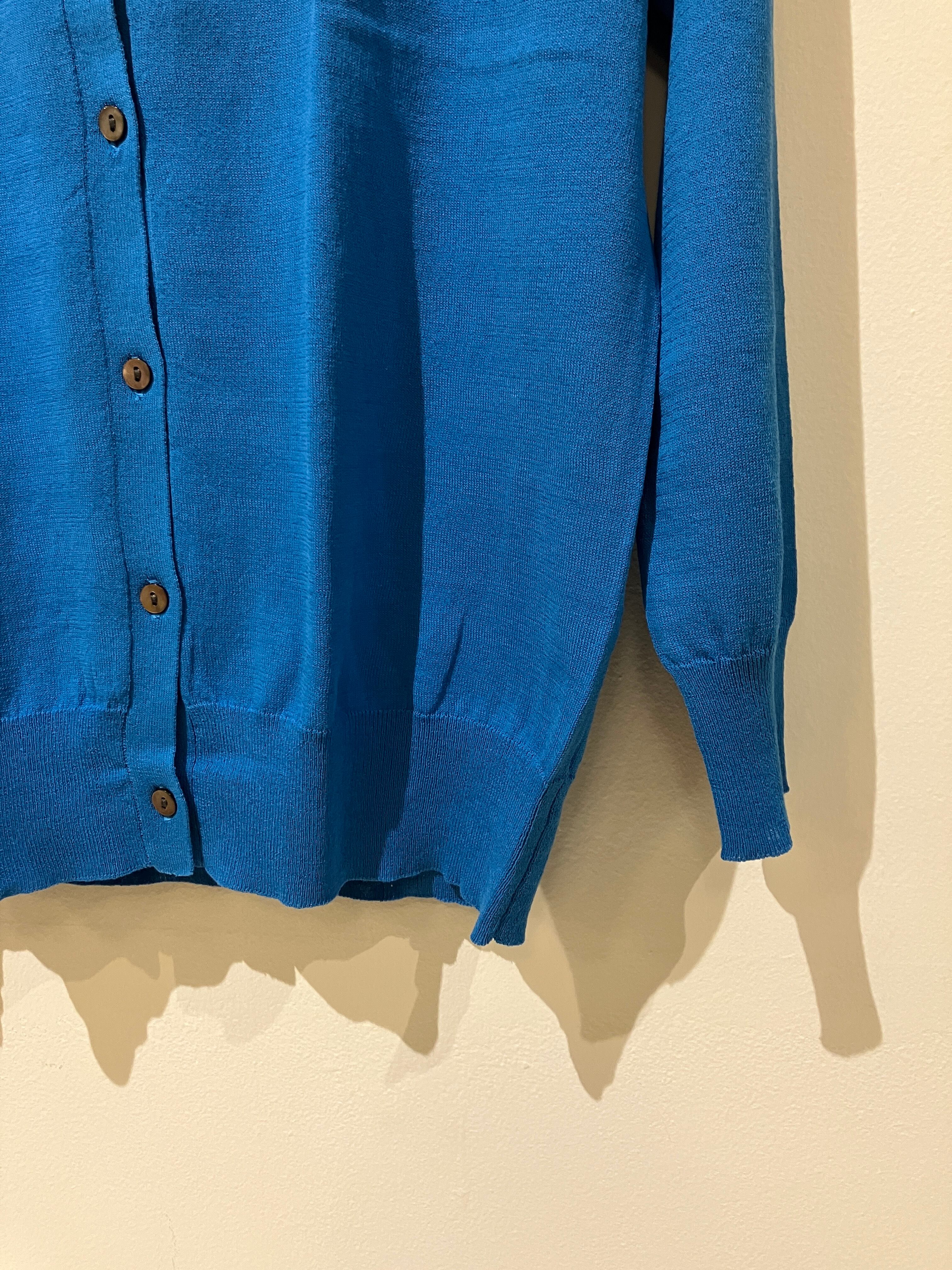 鮮やかなブルーのカーディガン