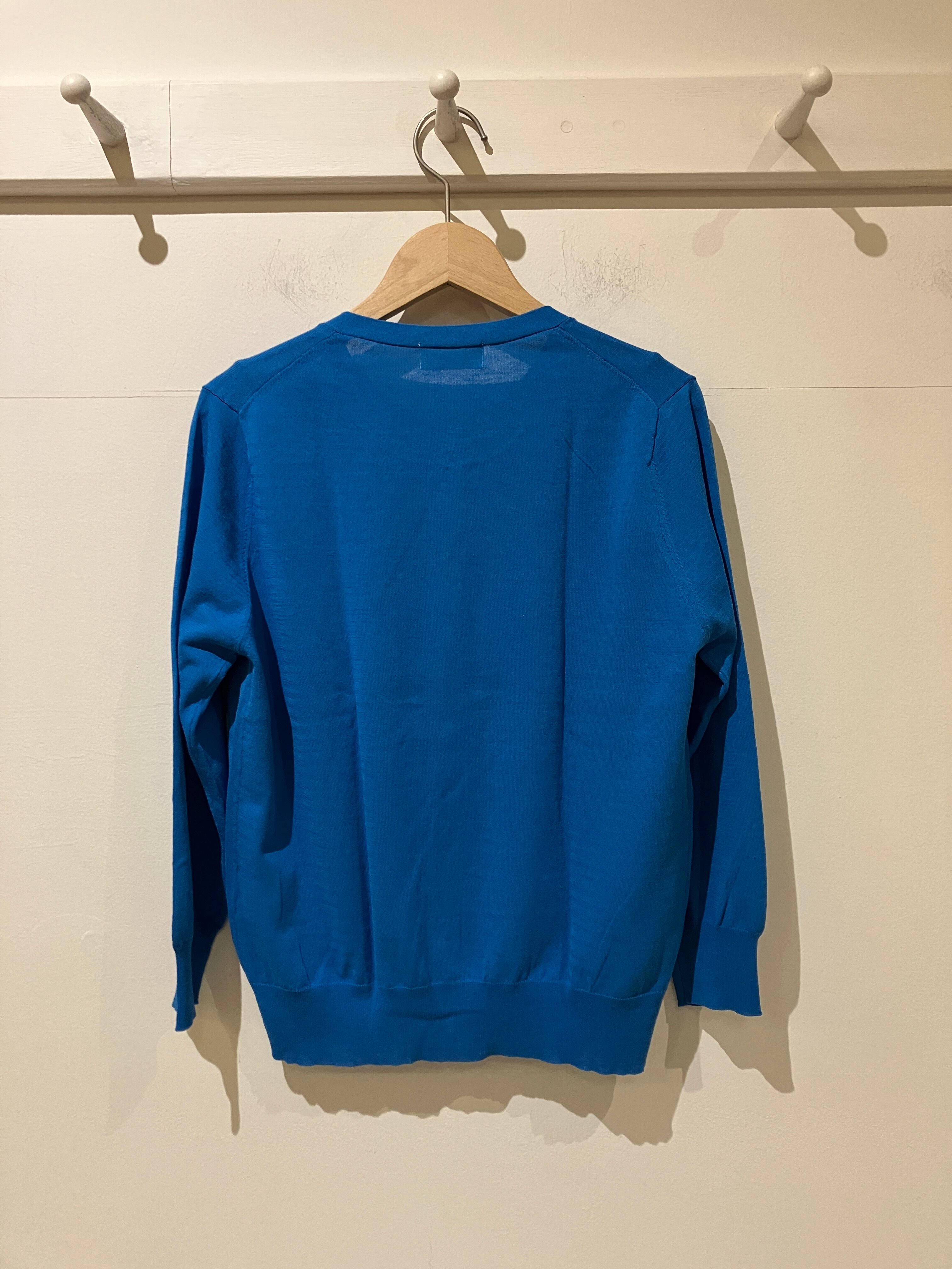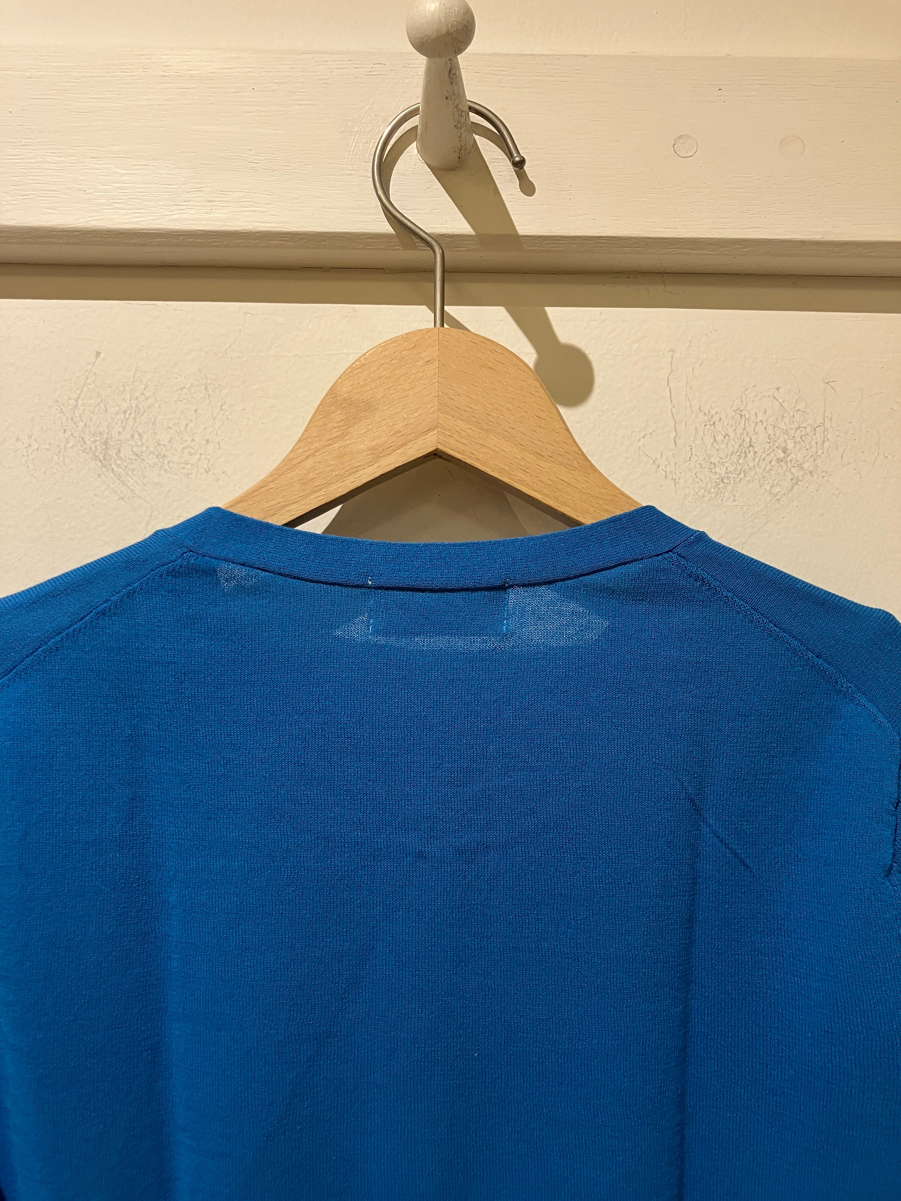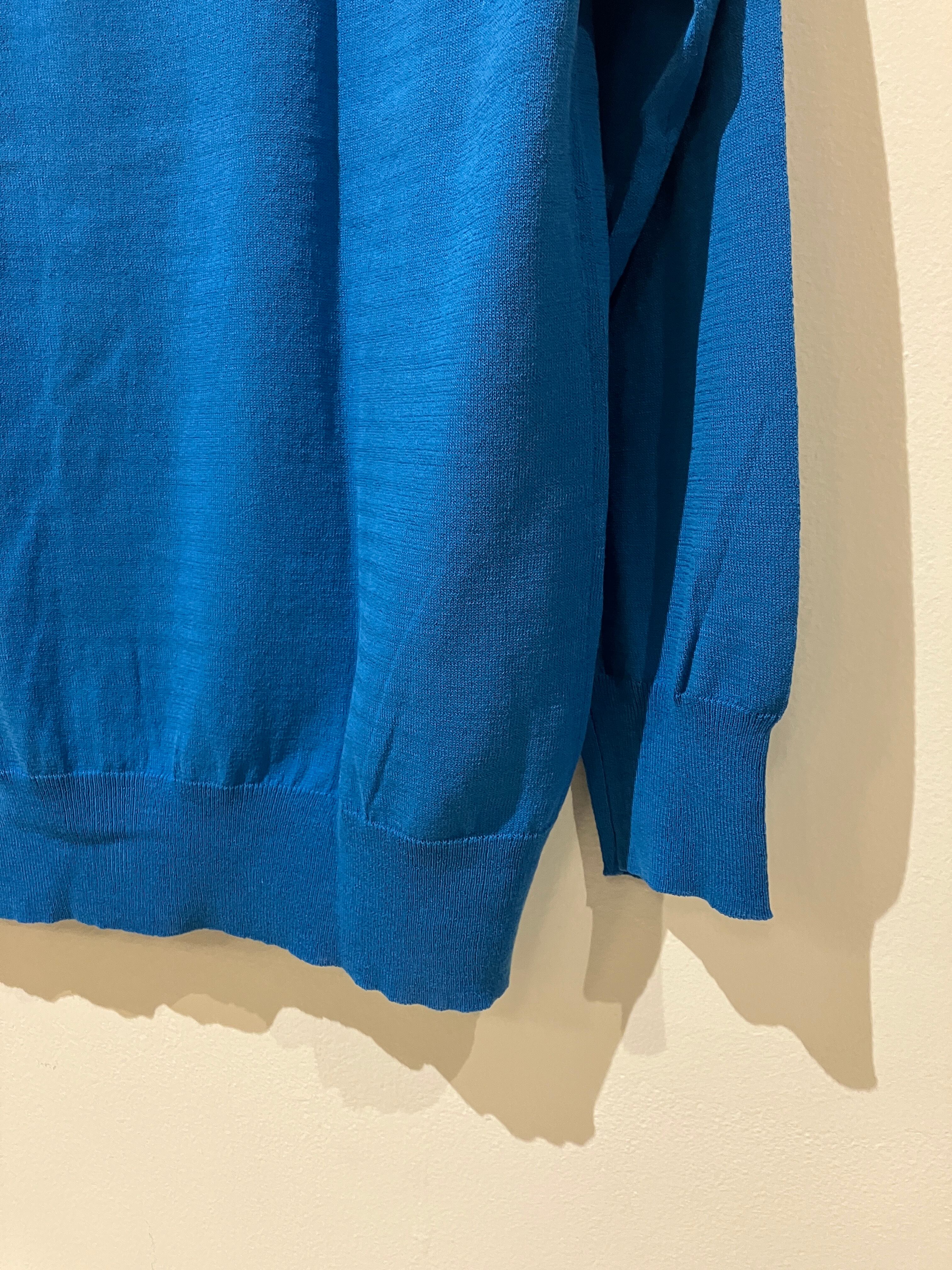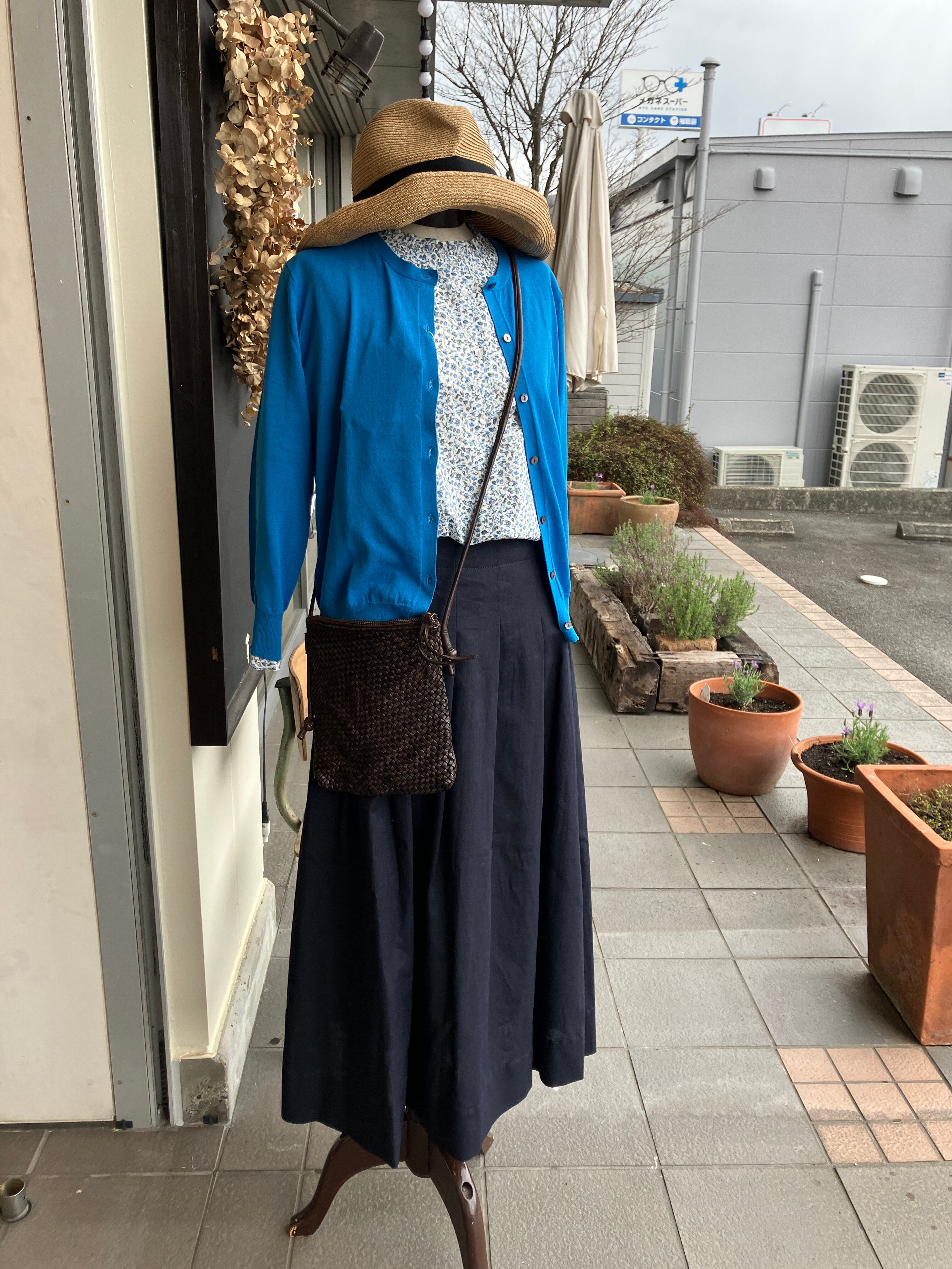 鮮やかなブルーのカーディガン