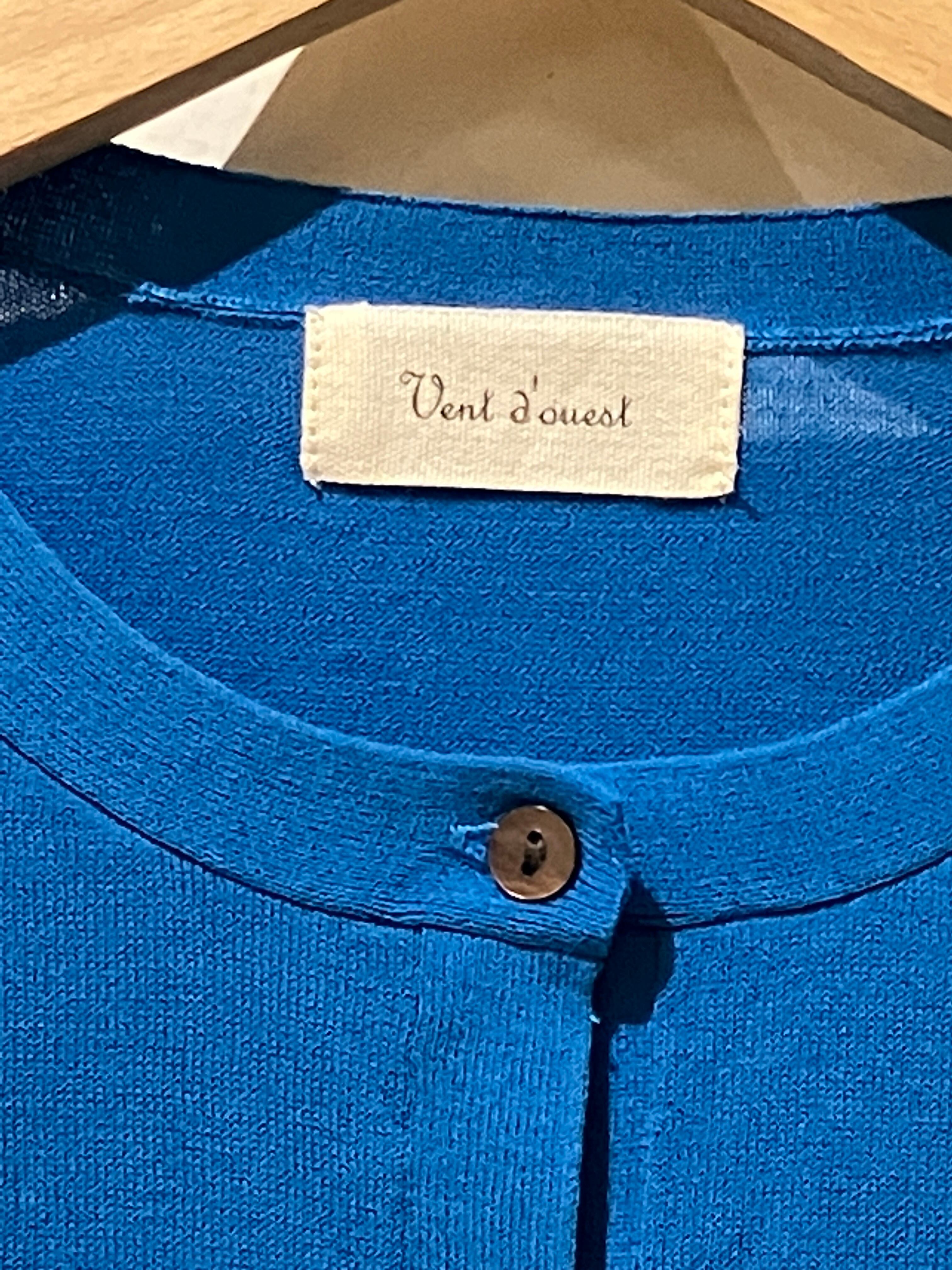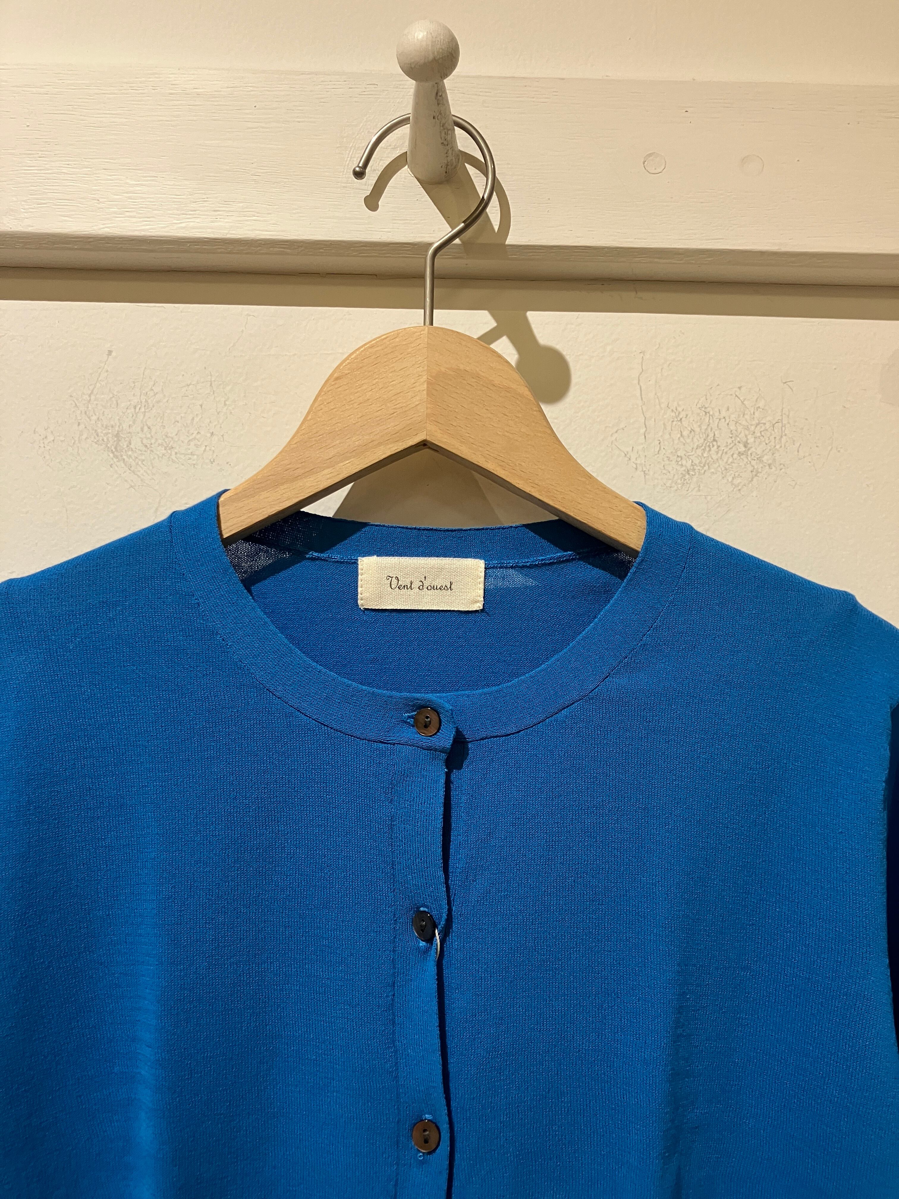 Vent d' ouest【ヴァン・ド・ウエスト】ハイゲージ・イタリア糸・クルーネック・コットンカーディガン (ブルー)