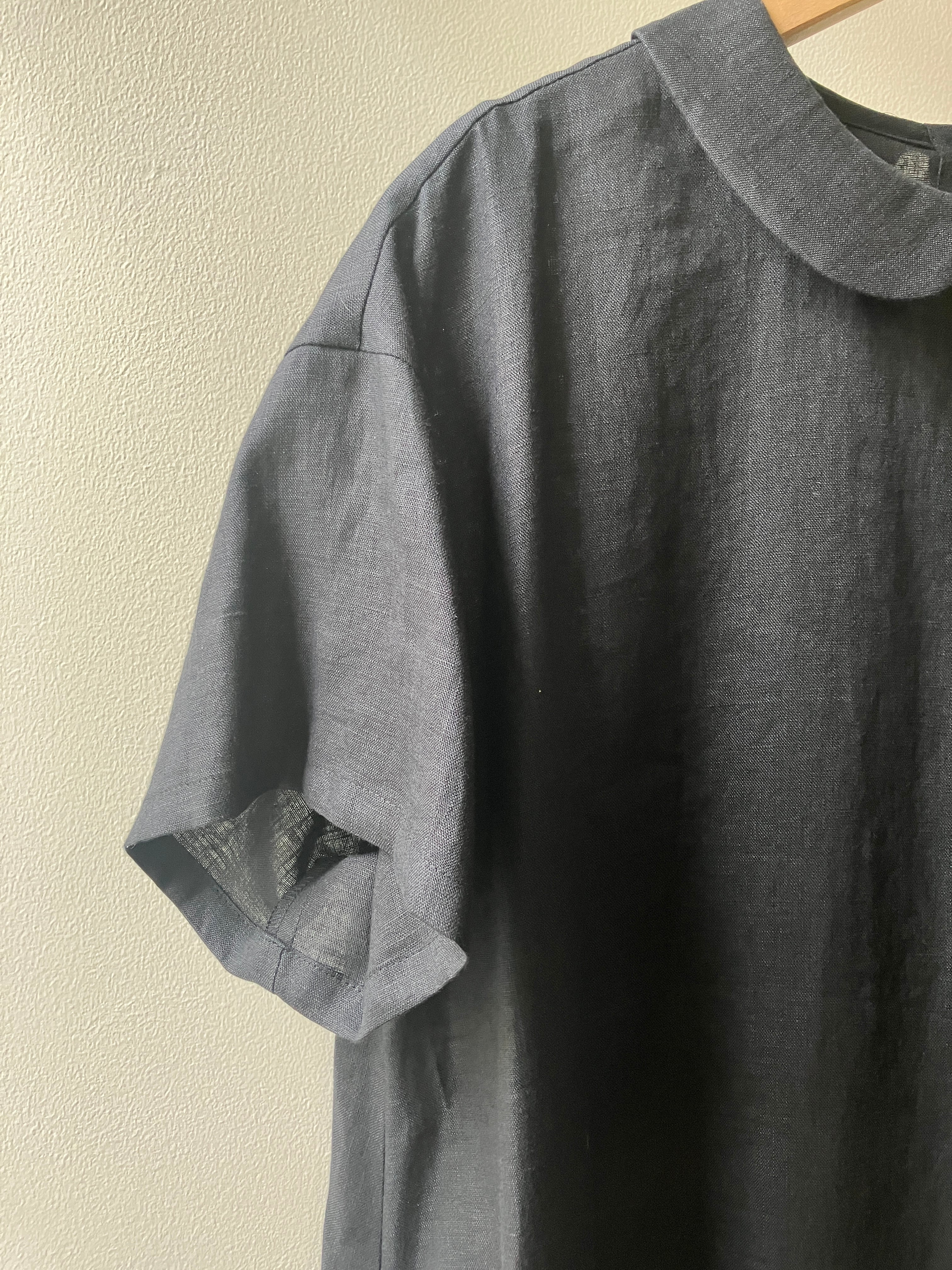 Vent d' ouest【ヴァン・ド・ウエスト】フレンチリネン丸衿ワンピース(ブラック)