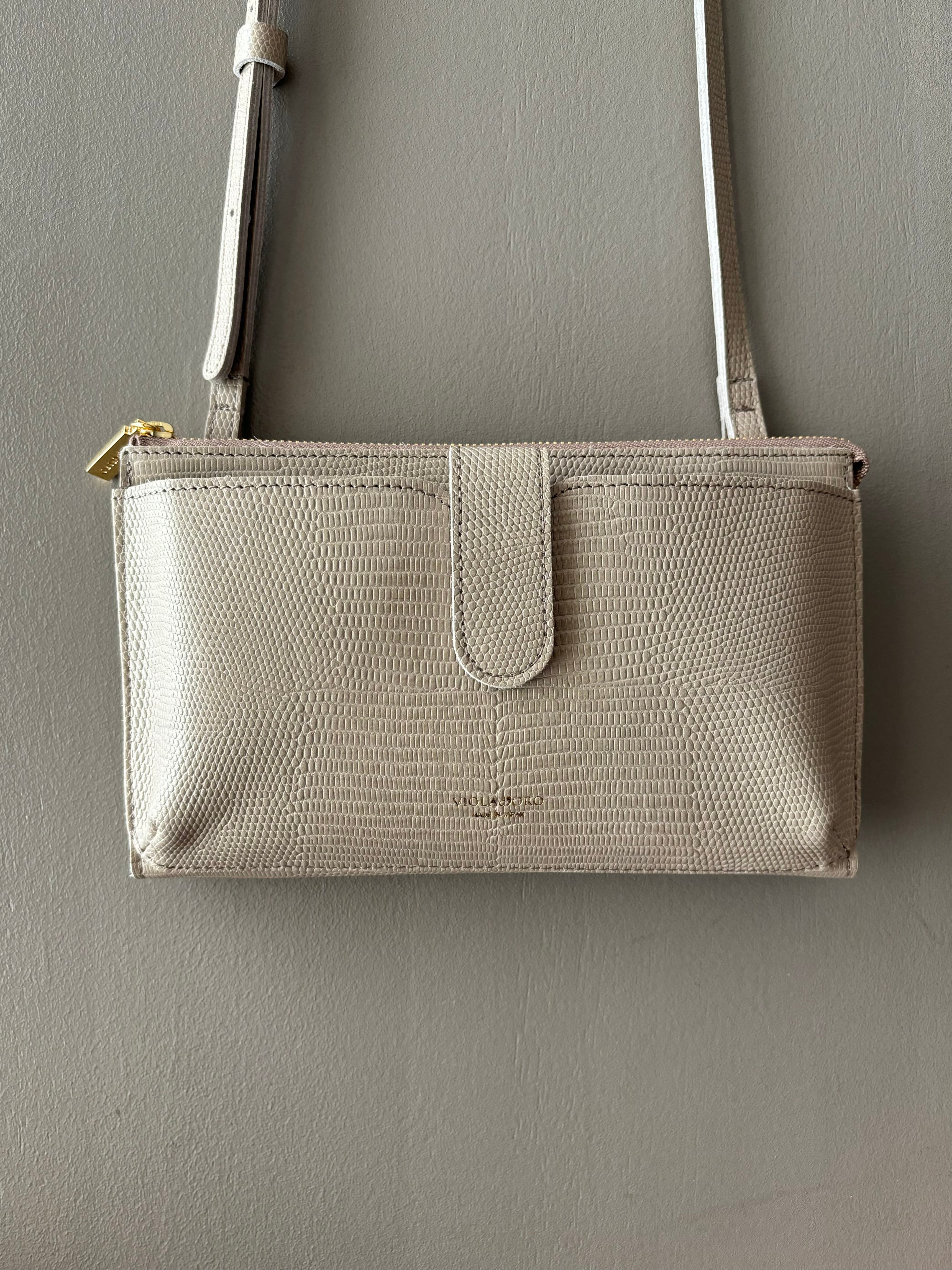 VIOLA d'ORO 【ヴィオラドーロ】リザード型押・スマホウォレット (トープ)