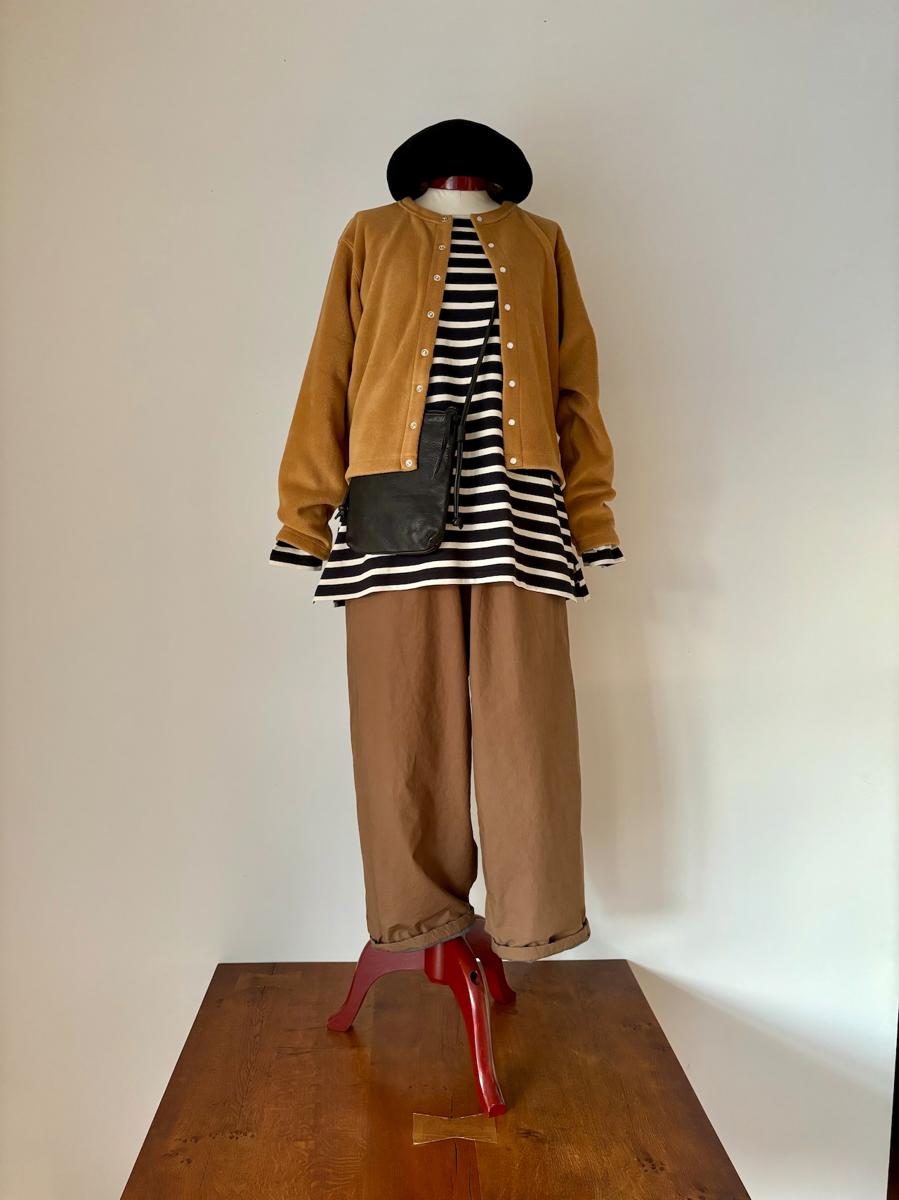 ORCIVAL [France]クロップド・フリーススナップカーディガン (キャメル)