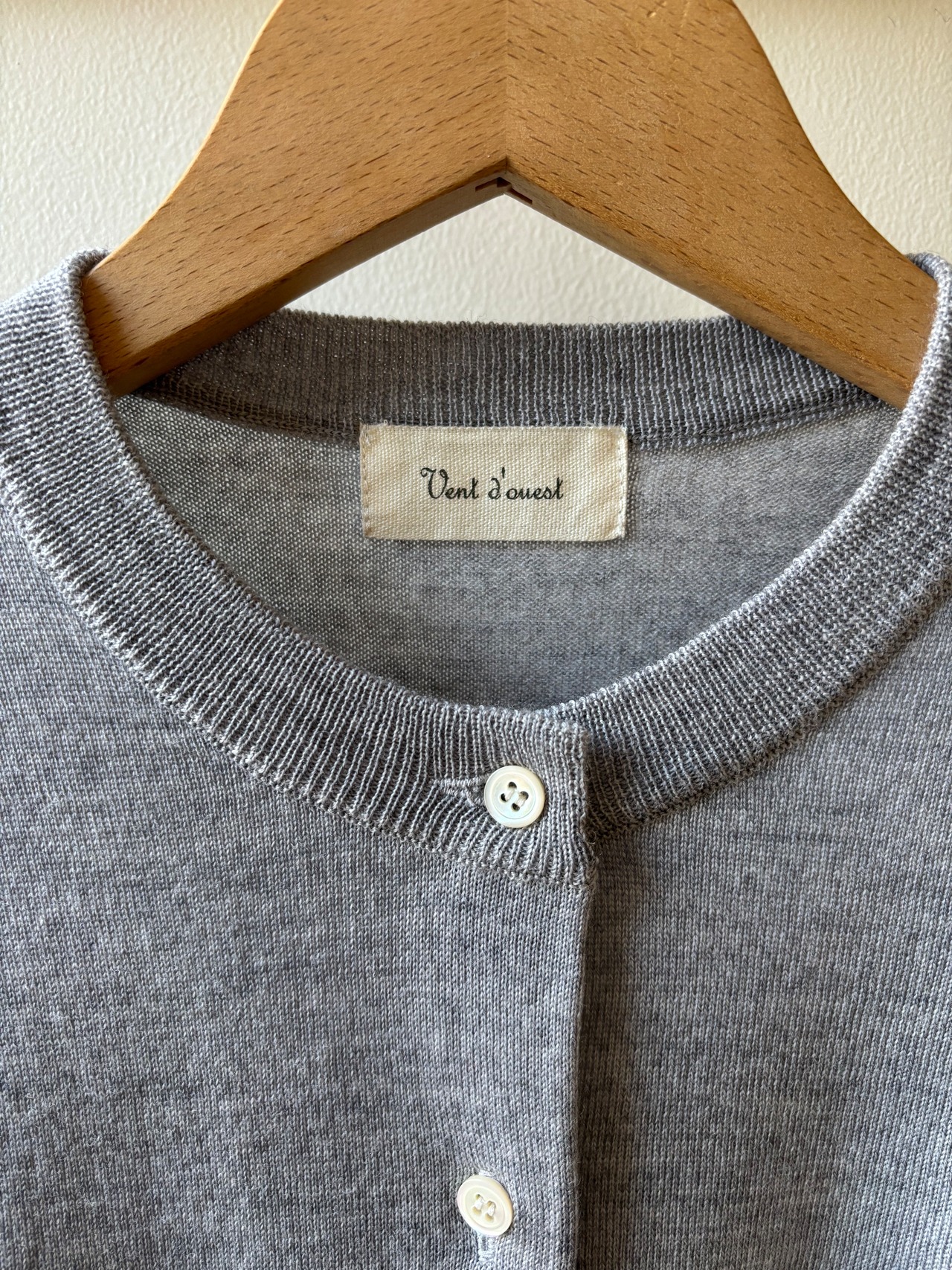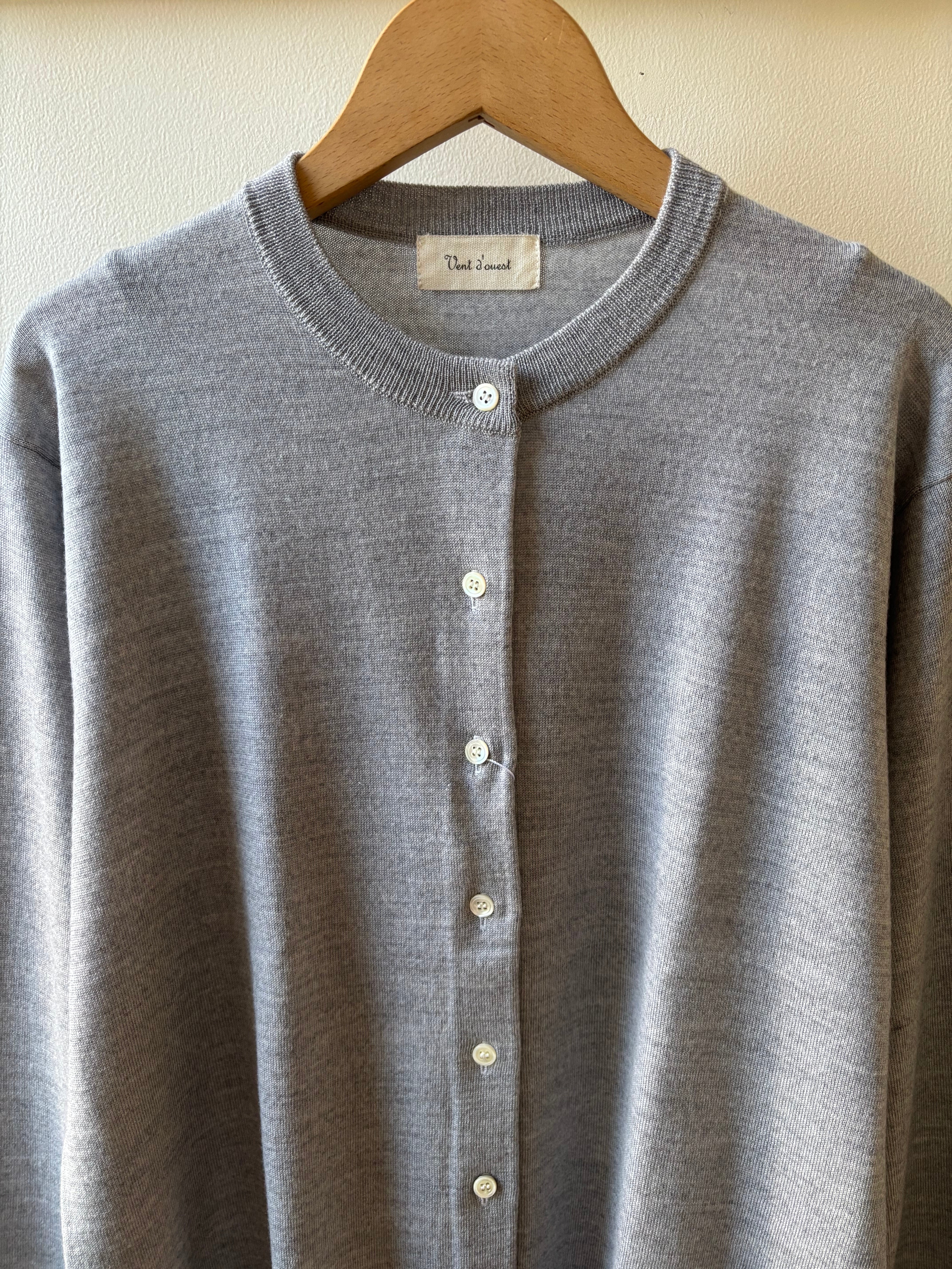 Vent d' ouest【ヴァン・ド・ウエスト】メリノ糸・クルーネックカーディガン(グレー)