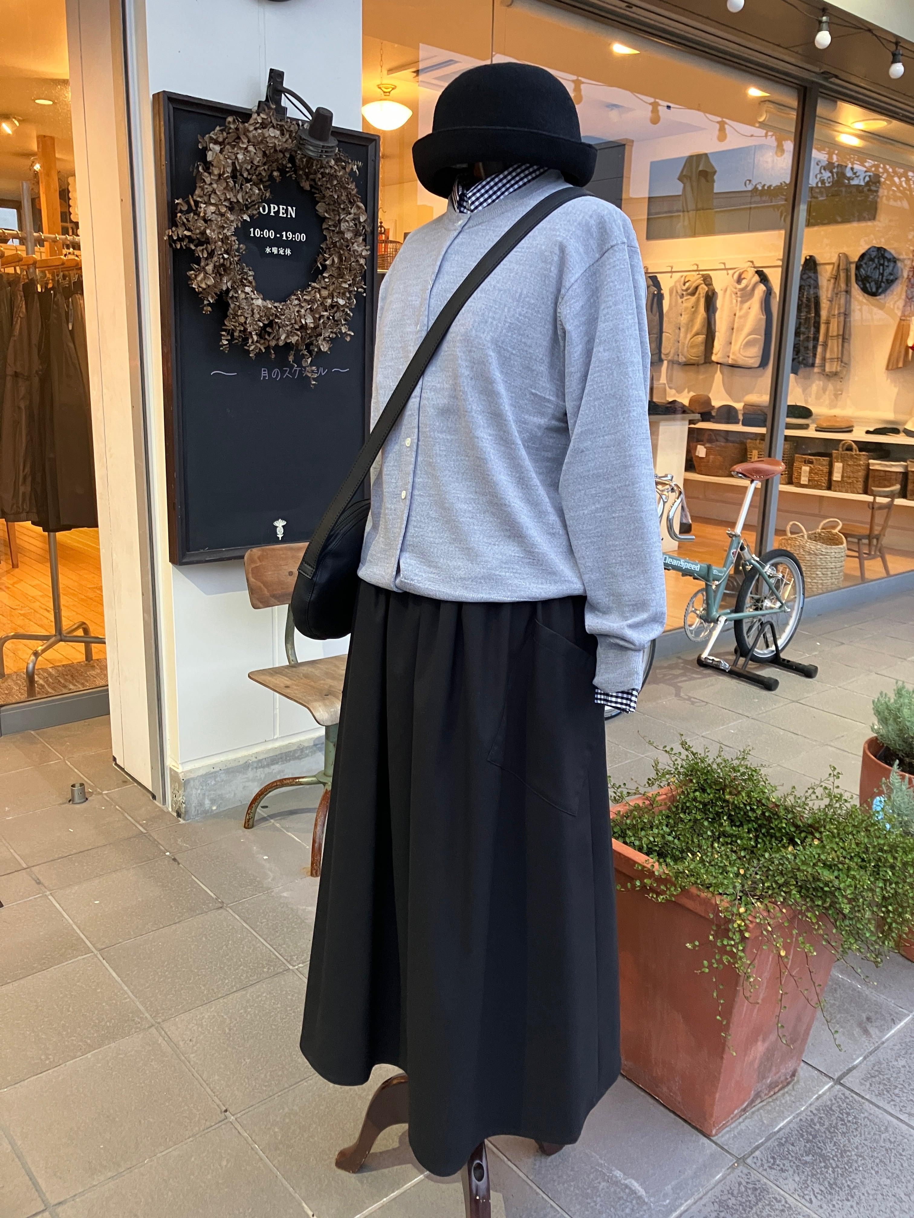 Vent d' ouest【ヴァン・ド・ウエスト】ストレッチツイル・ビッグポケットスカート(ブラック)