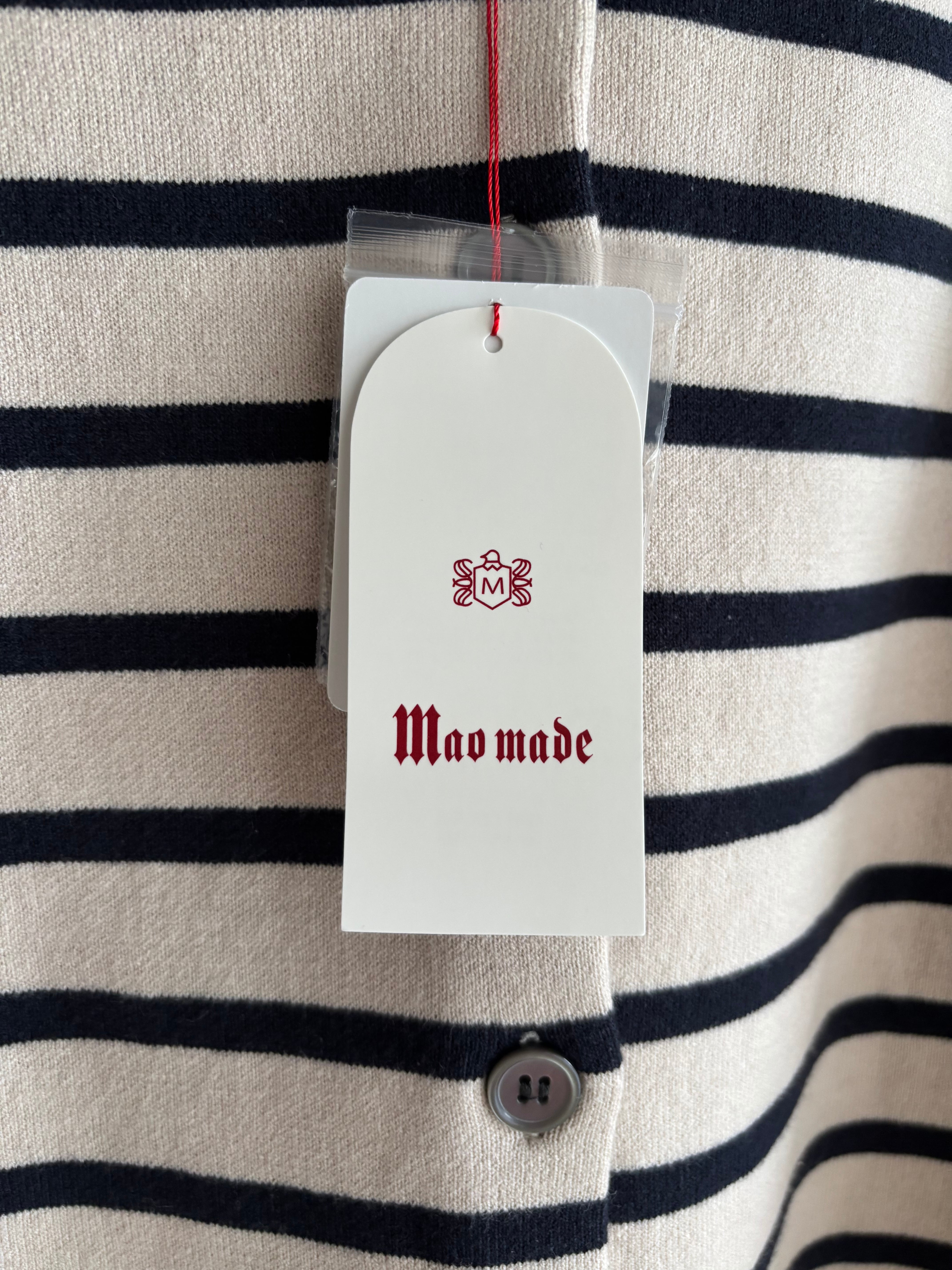 maomade【マオメイド】2way・ダブルフェース・クルーネック・カーディガン (アイボリー×ブラック)