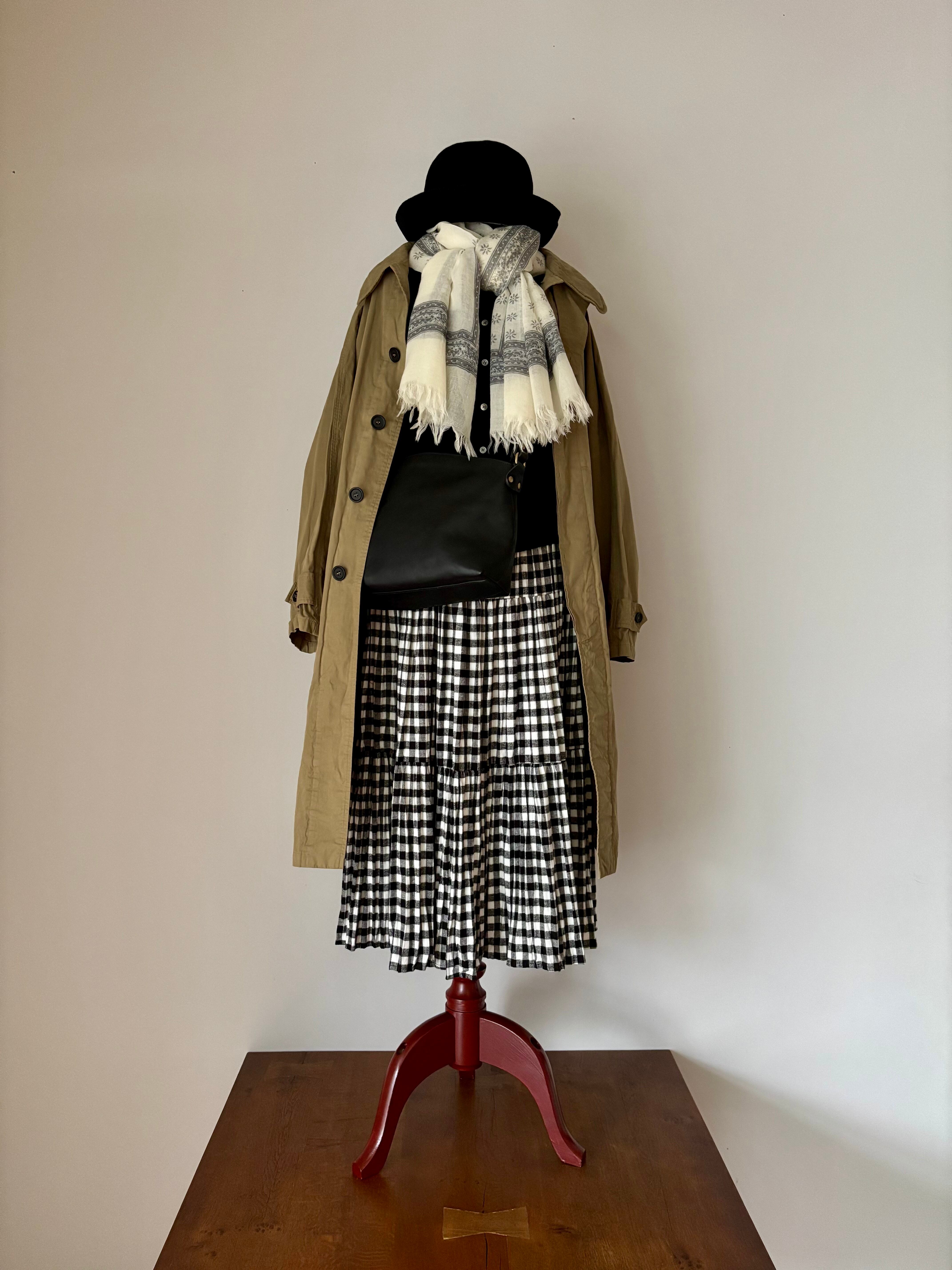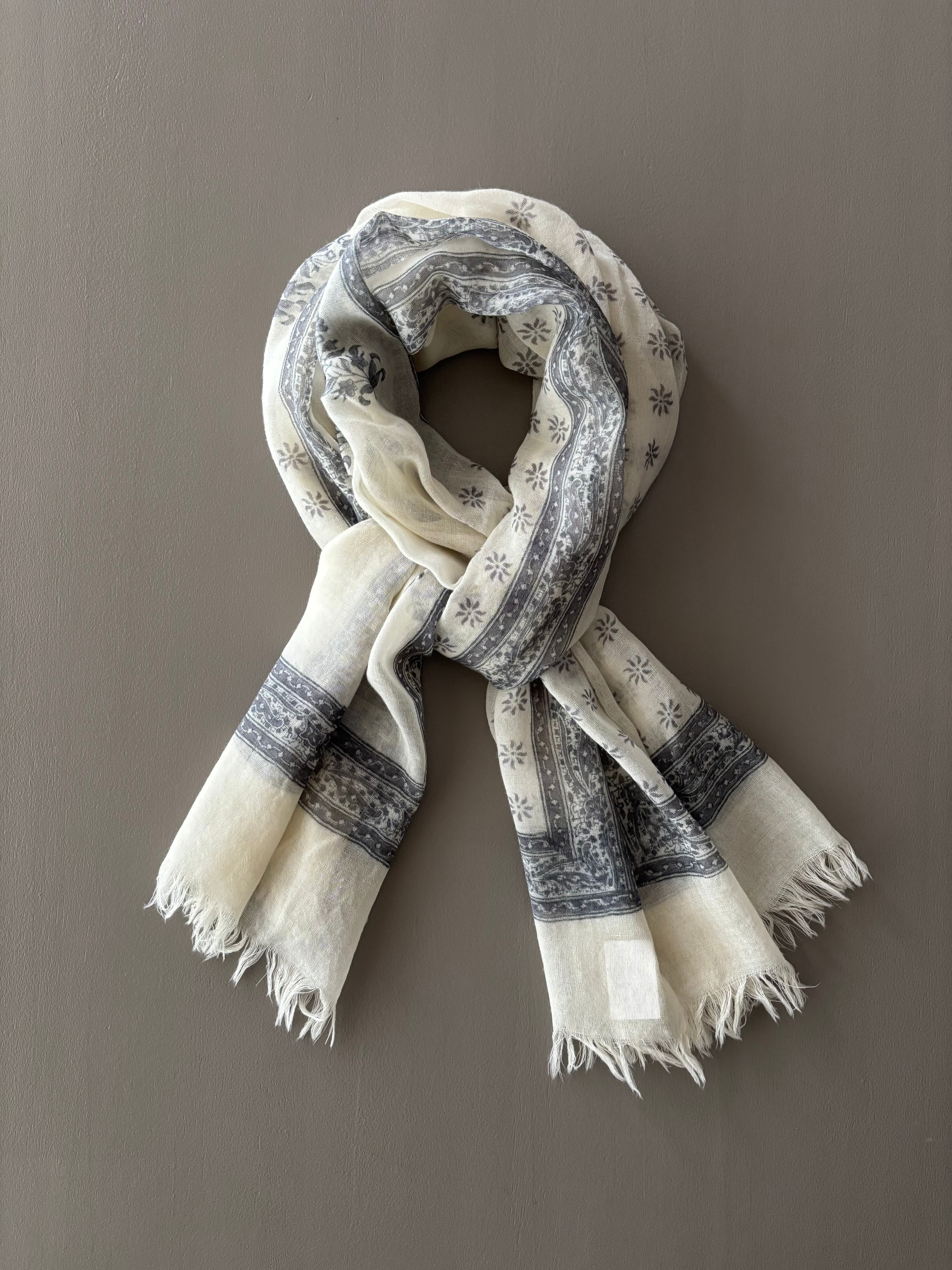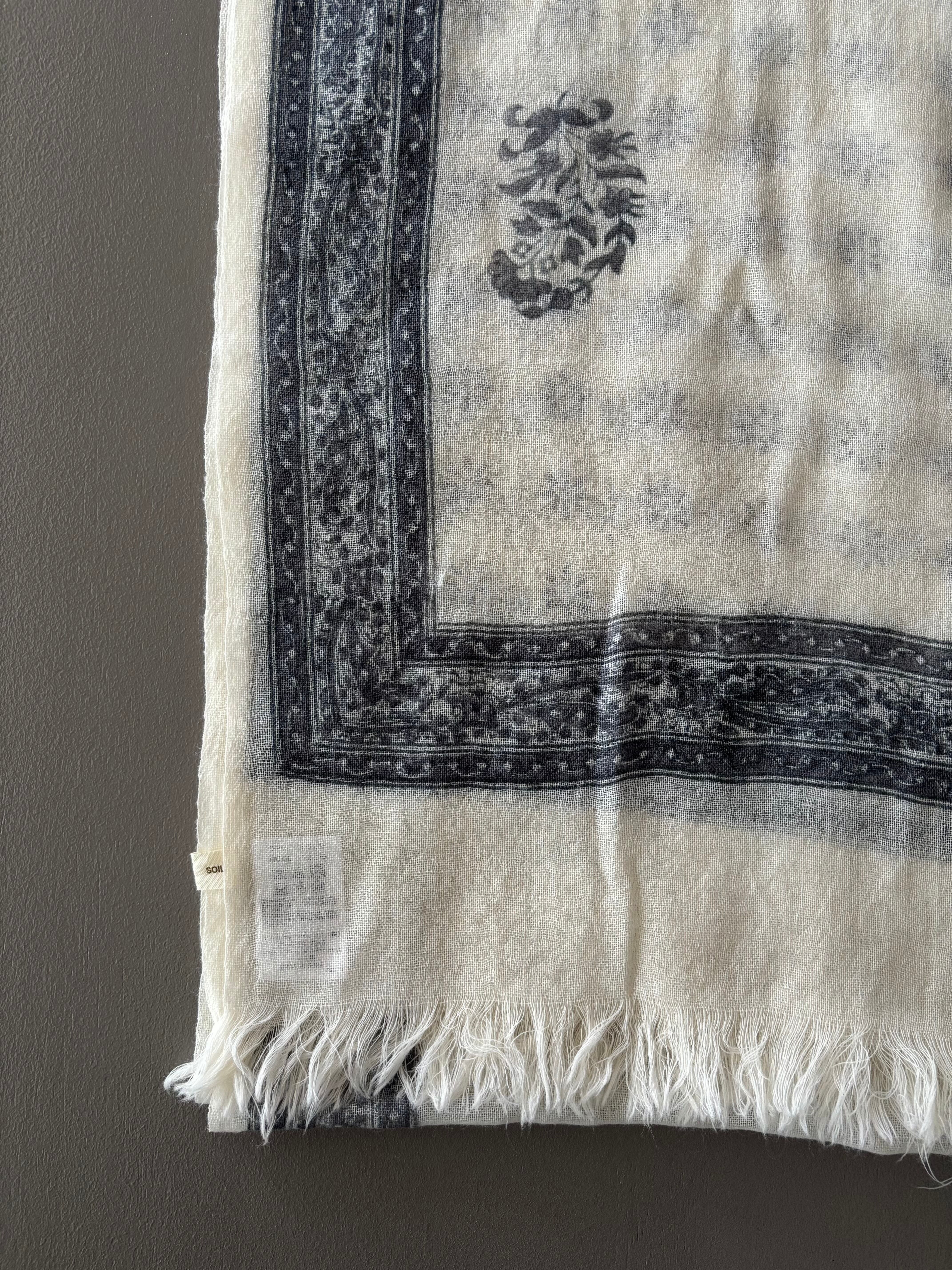 SOIL【ソイル】ウールガーゼ・フラワープリント・ストール(アイボリー×チャコール)