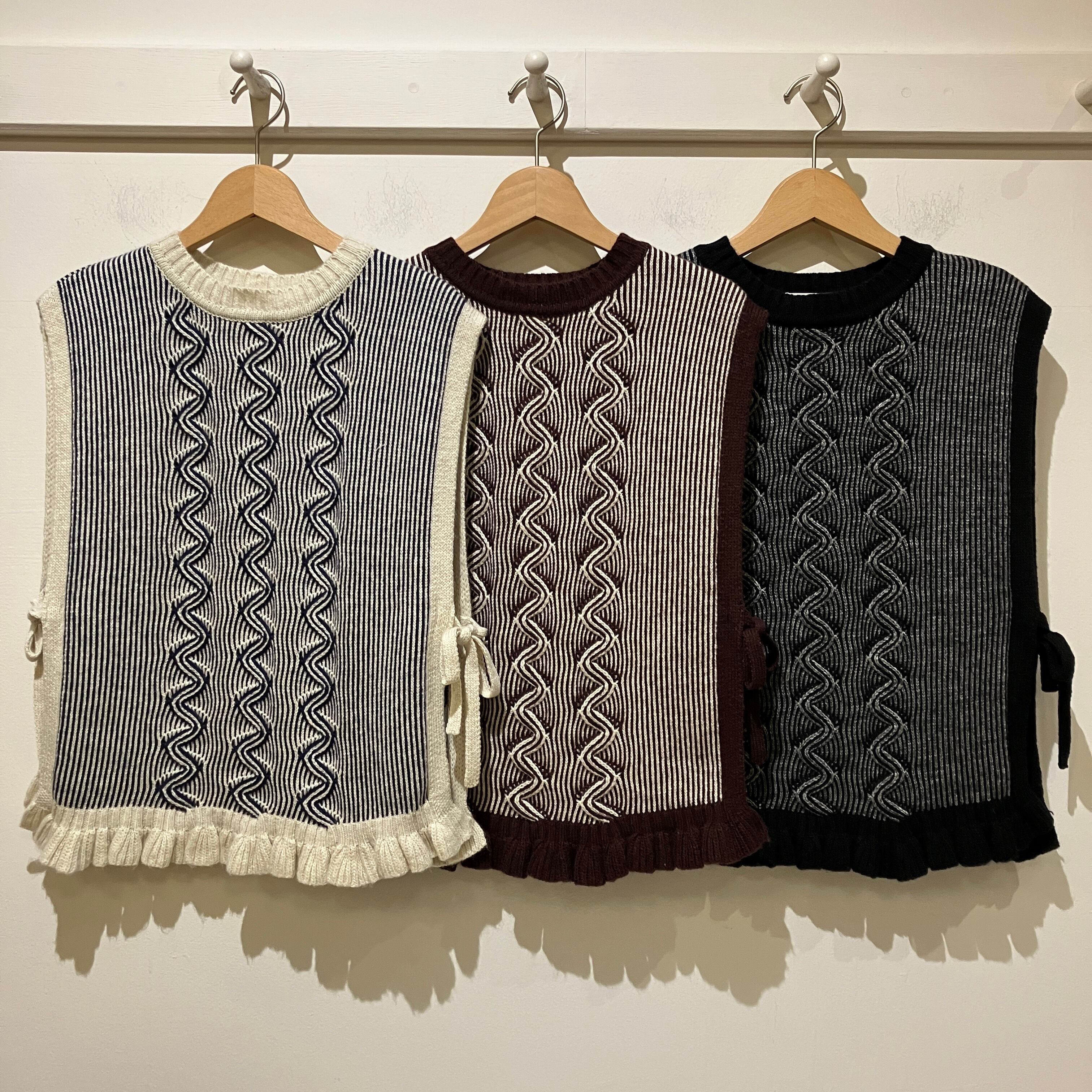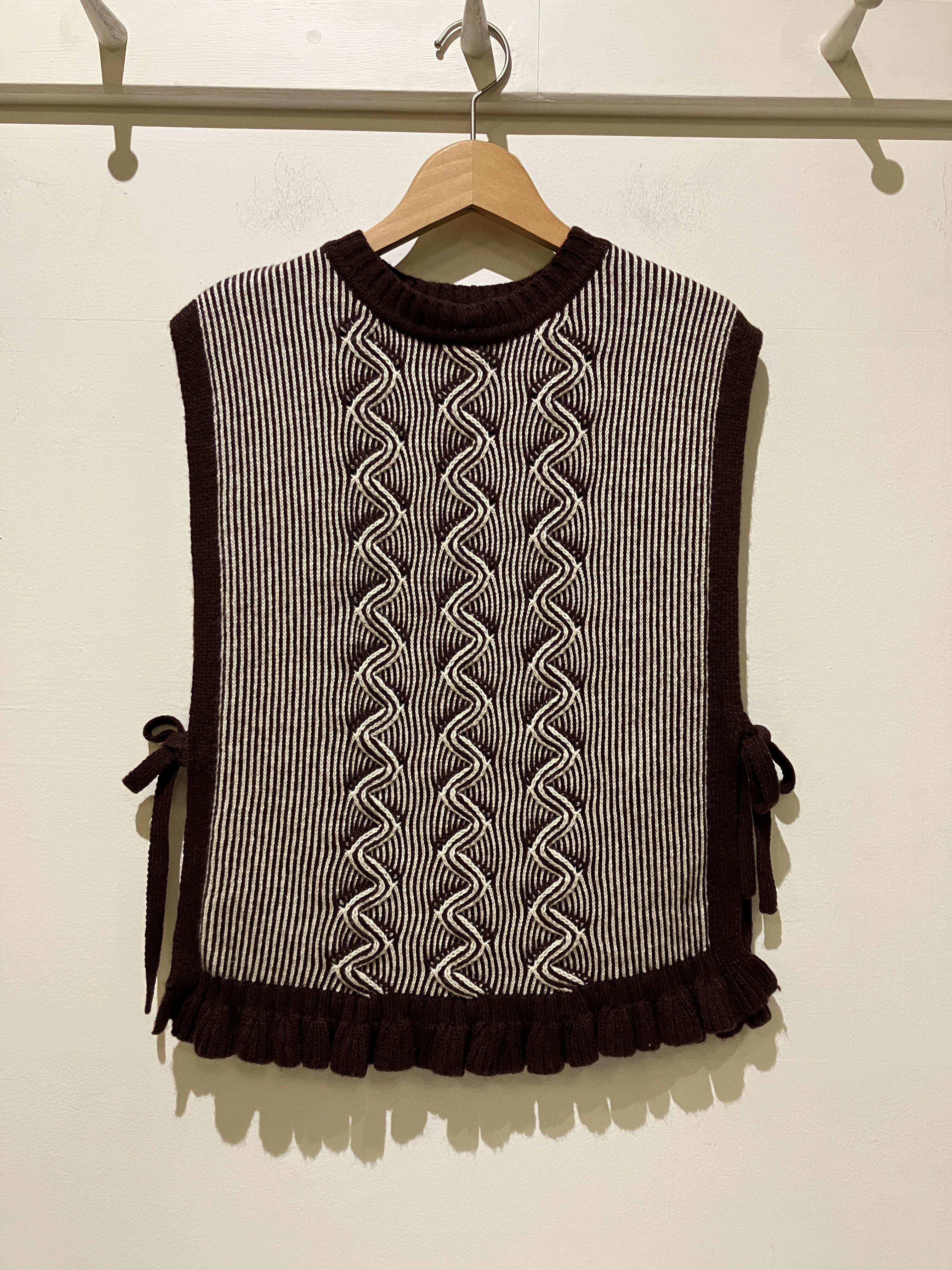 sosotto【ソソット】サイドリボン・ケーブルフリルベスト