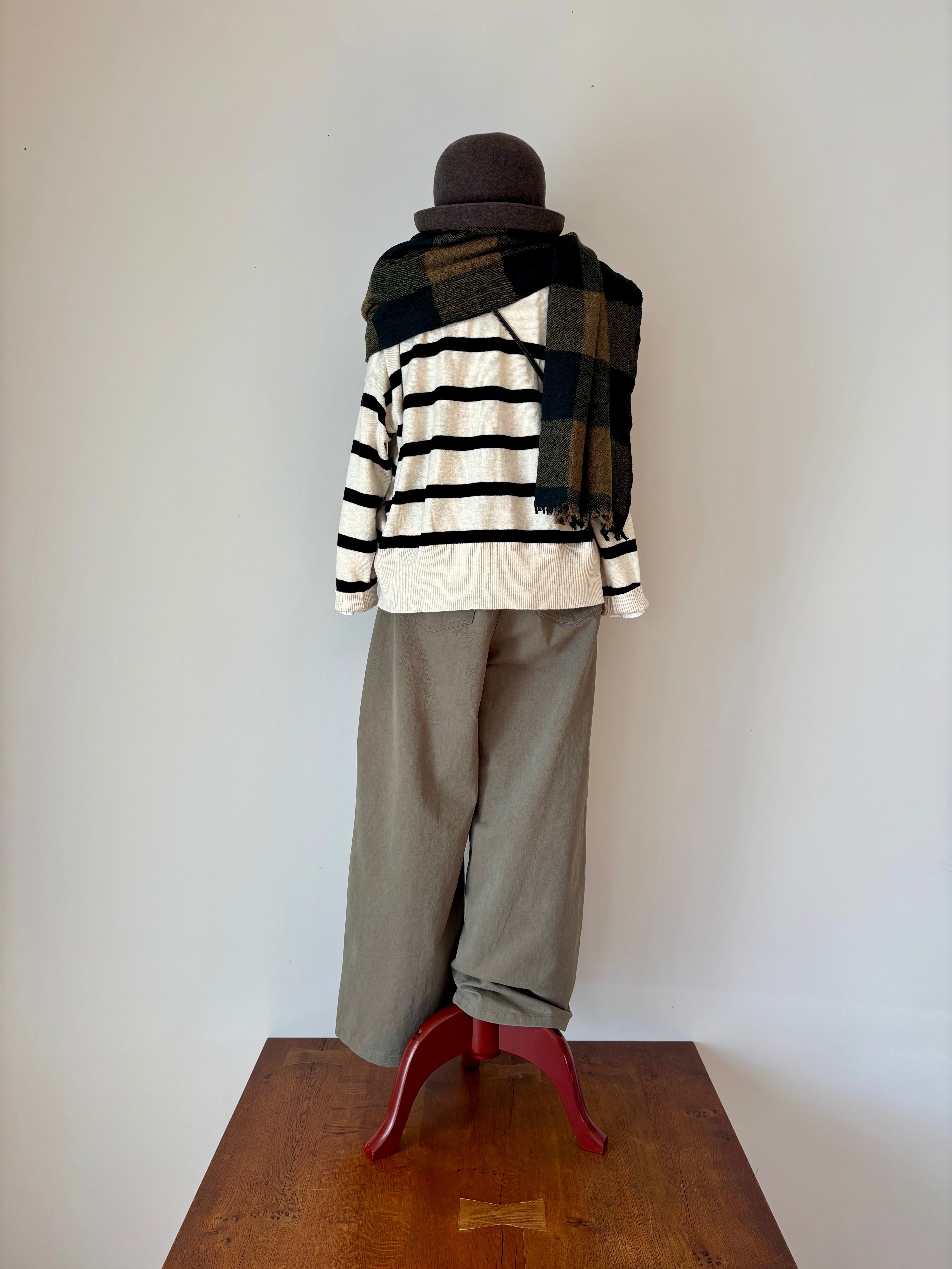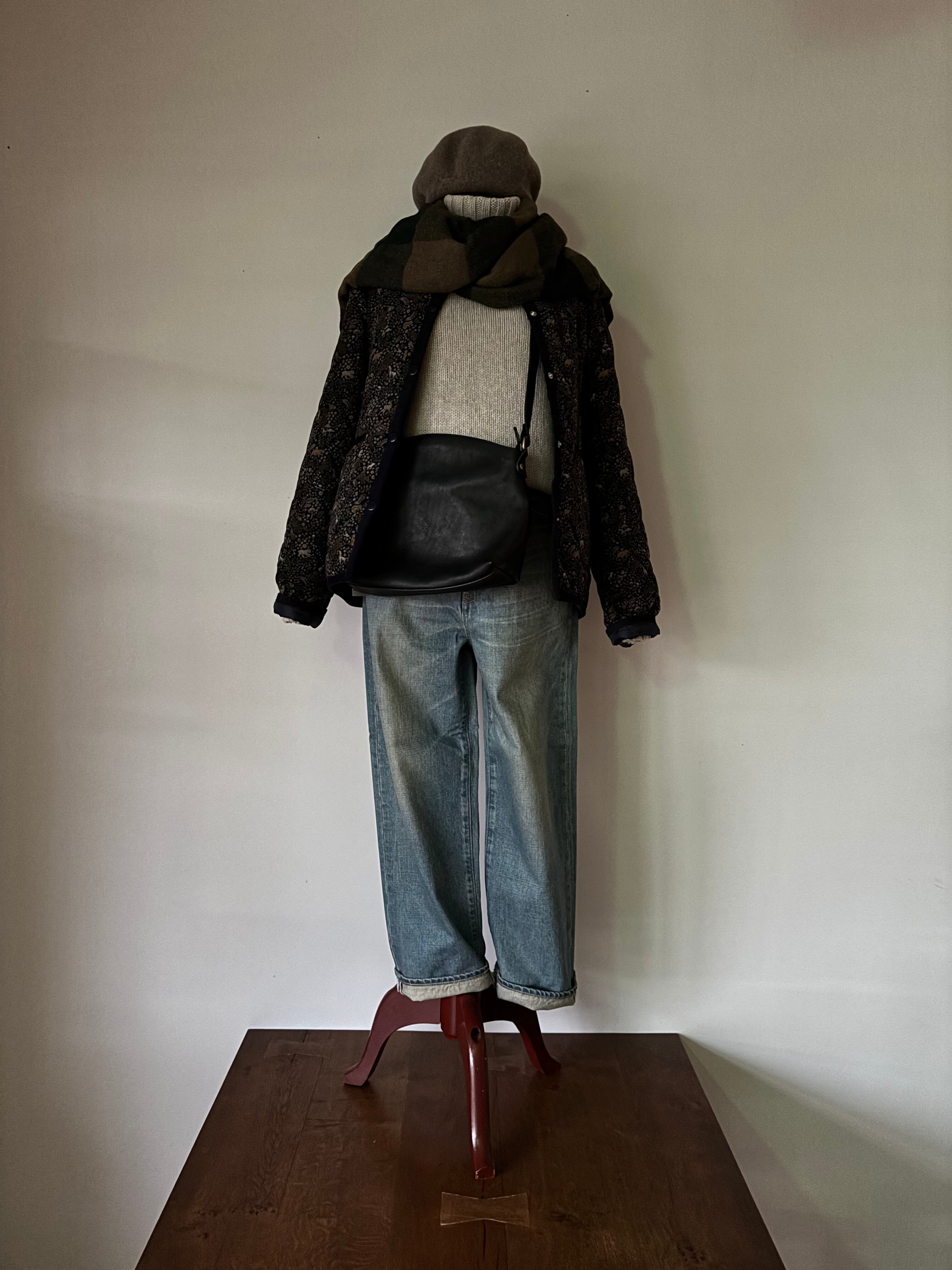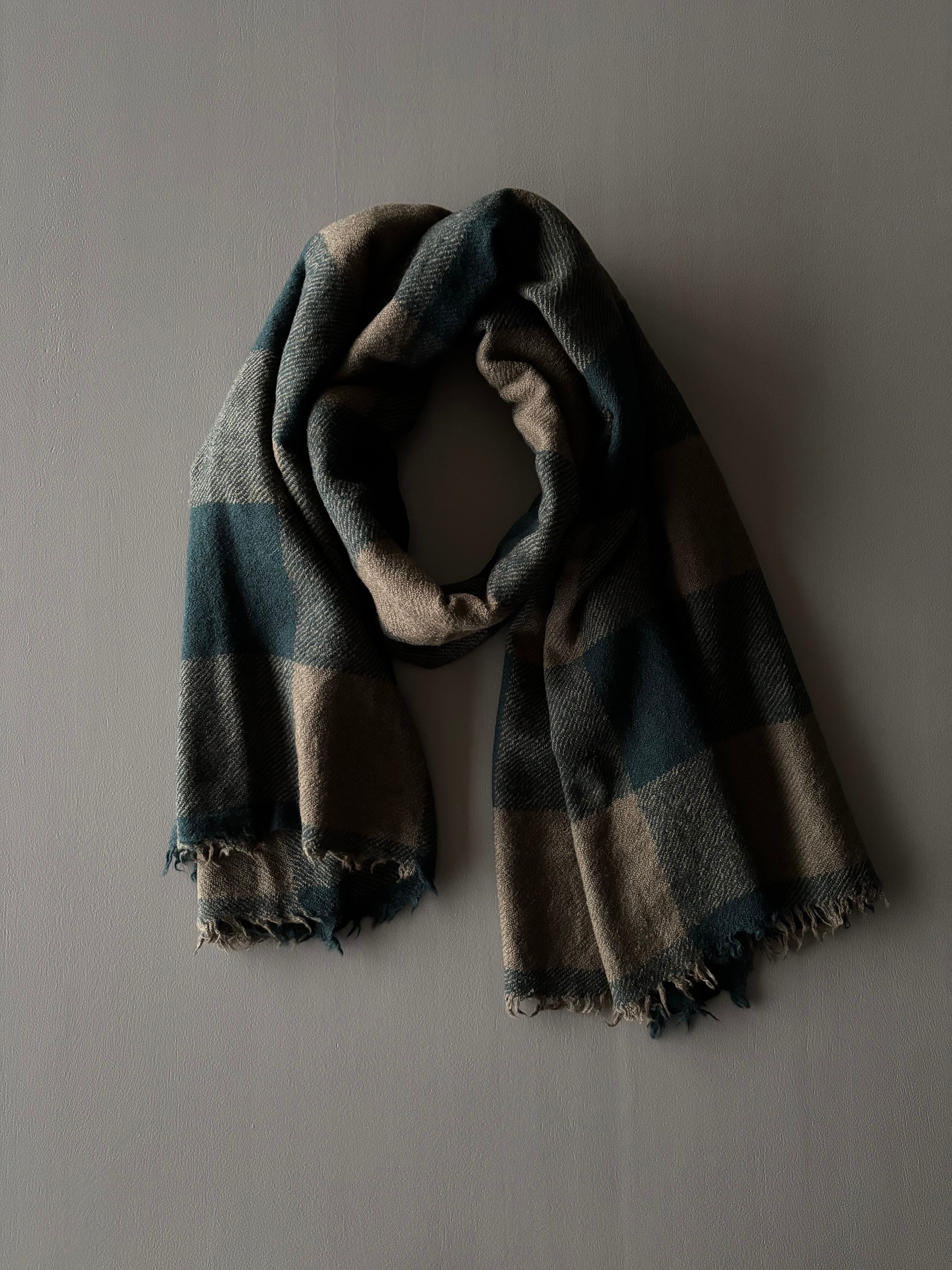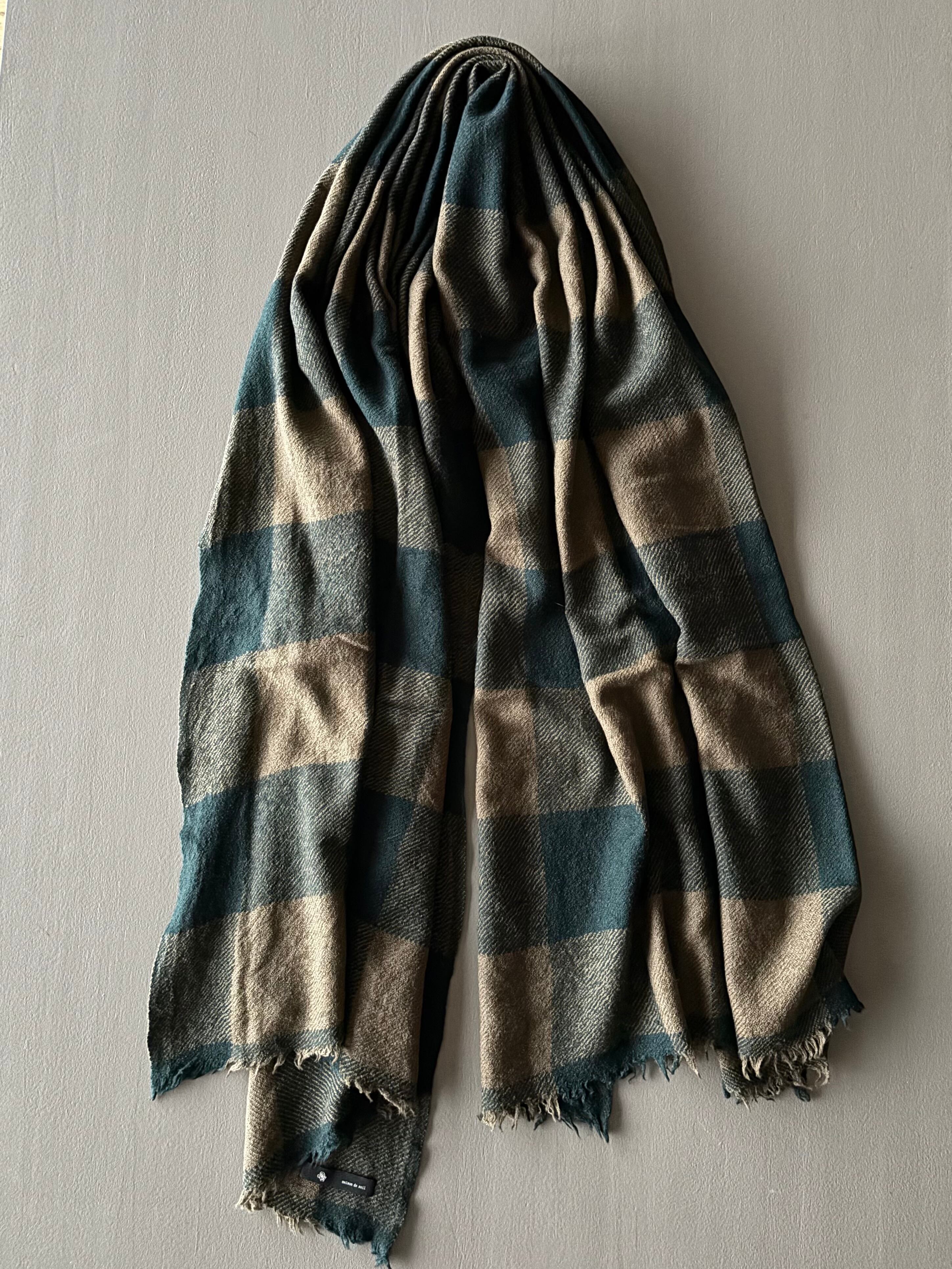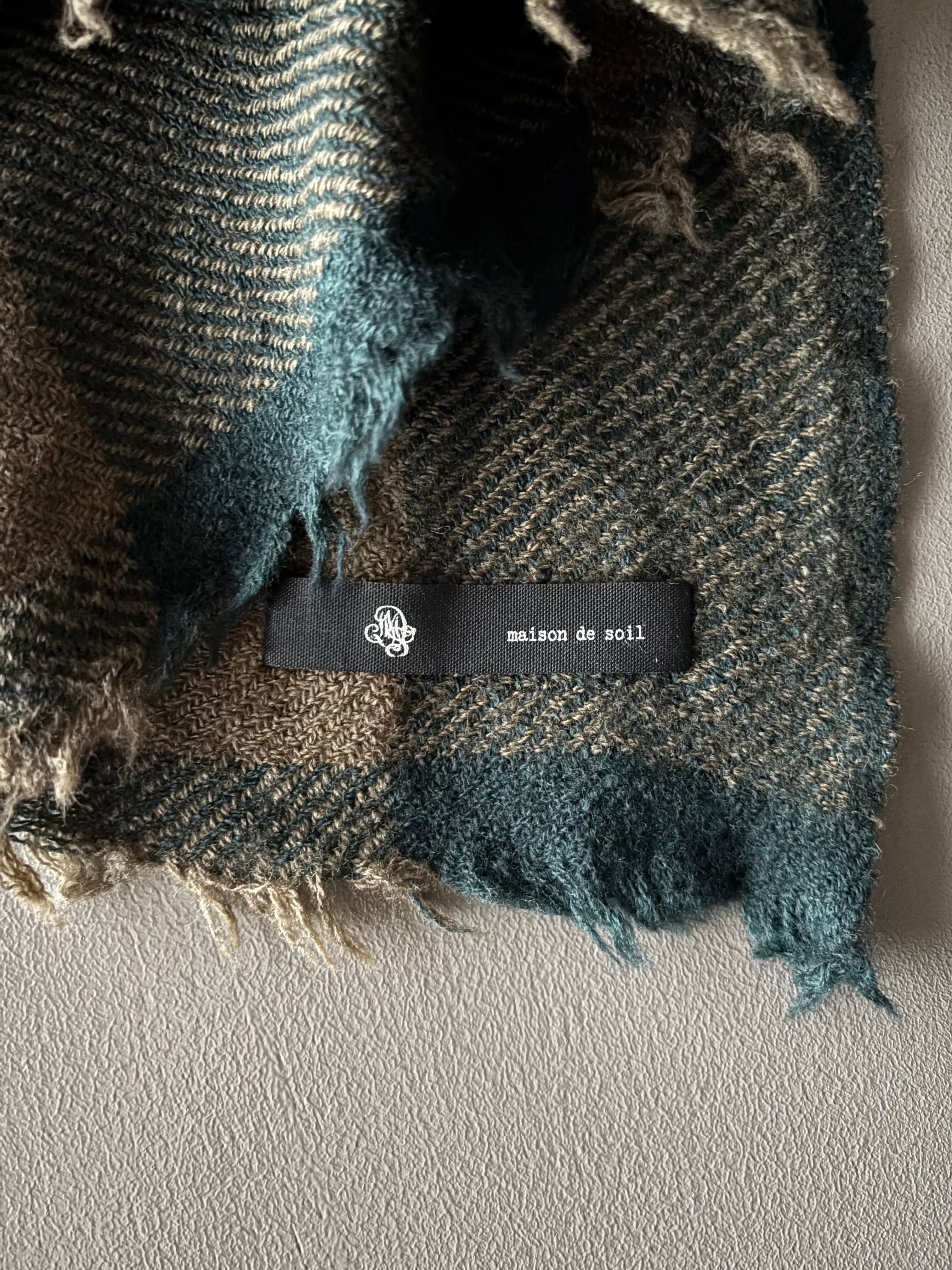 maison de soil【メゾンドソイル】ウールシルク・ソフトツイードストール(ベージュ×グリーン)