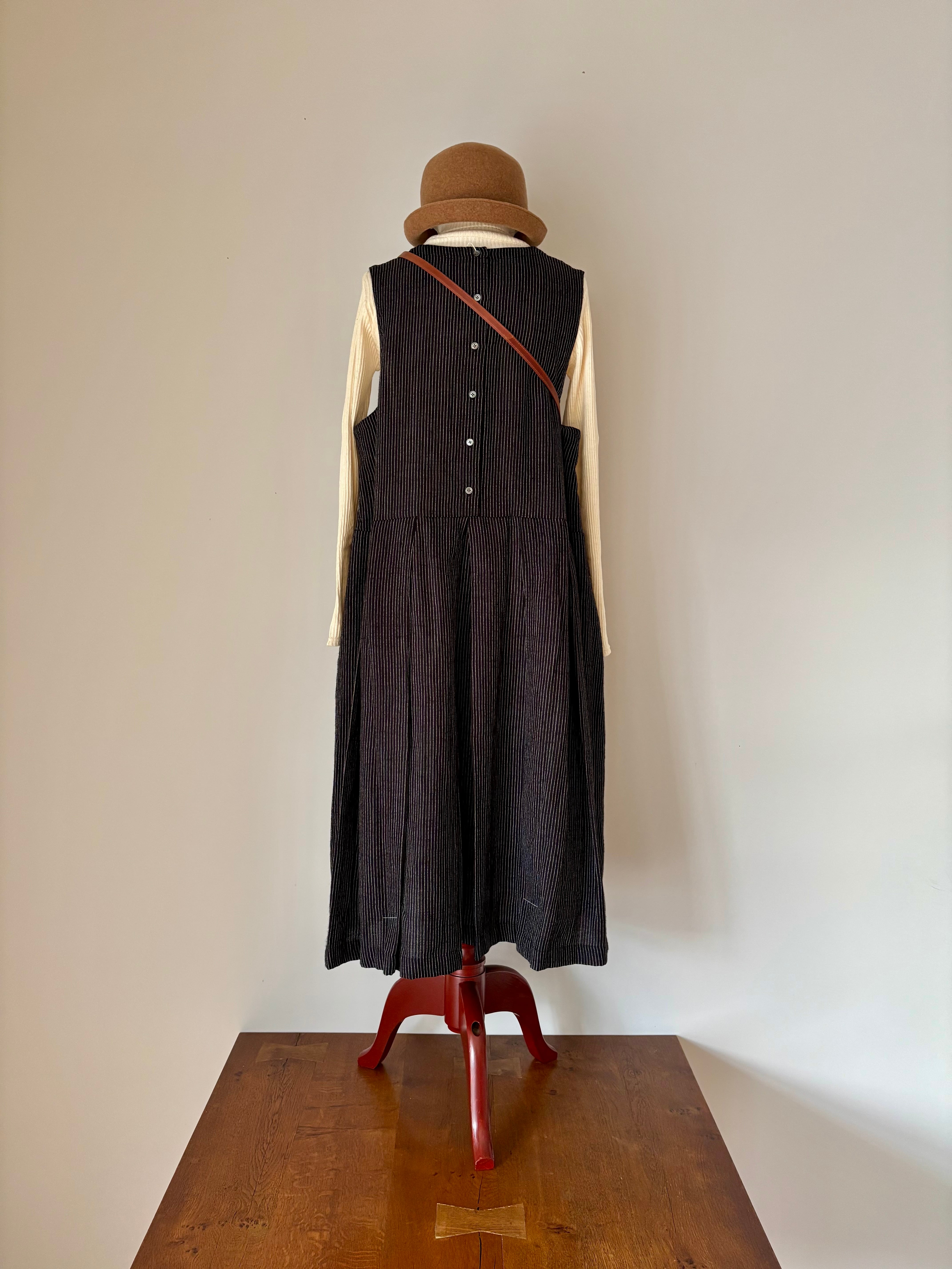 SOIL【ソイル】ウールリネン・ピンストライプ・ジャンパースカート(ブラック)