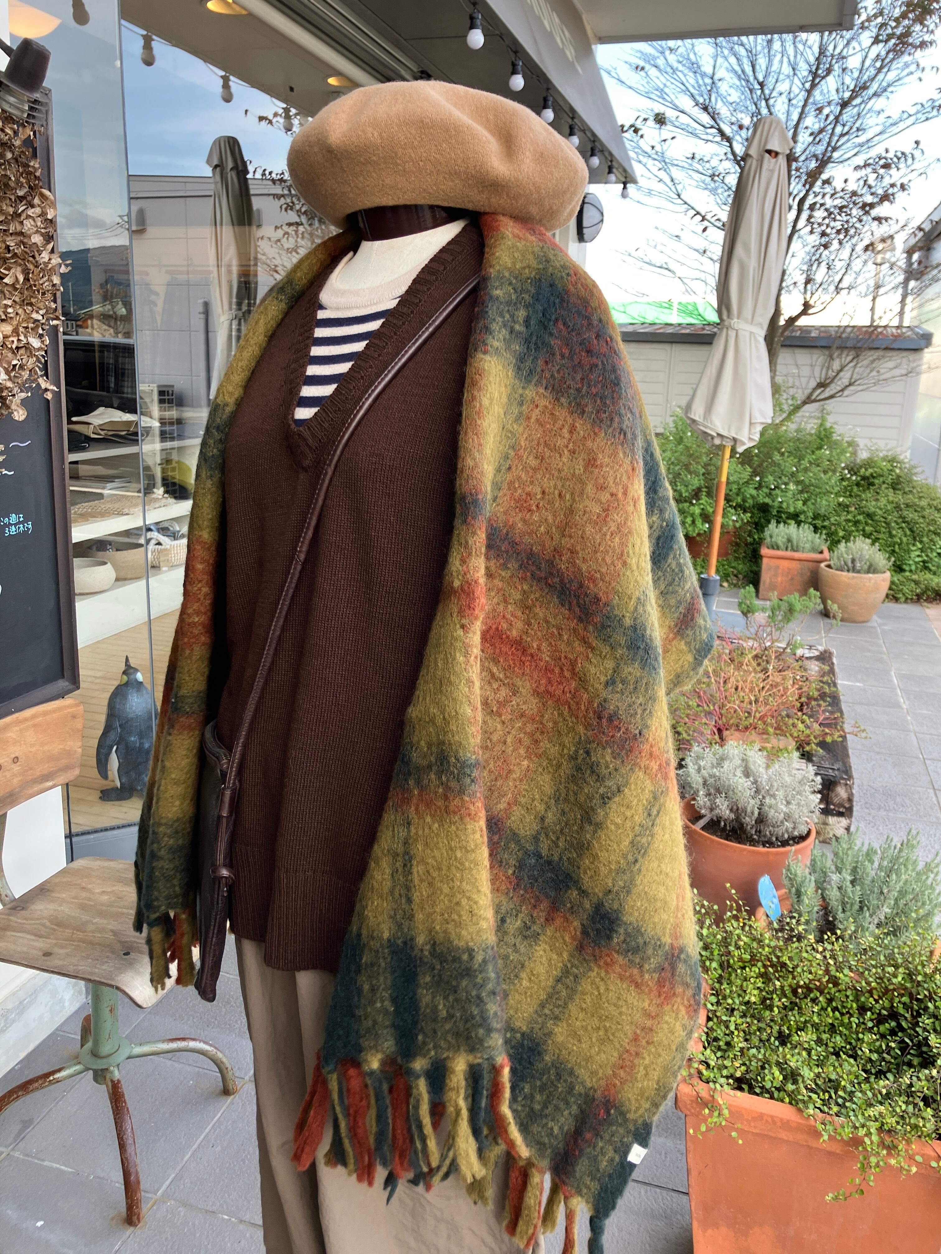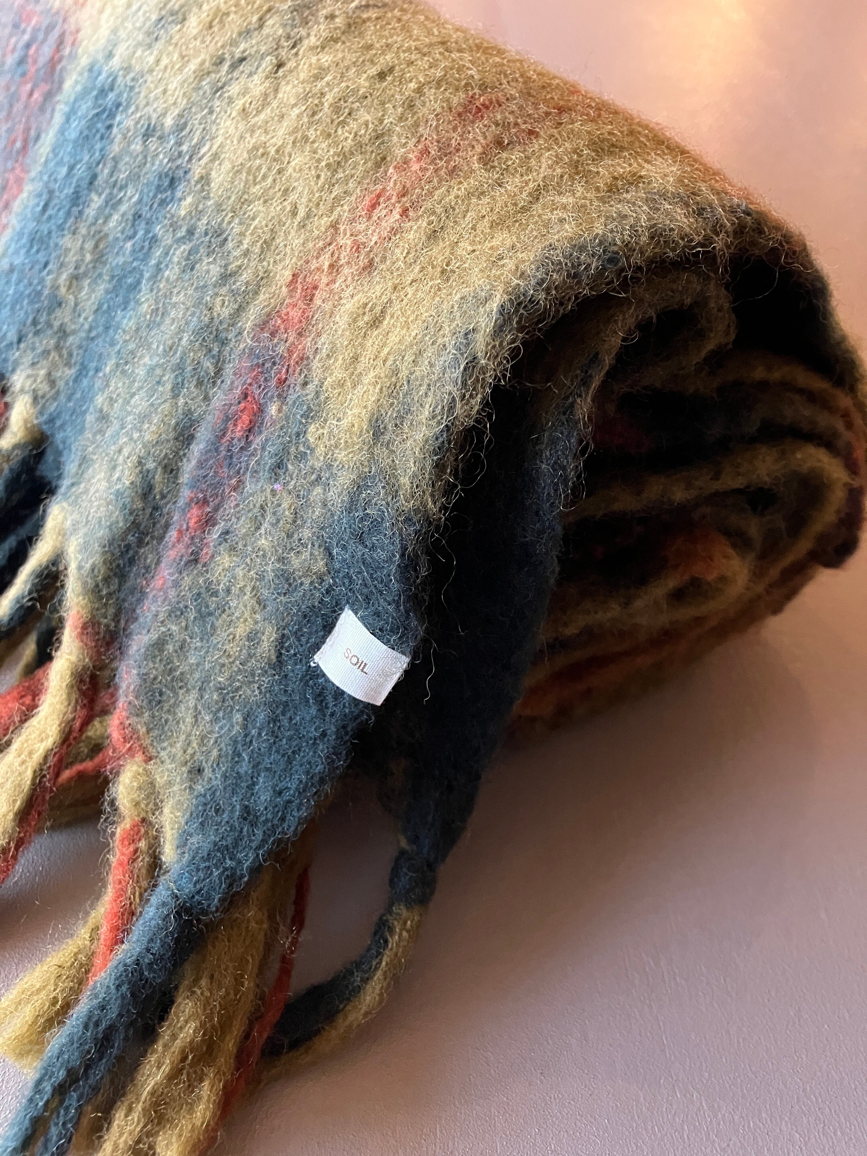 SOIL【ソイル】ウールチェックブランケット(カーキチェック)
