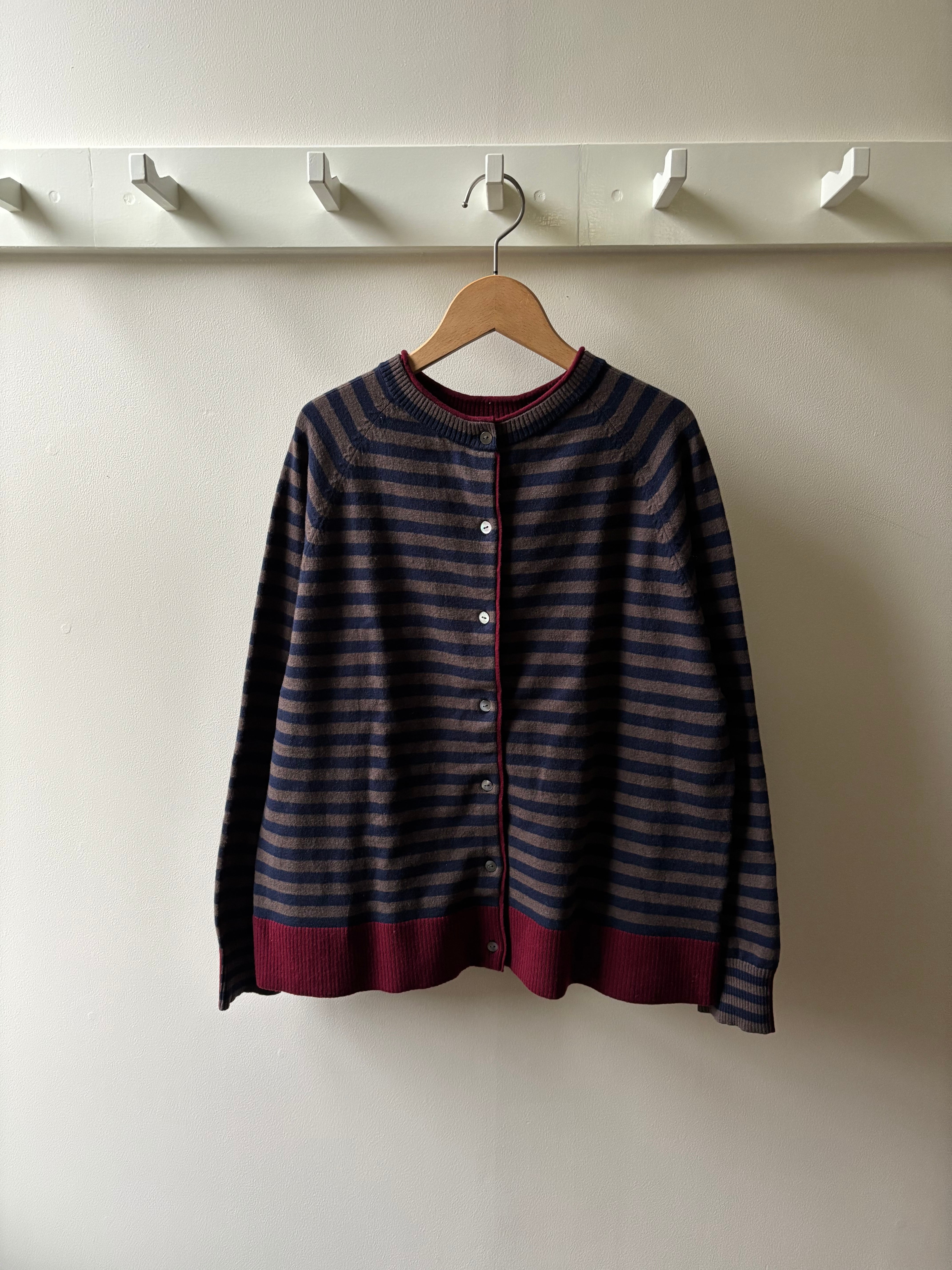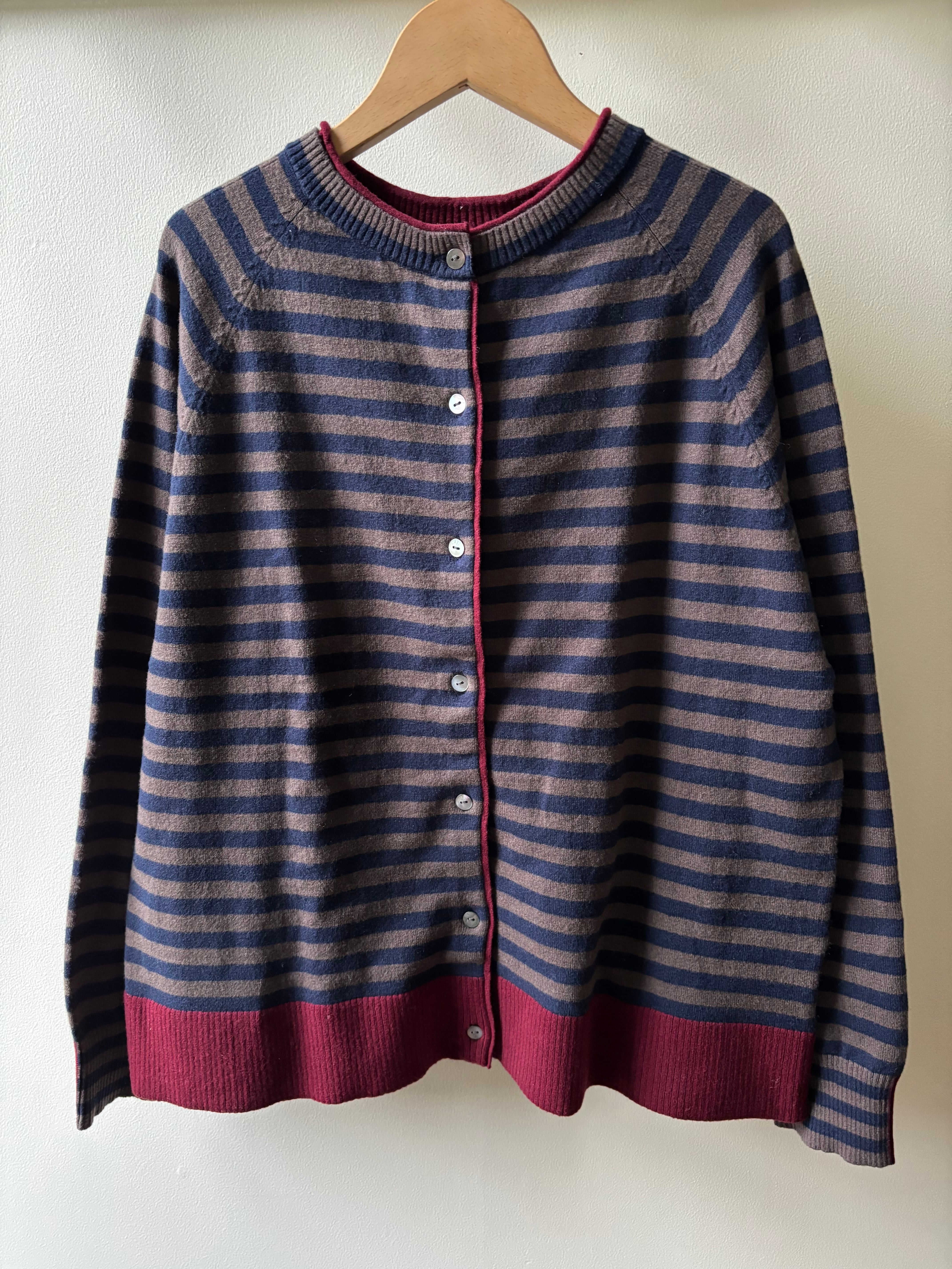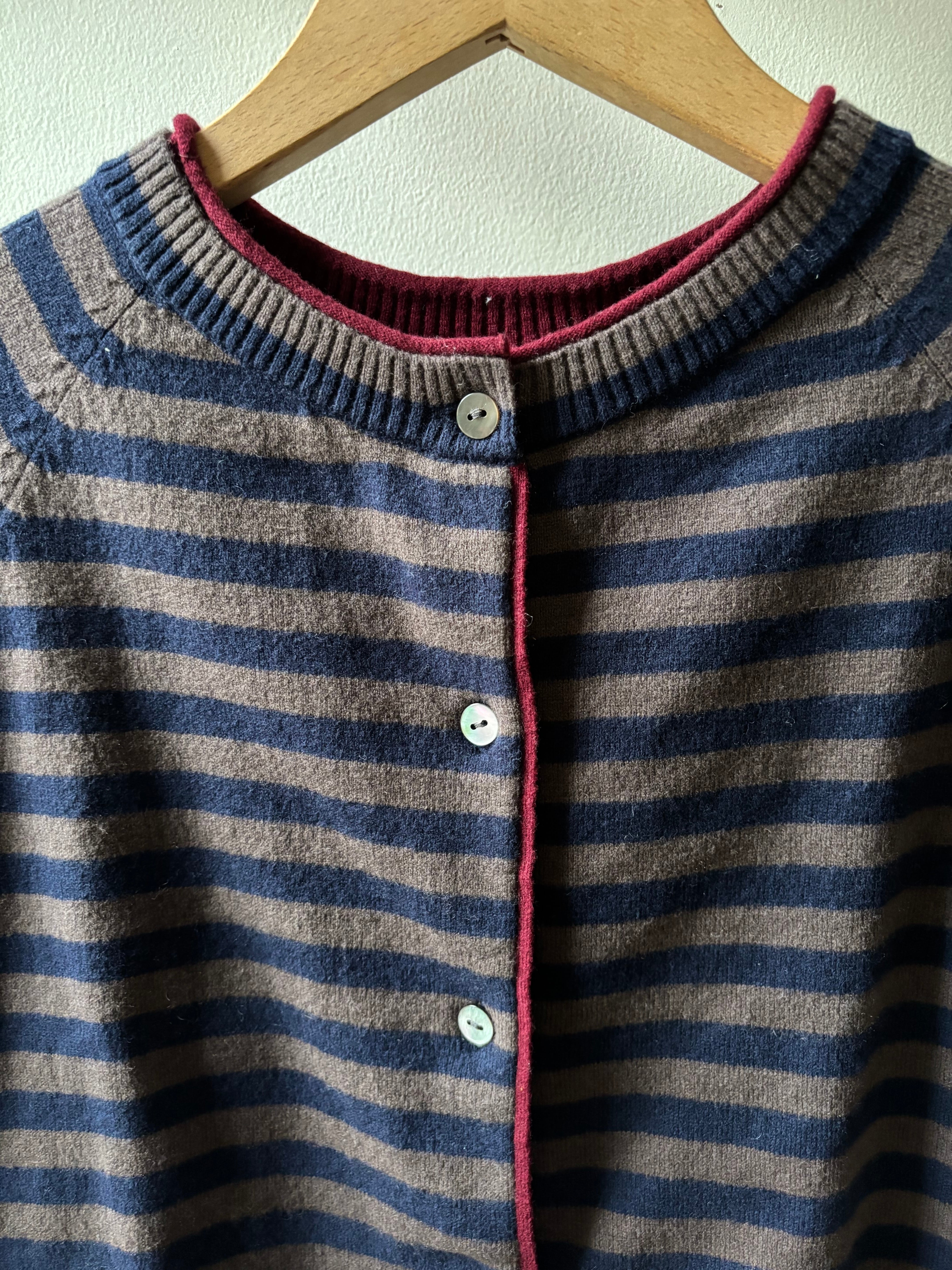 maomade【マオメイド】2way・バイカラー・カーディガン (ネイビー×ブラウン)