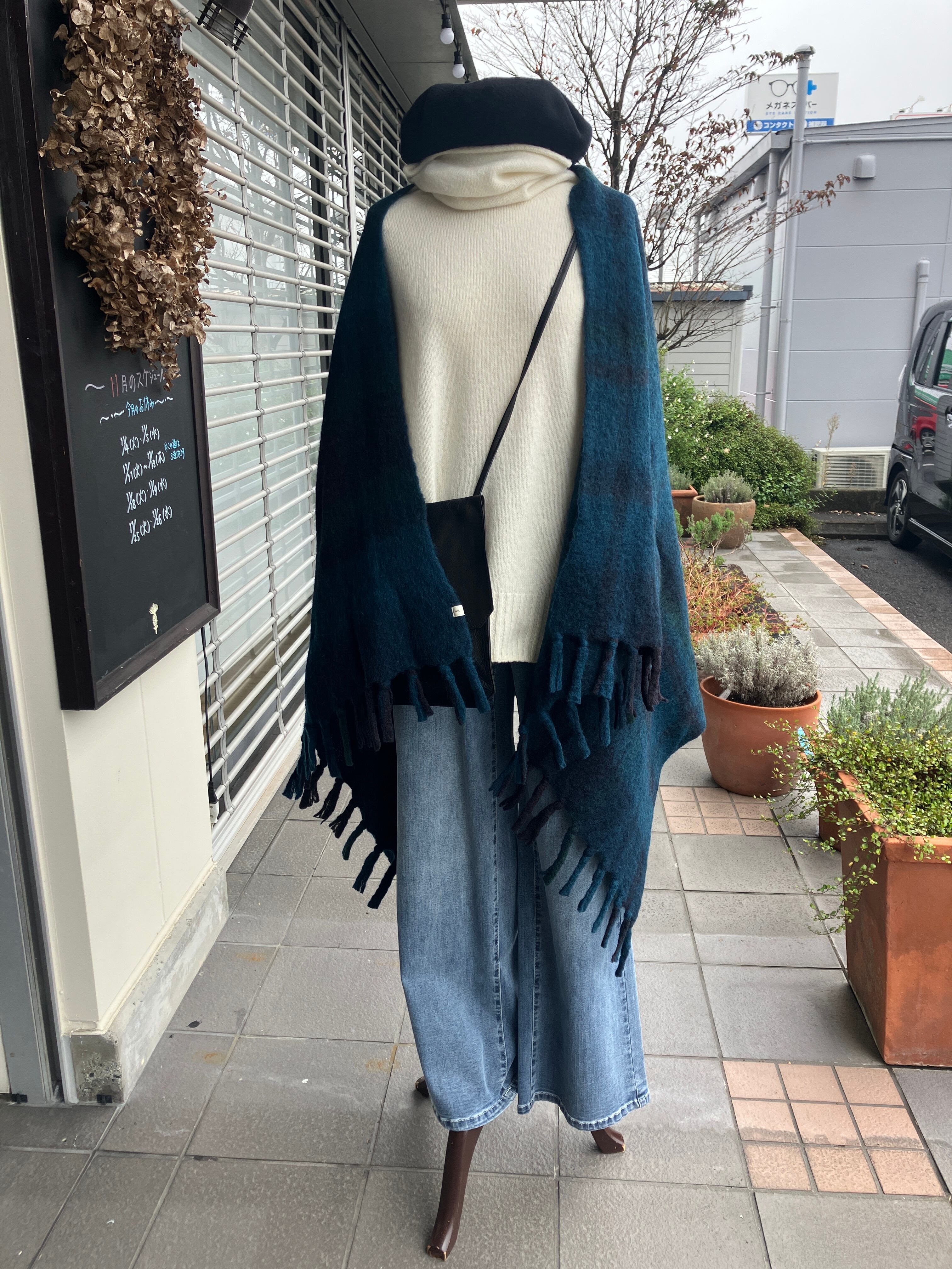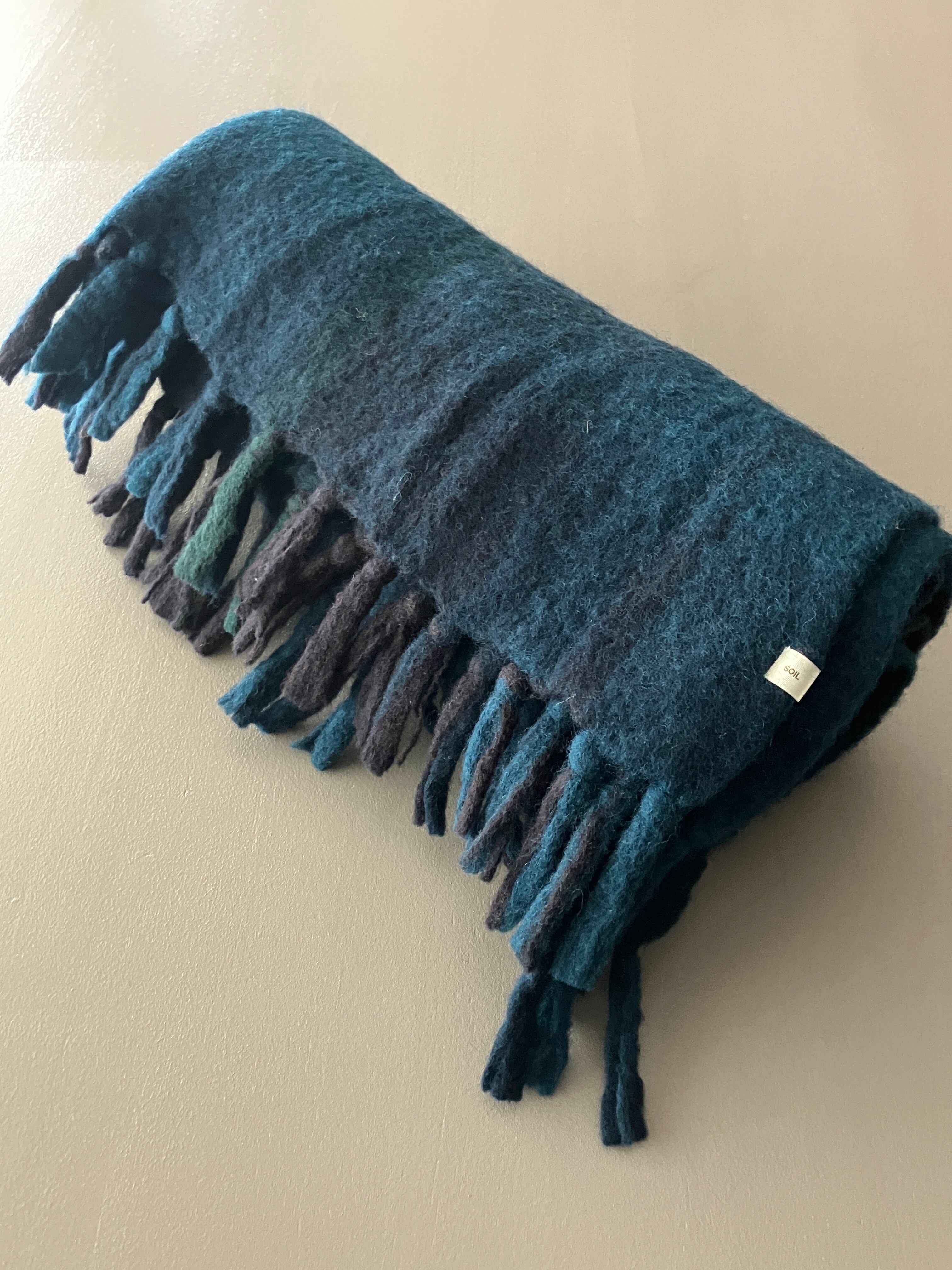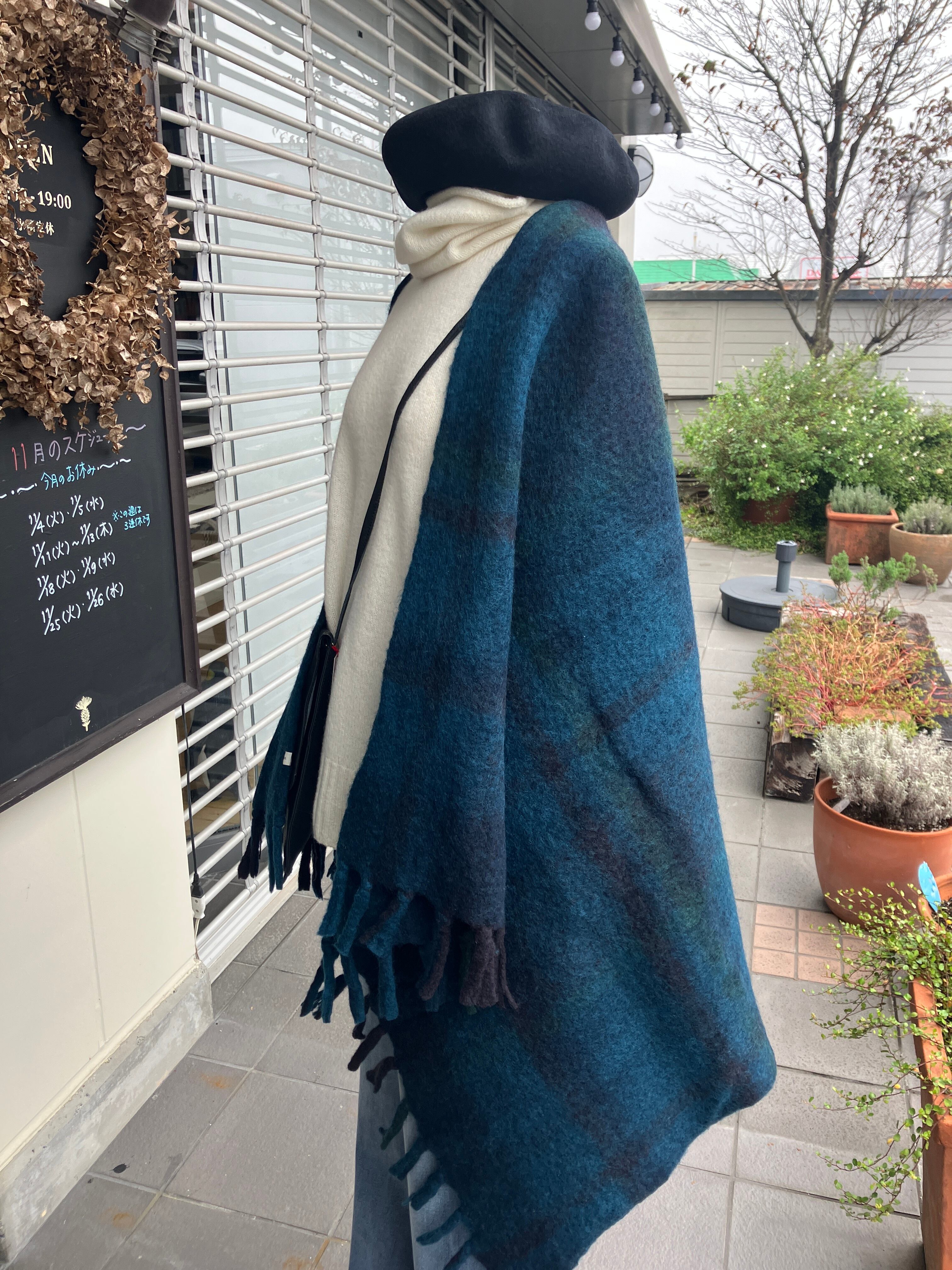 SOIL【ソイル】ウールチェックブランケット(ブルーチェック)