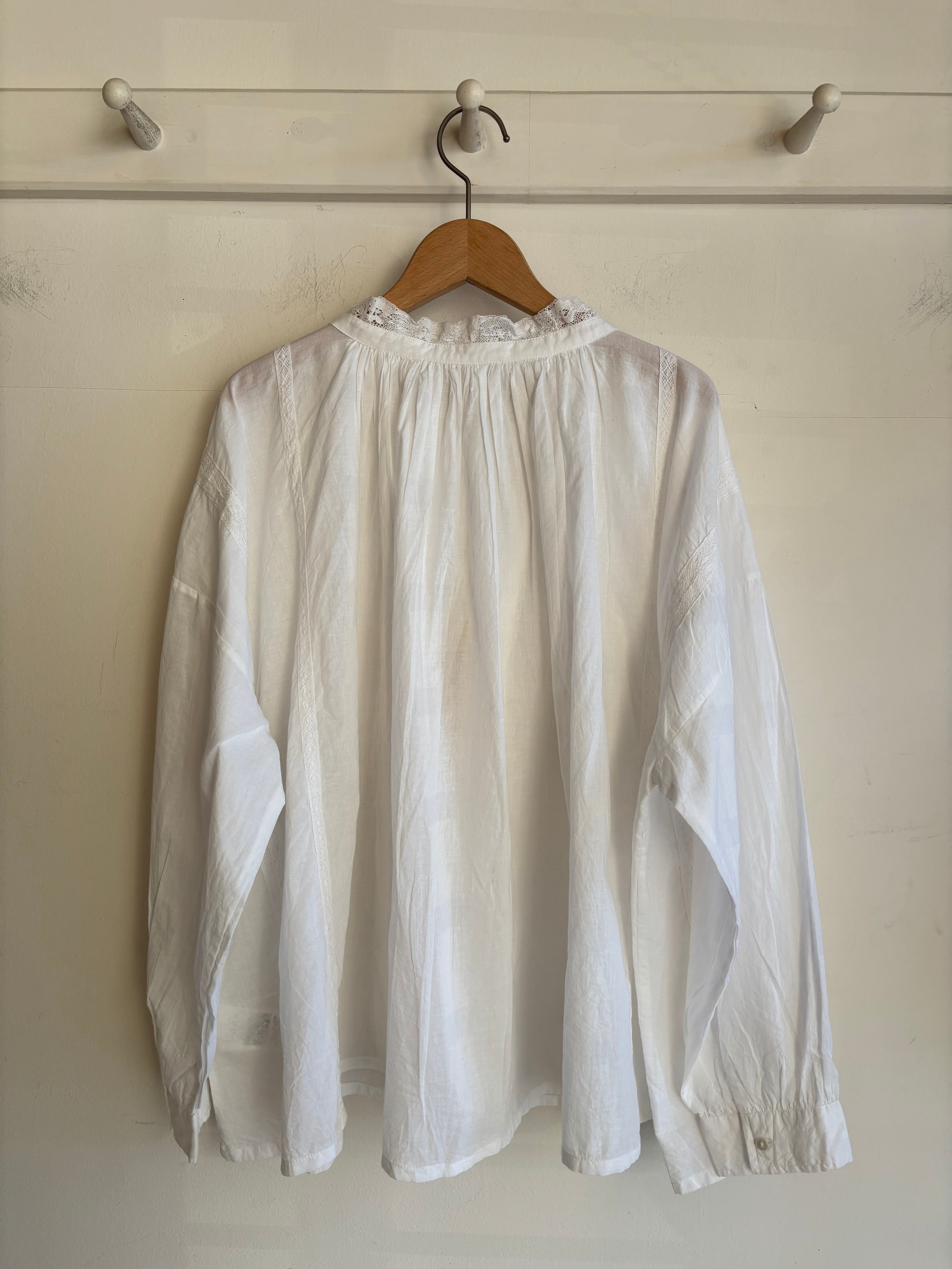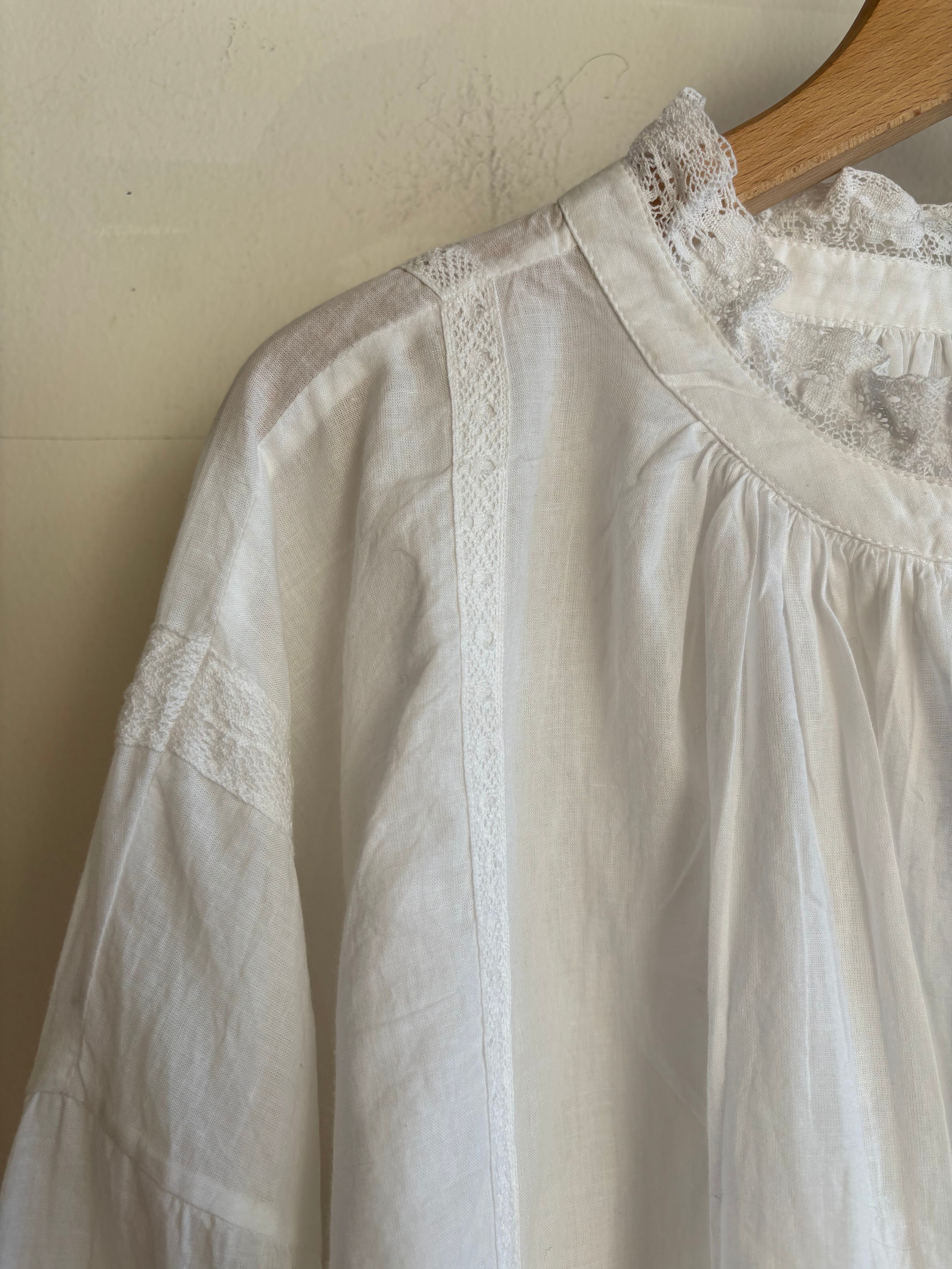 SOIL【ソイル】ギャザー・パッチワーク・スモッグブラウス(ホワイト)