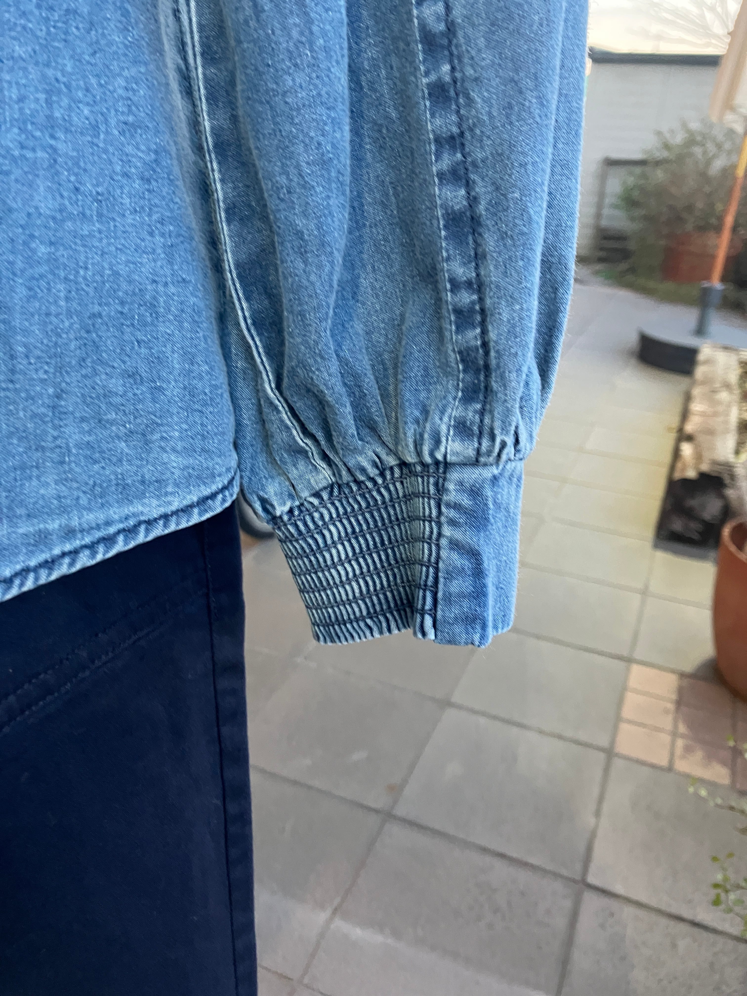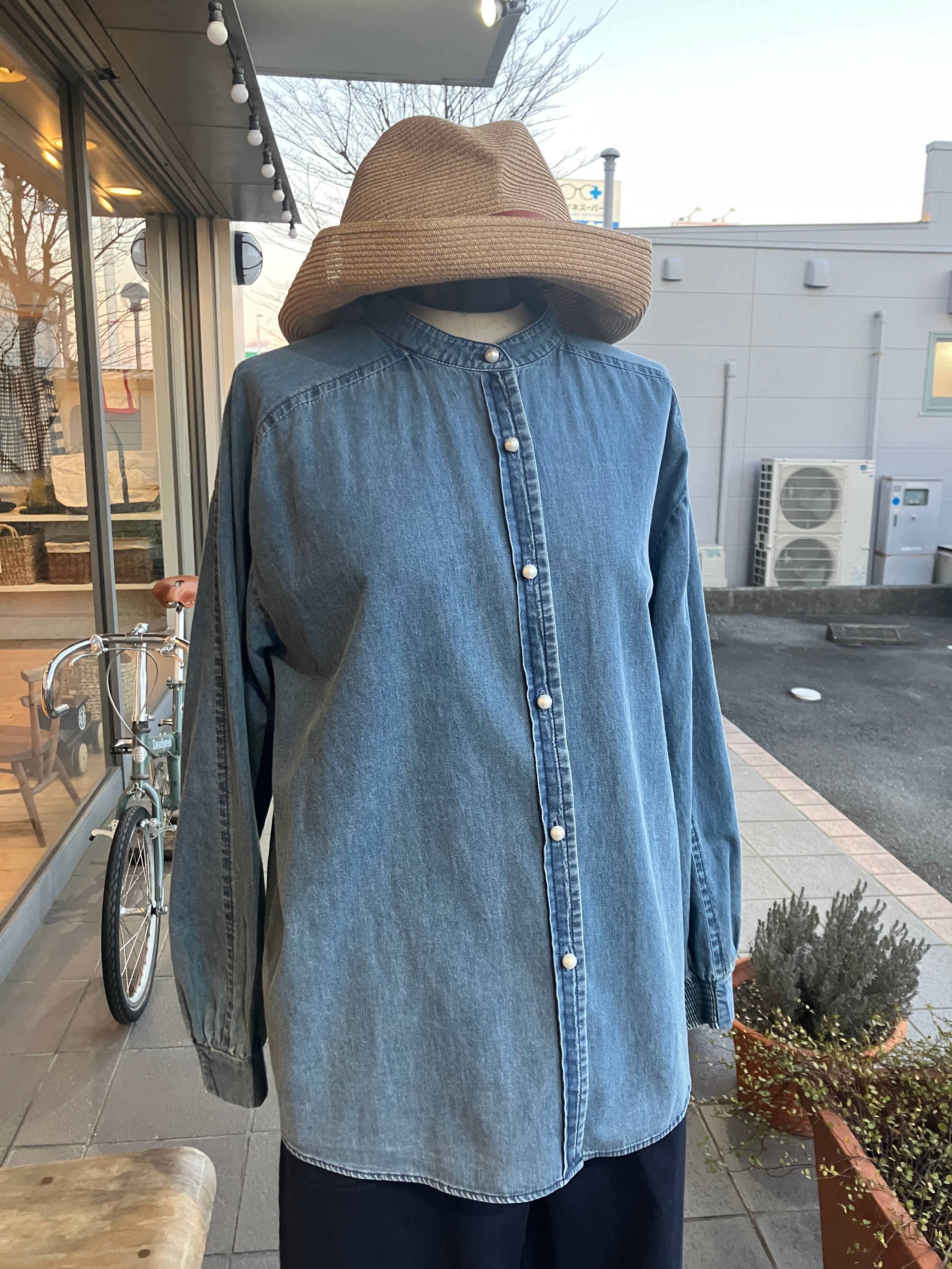 FONTANA GRANDE【フォンタナグランデ】パールボタンバンドカラーデニムブラウス