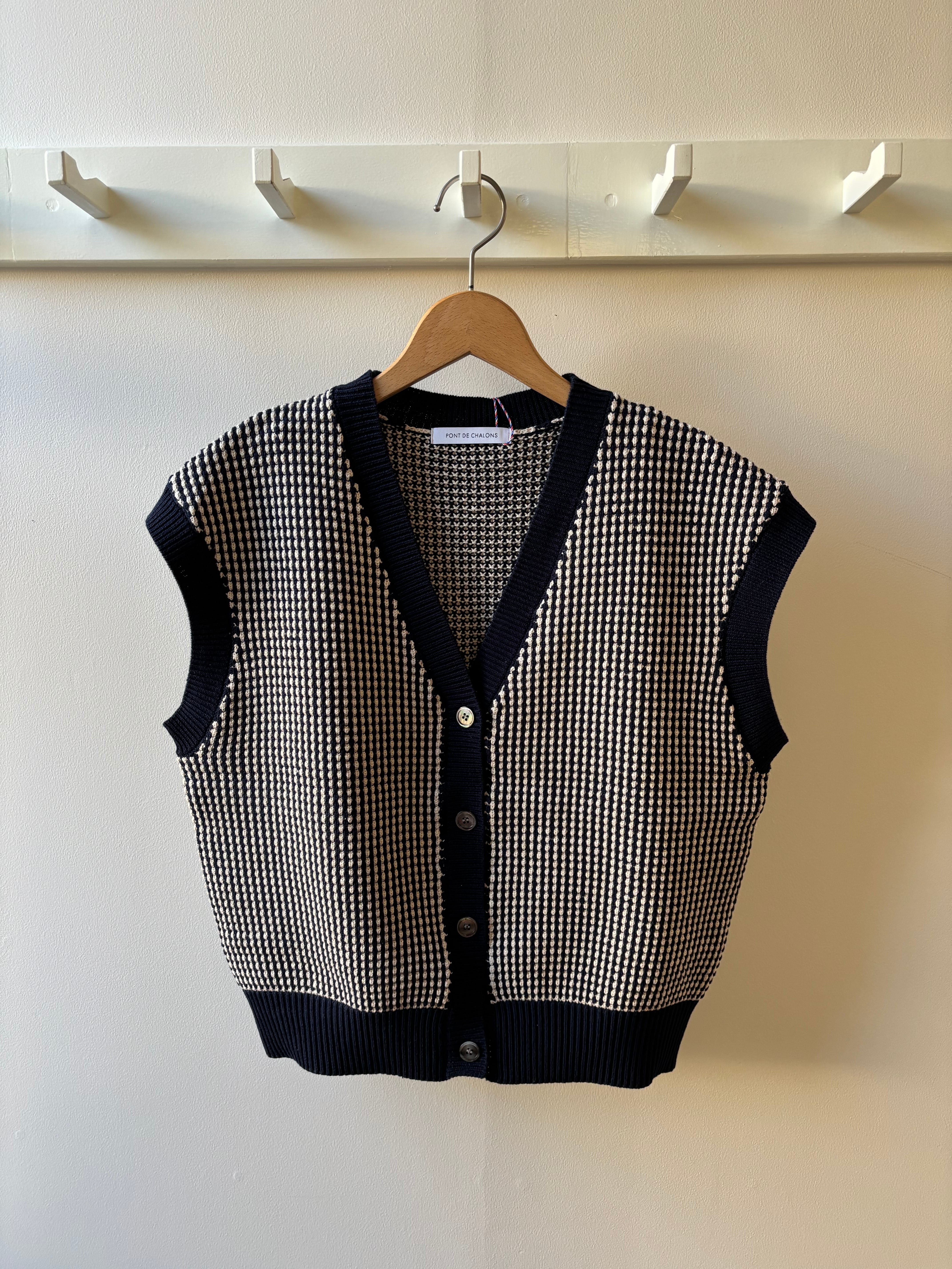 PONT DE CHALONS【ポン・デ・シャロン】ポップコーン編み・Vネックベスト(ネイビー)