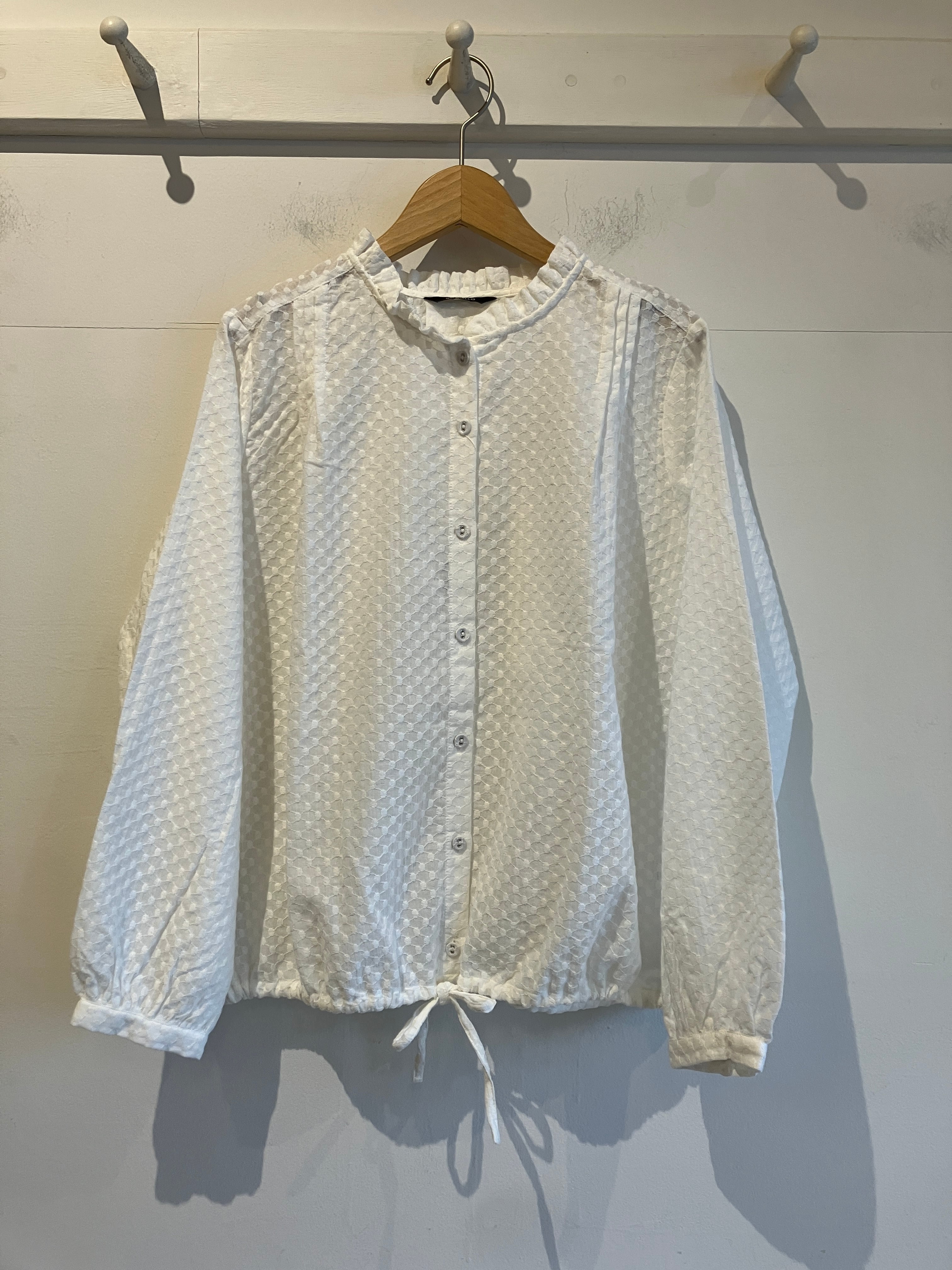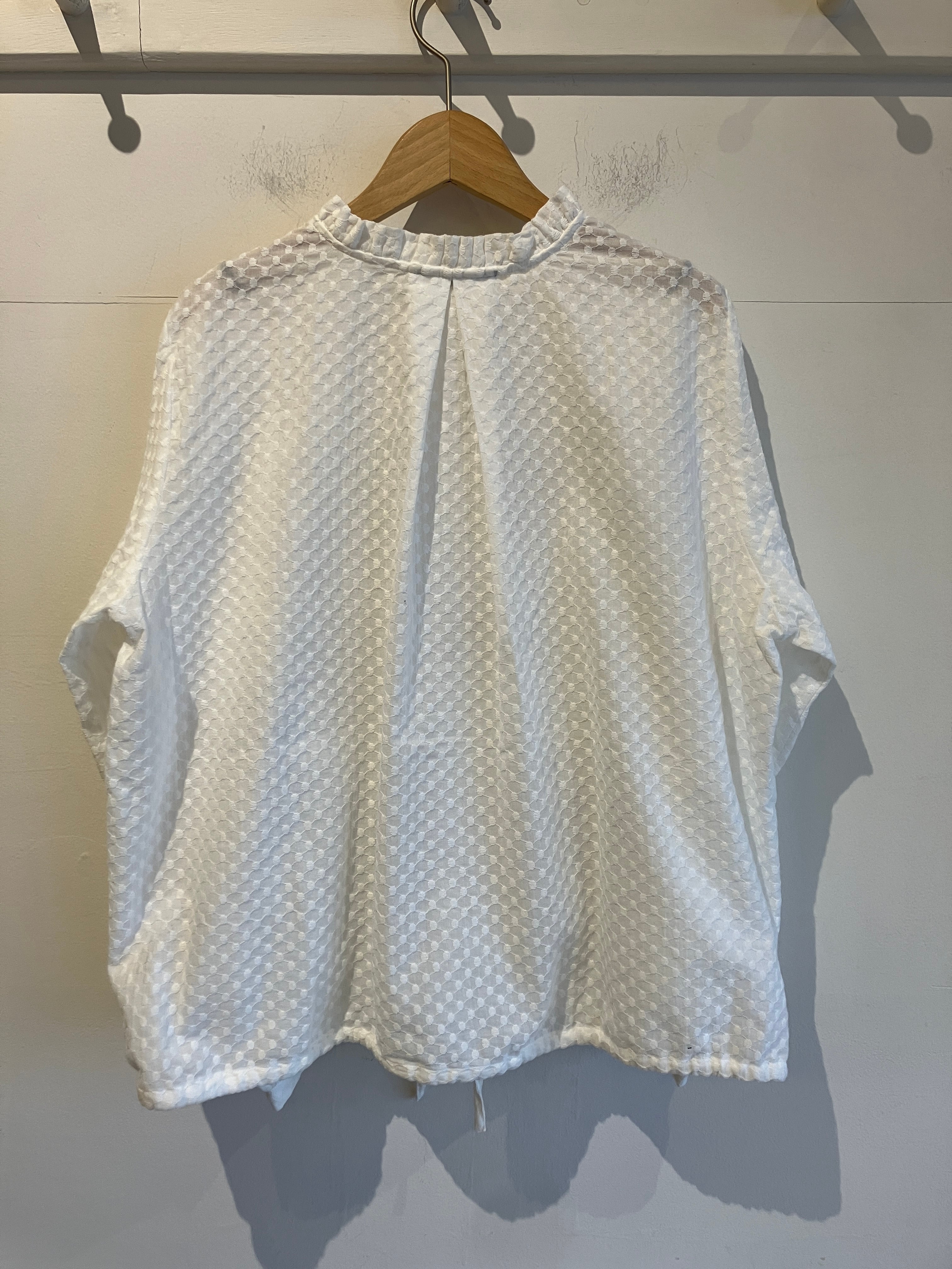 sosotto【ソソット】刺繍レースフリルカラー裾ドロストブラウス