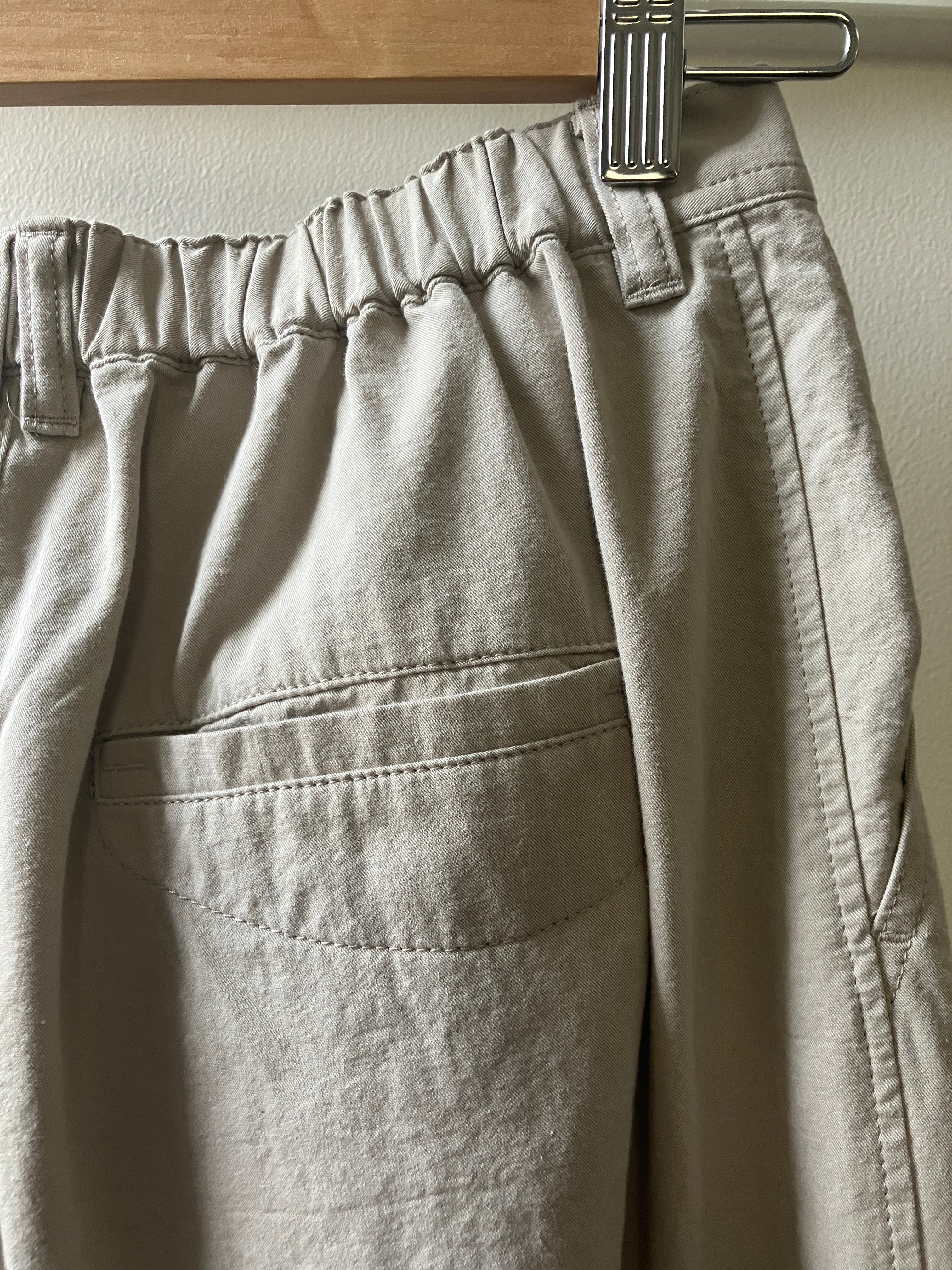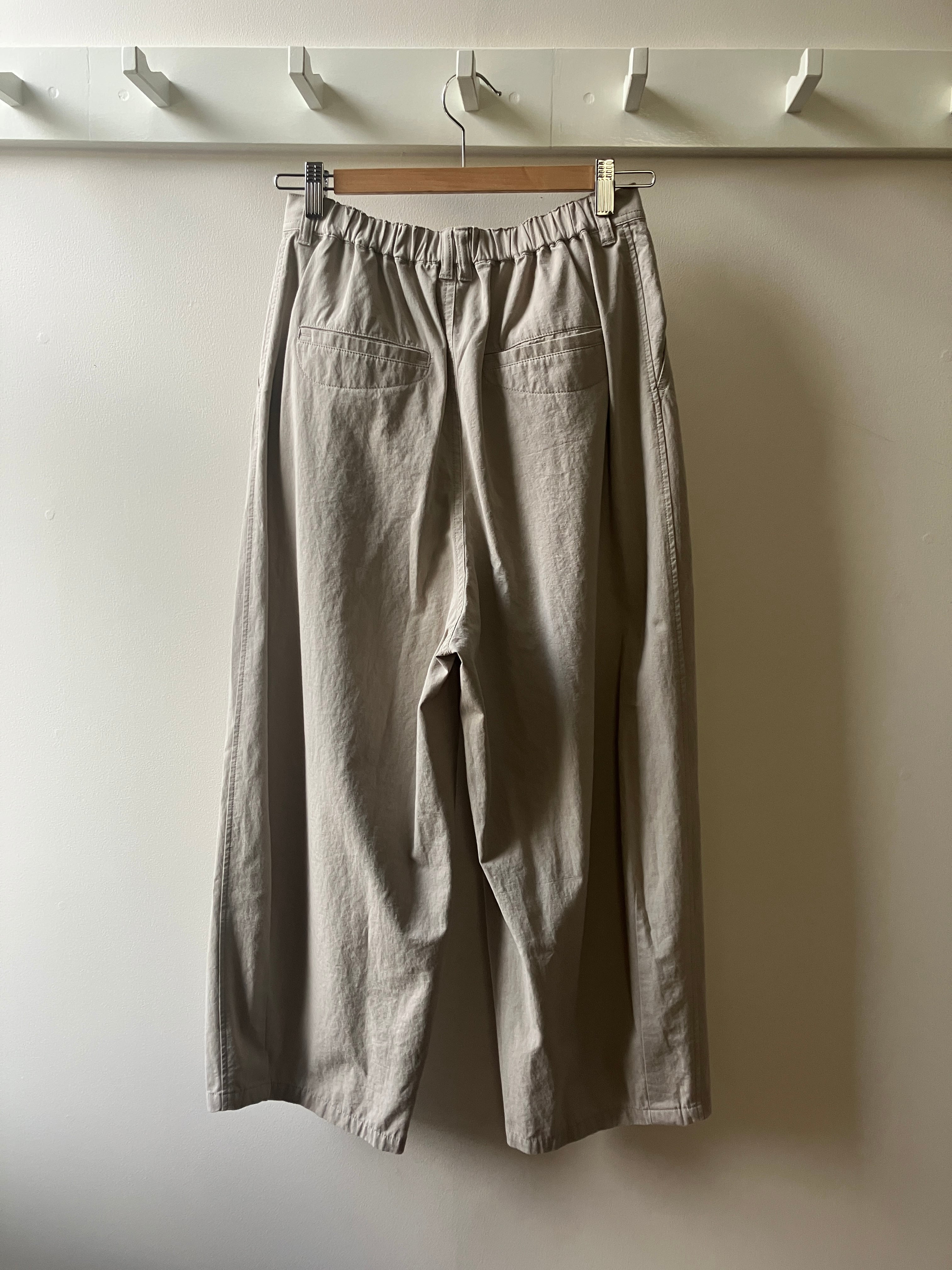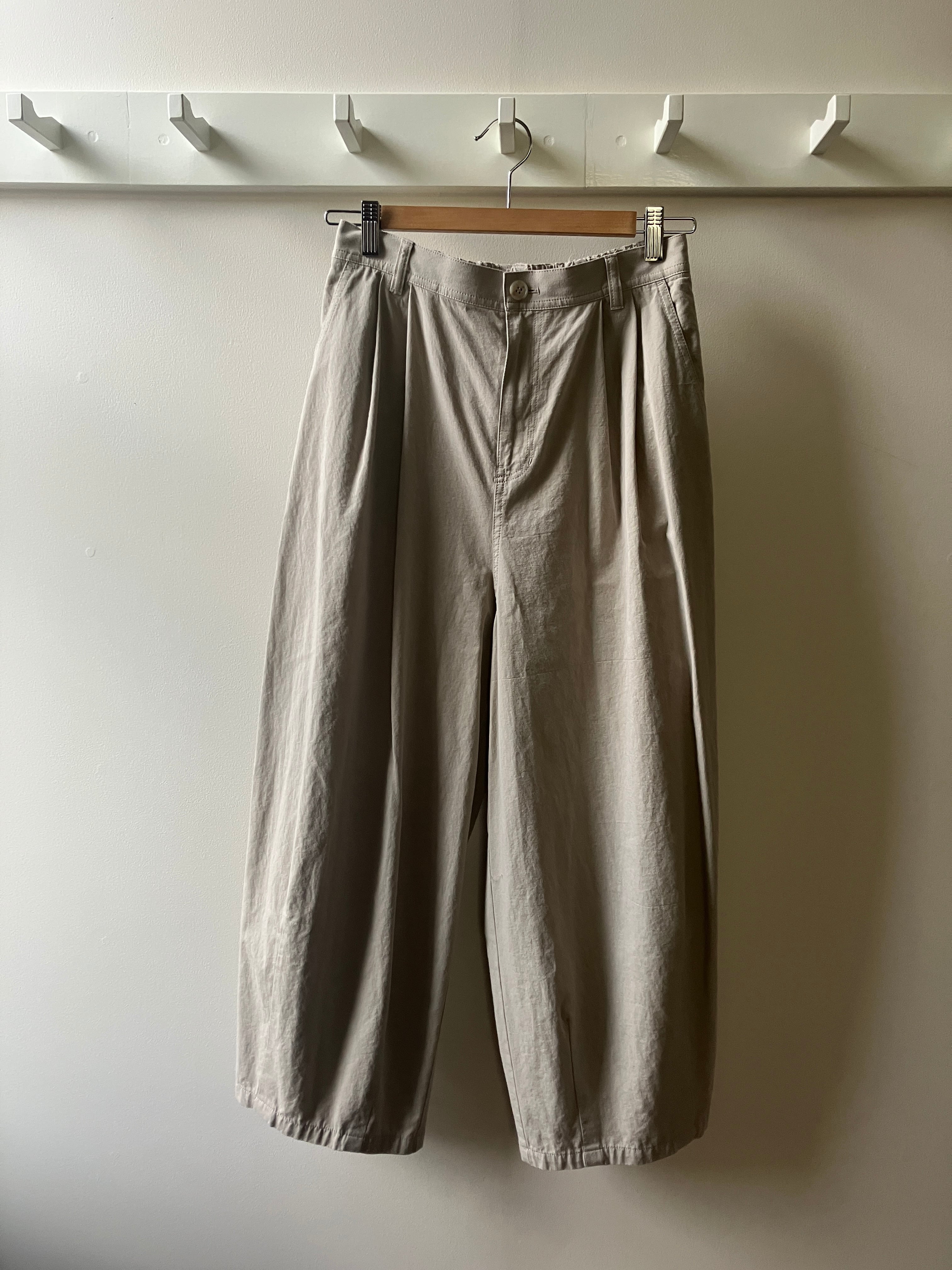 裾にかけて細くなったコクーンシルエットのパンツです