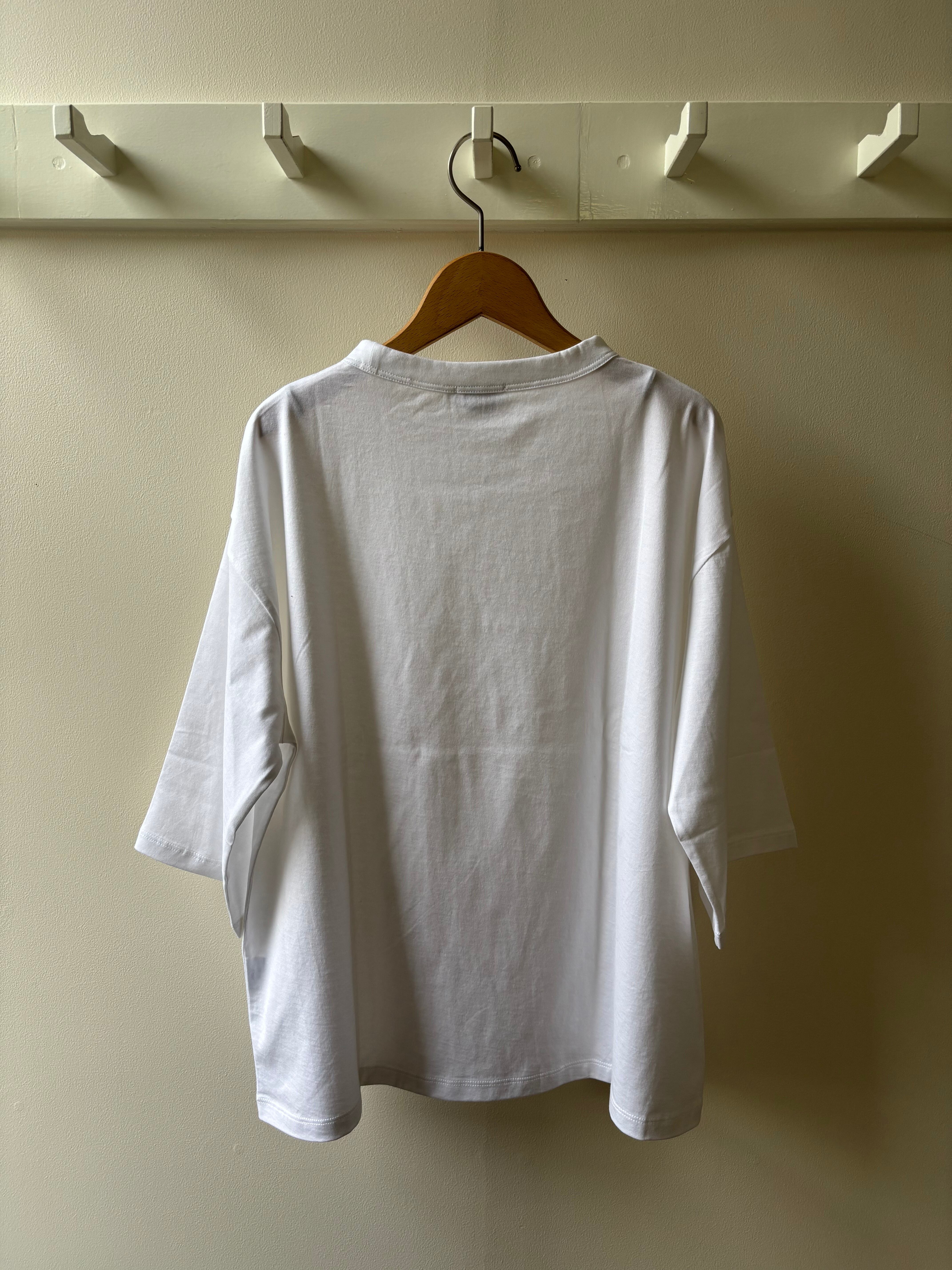 handvaerk【ハンドバーク】60/2 ボトルネック・ 3/4スリーブ TEE (ホワイト)