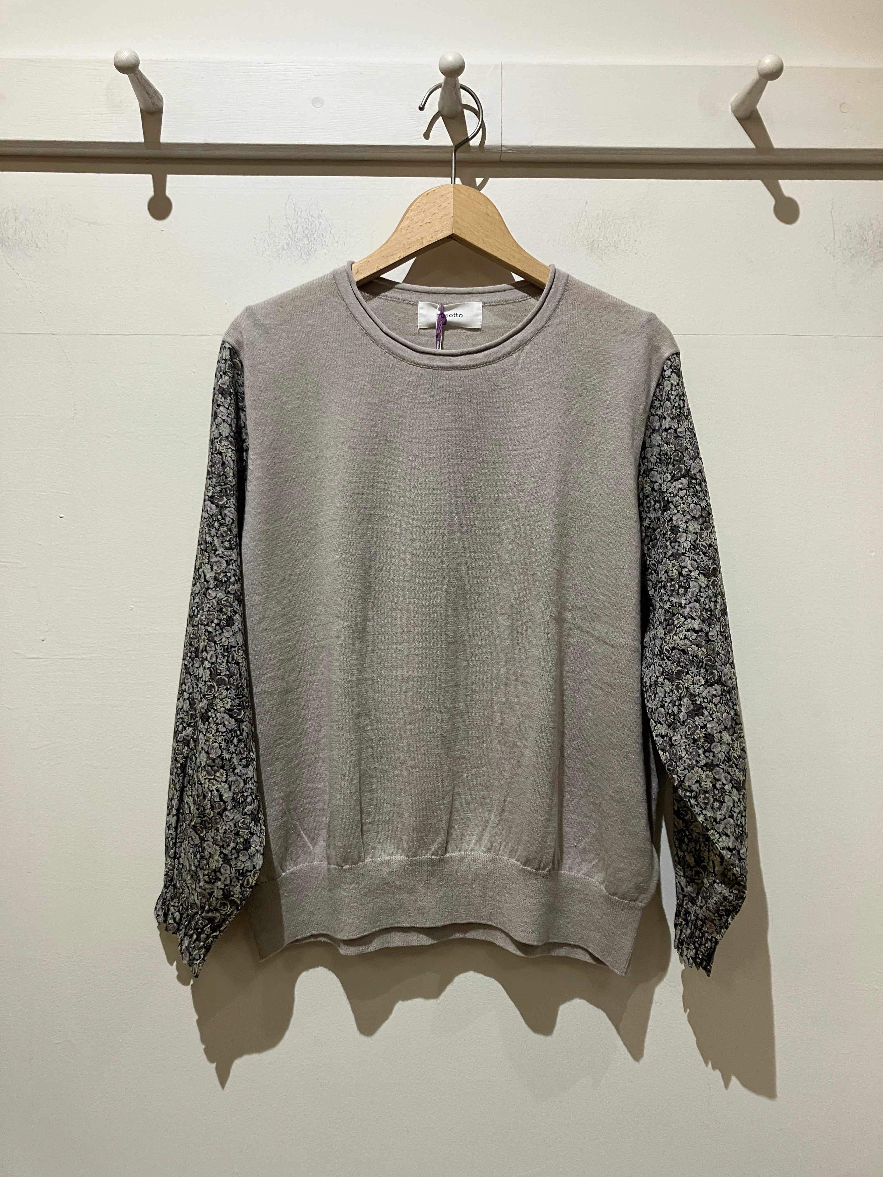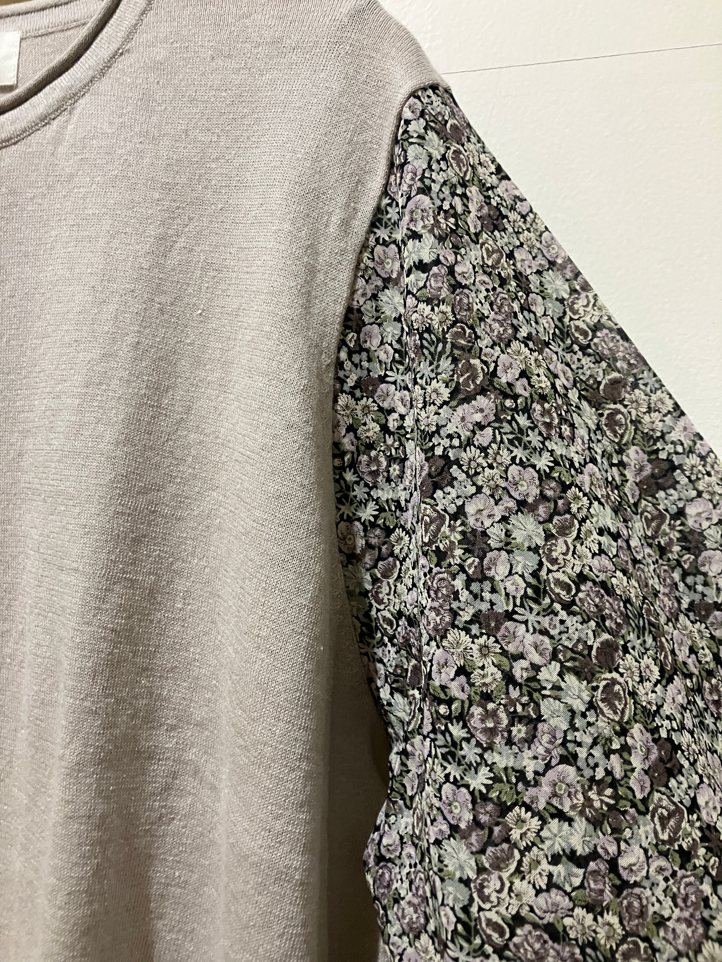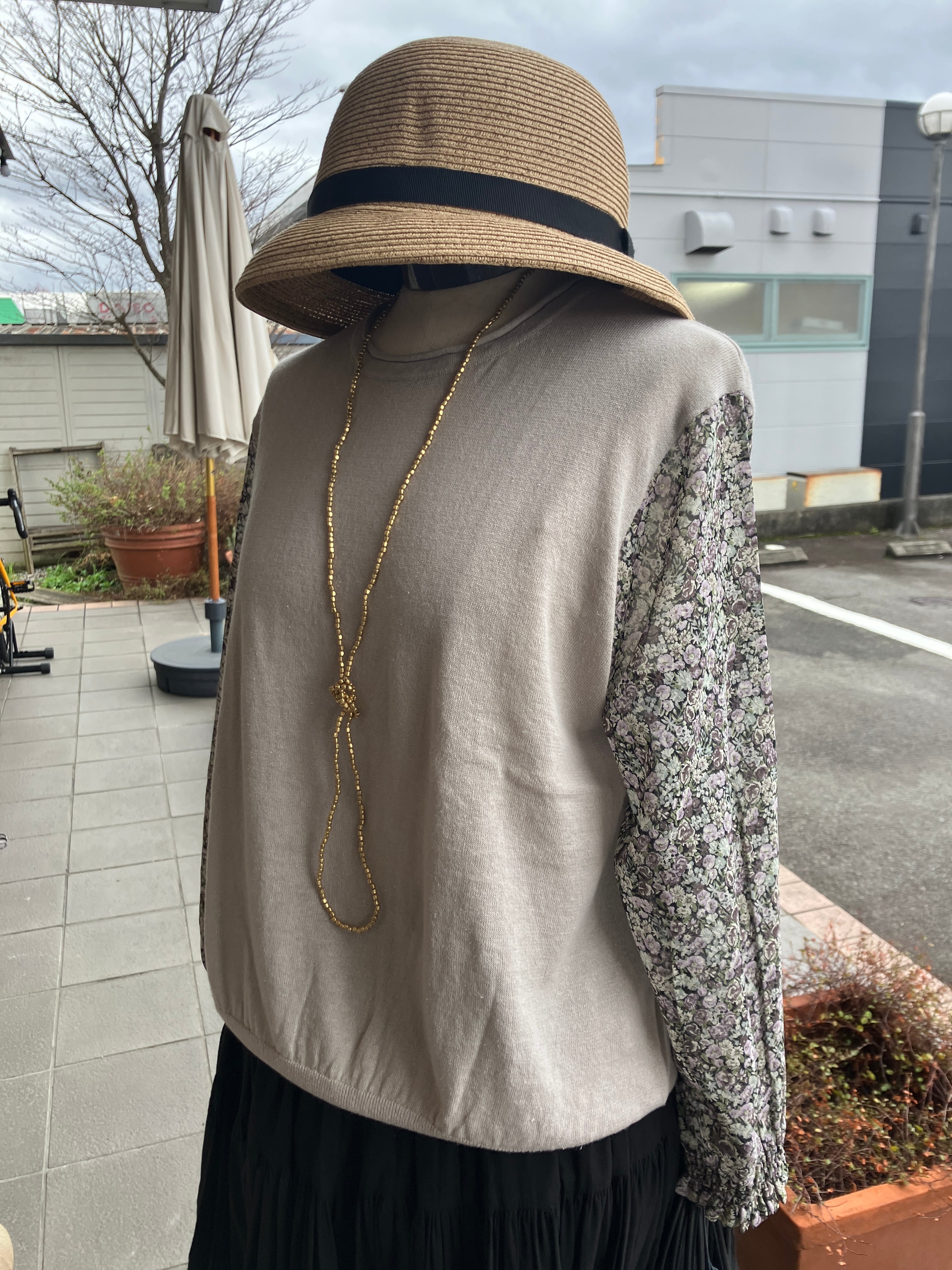 sosotto【ソソット】リバティ・ボイルスリーブ・7分袖ドッキングプルオーバー(グレージュ)