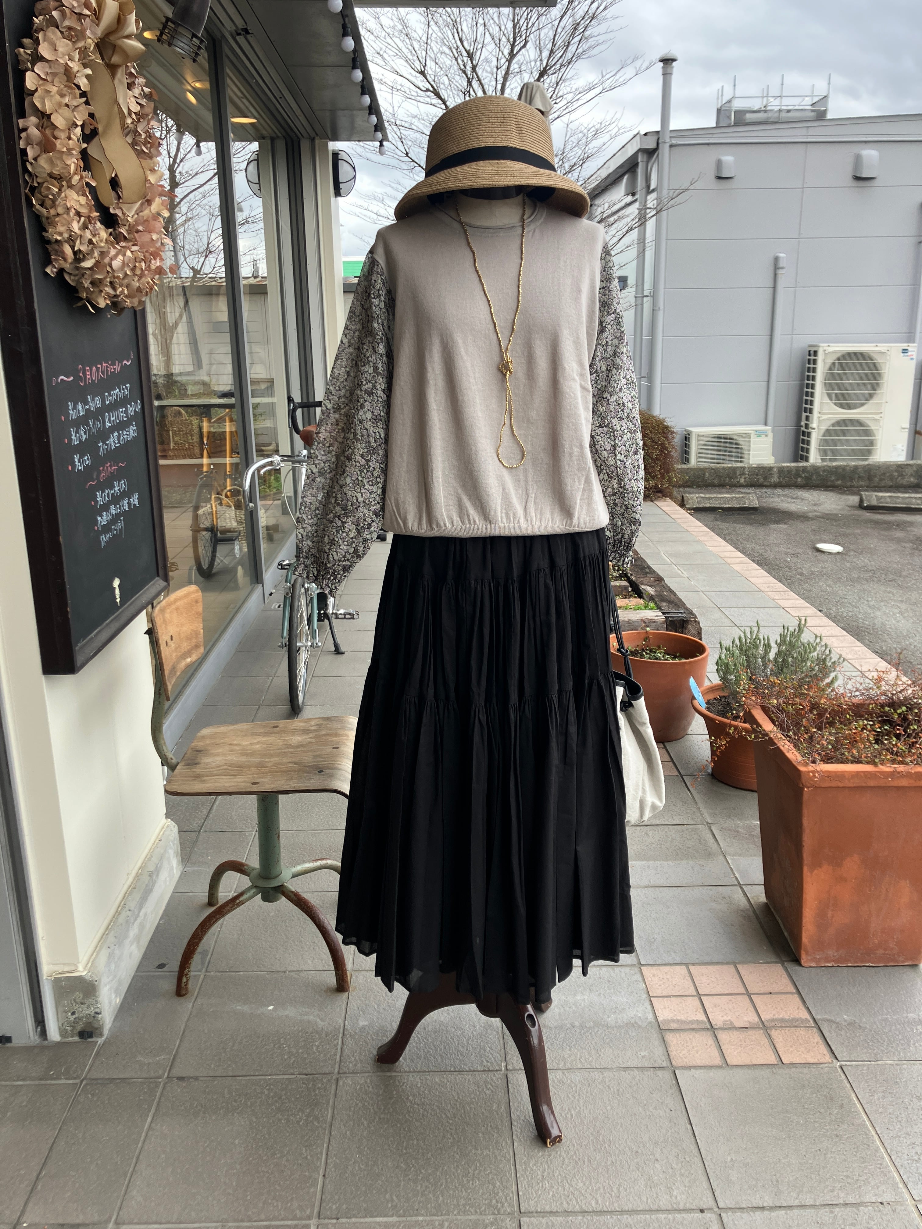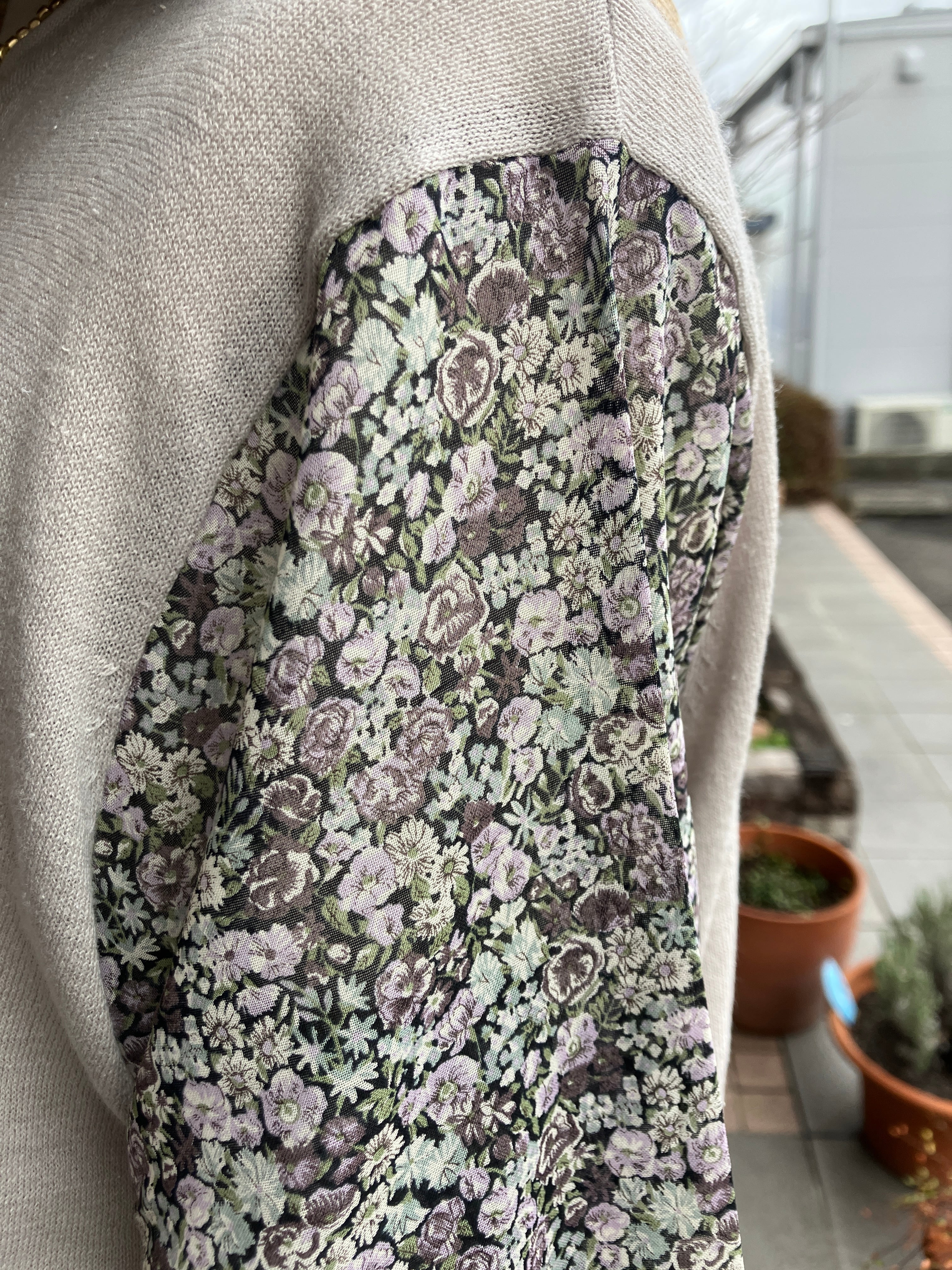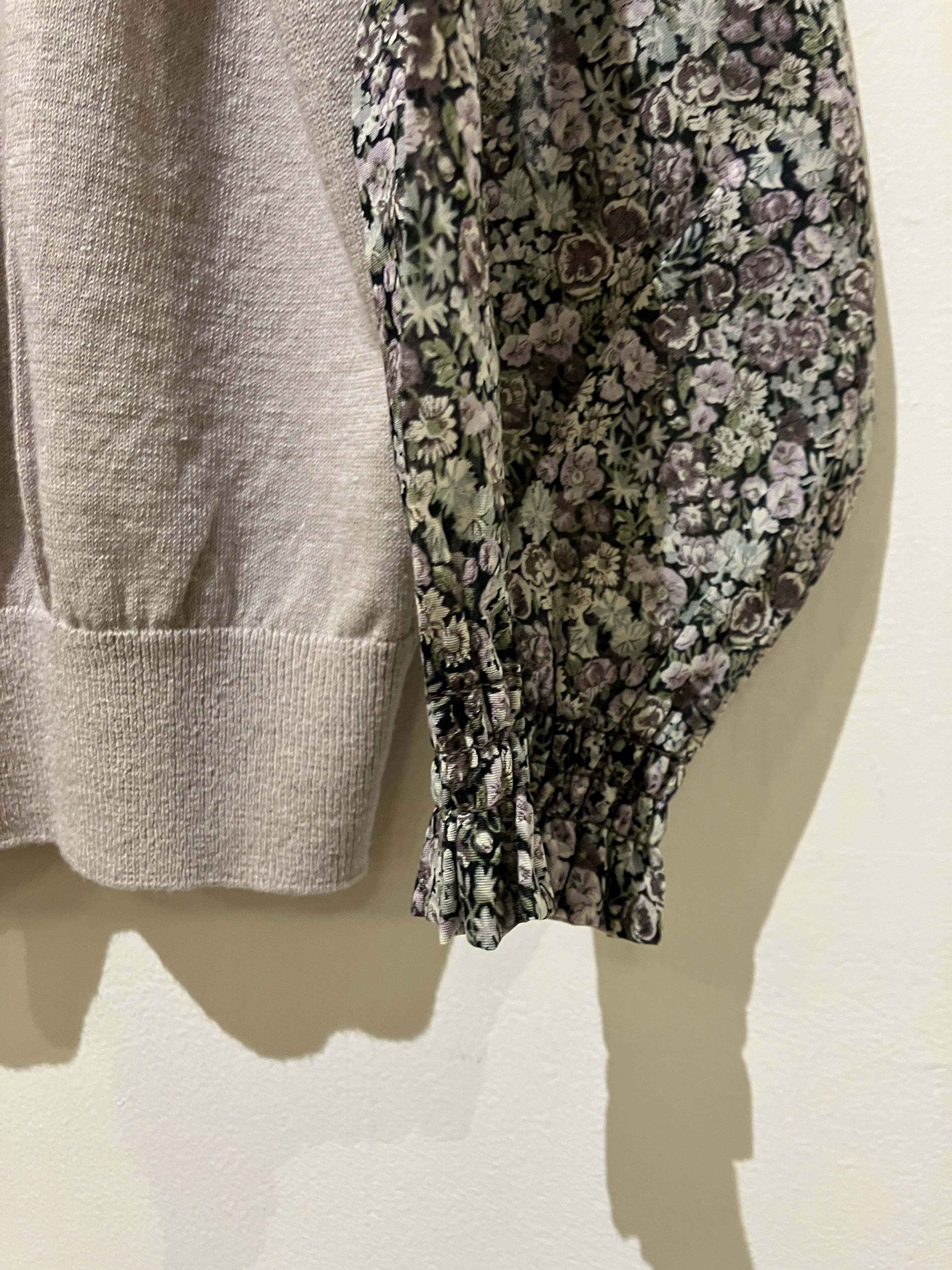 sosotto【ソソット】リバティ・ボイルスリーブ・7分袖ドッキングプルオーバー(グレージュ)