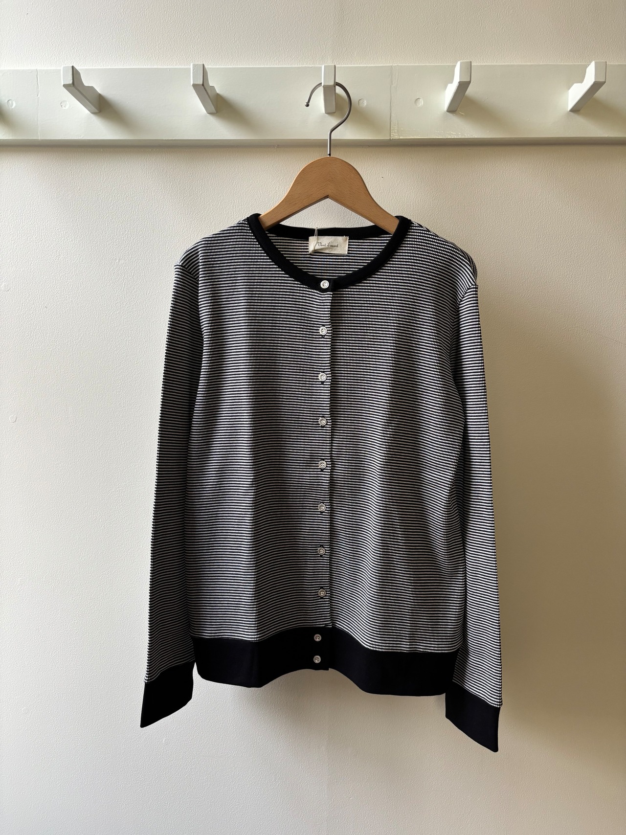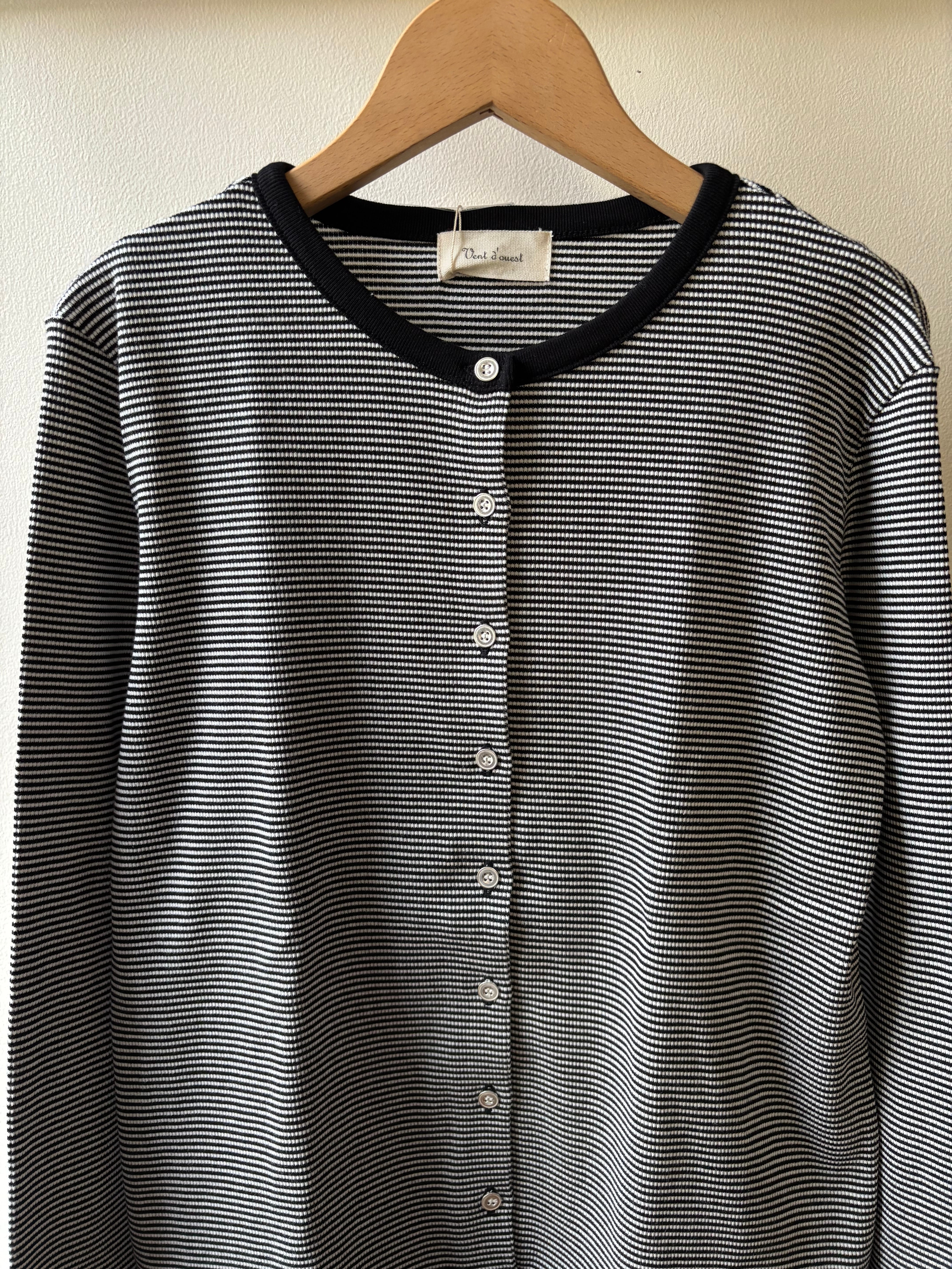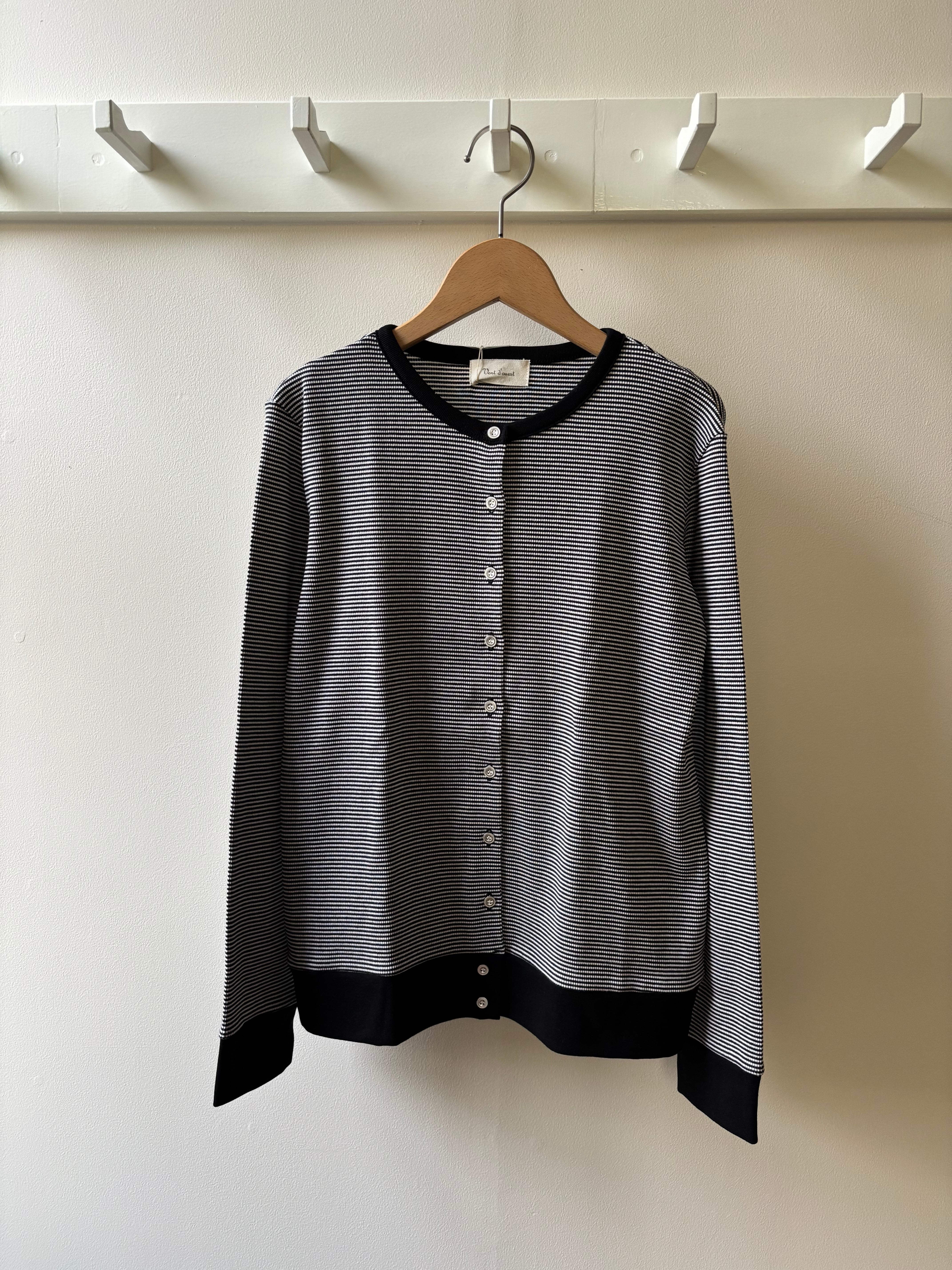 Vent d' ouest【ヴァン・ド・ウエスト】リブボーダー・カーディガン(細ボーダー/ブラック)