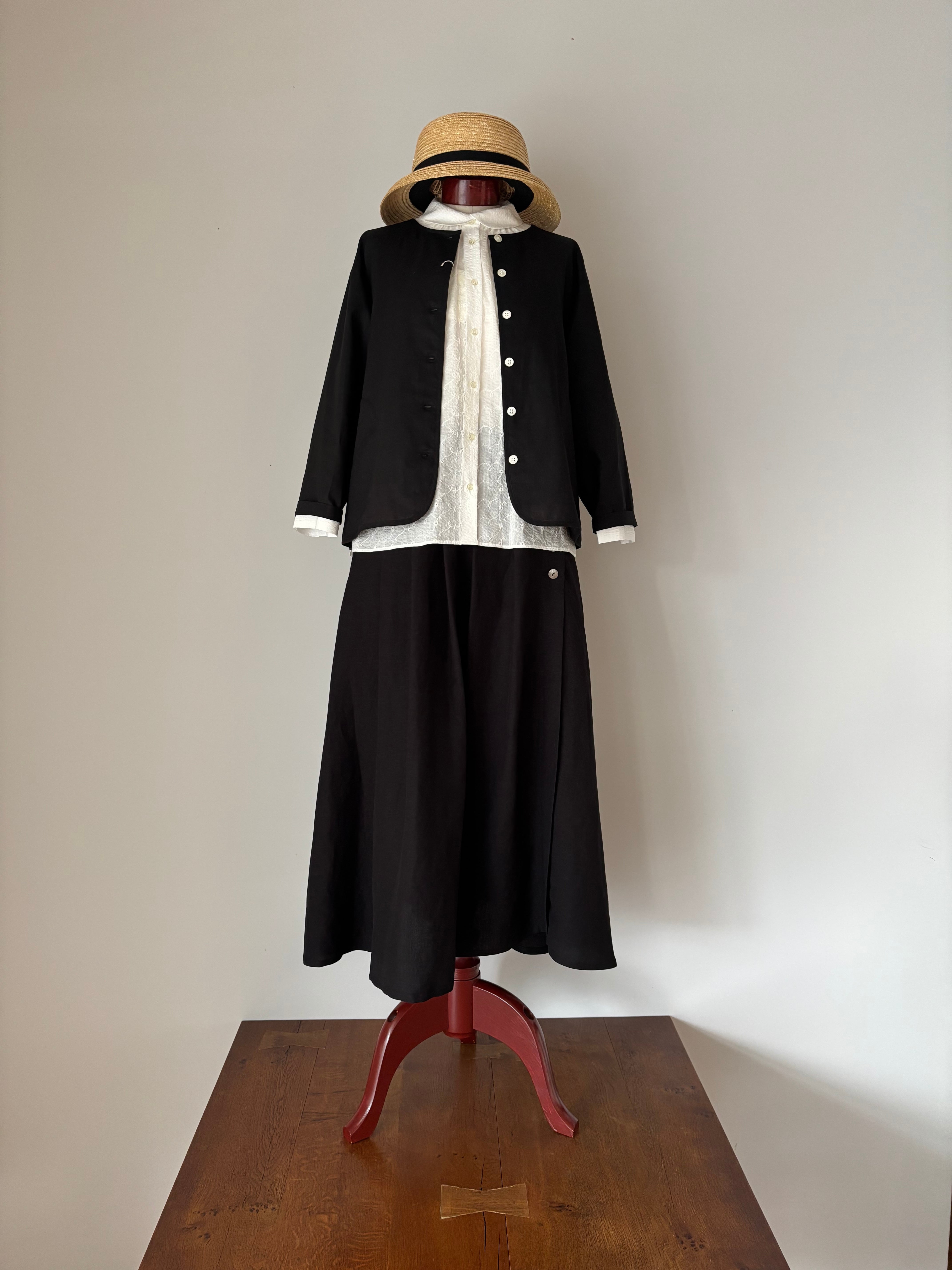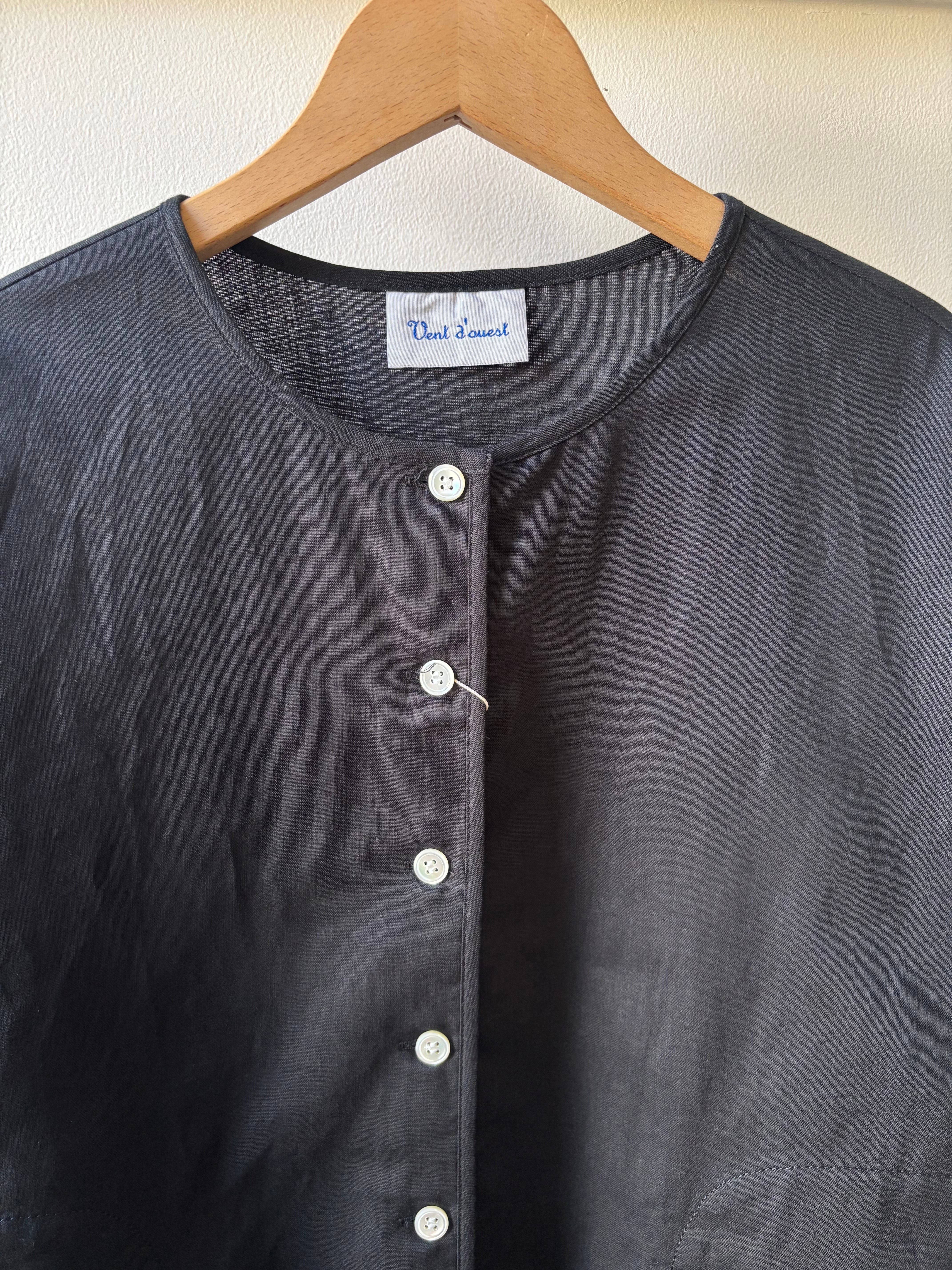 Vent d' ouest【ヴァン・ド・ウエスト】レーヨンリネン・クルーネック・シャツジャケット(ブラック)