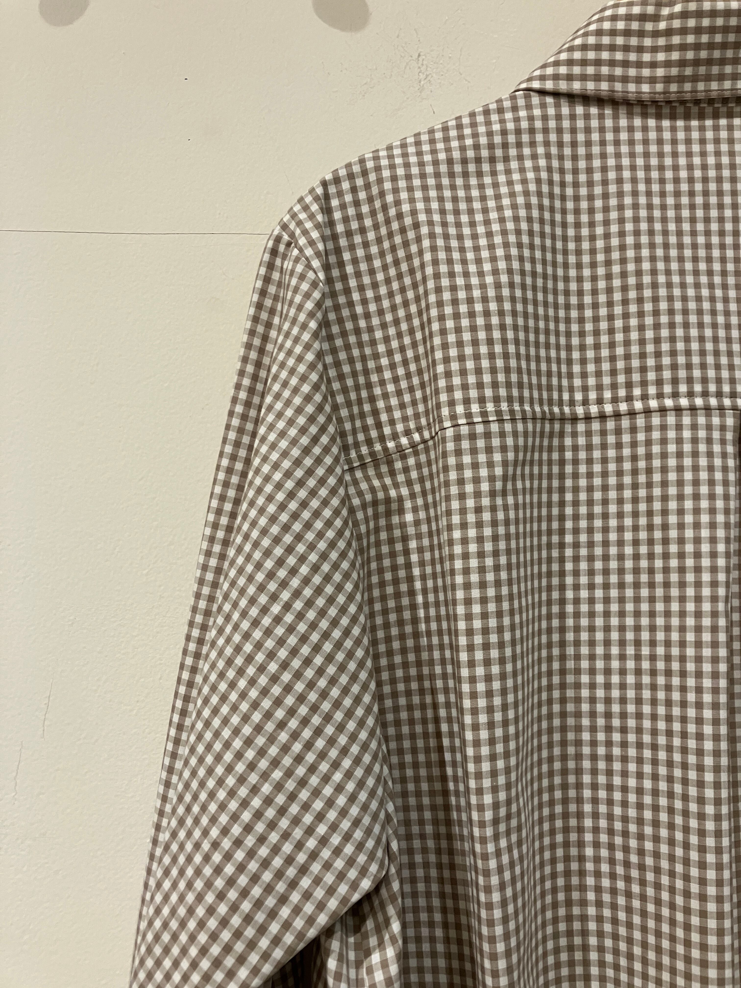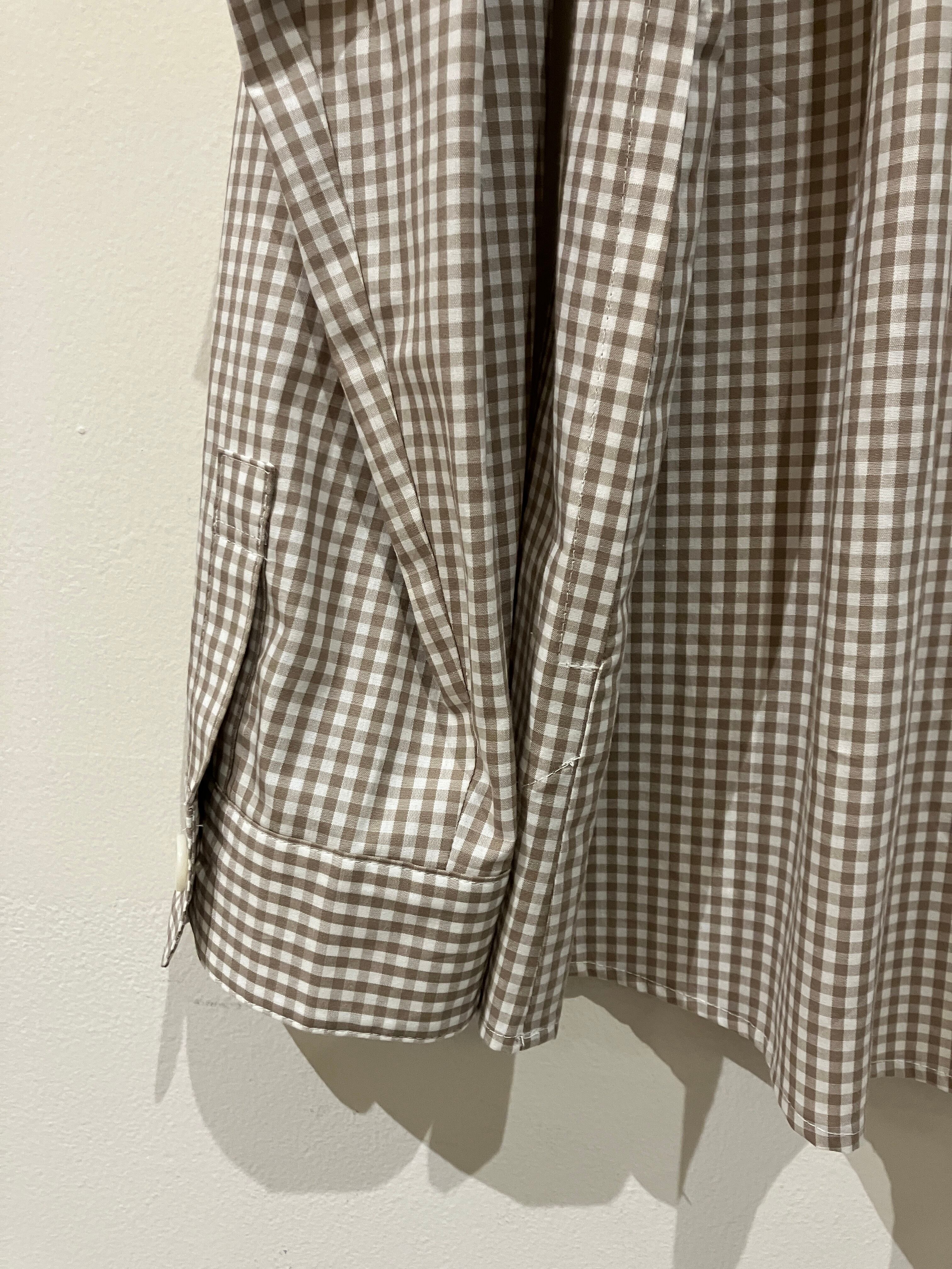 Vent d' ouest【ヴァン・ド・ウエスト】ギンガムチェック・ラウンドカラー・プルオーバーシャツ(ベージュ)