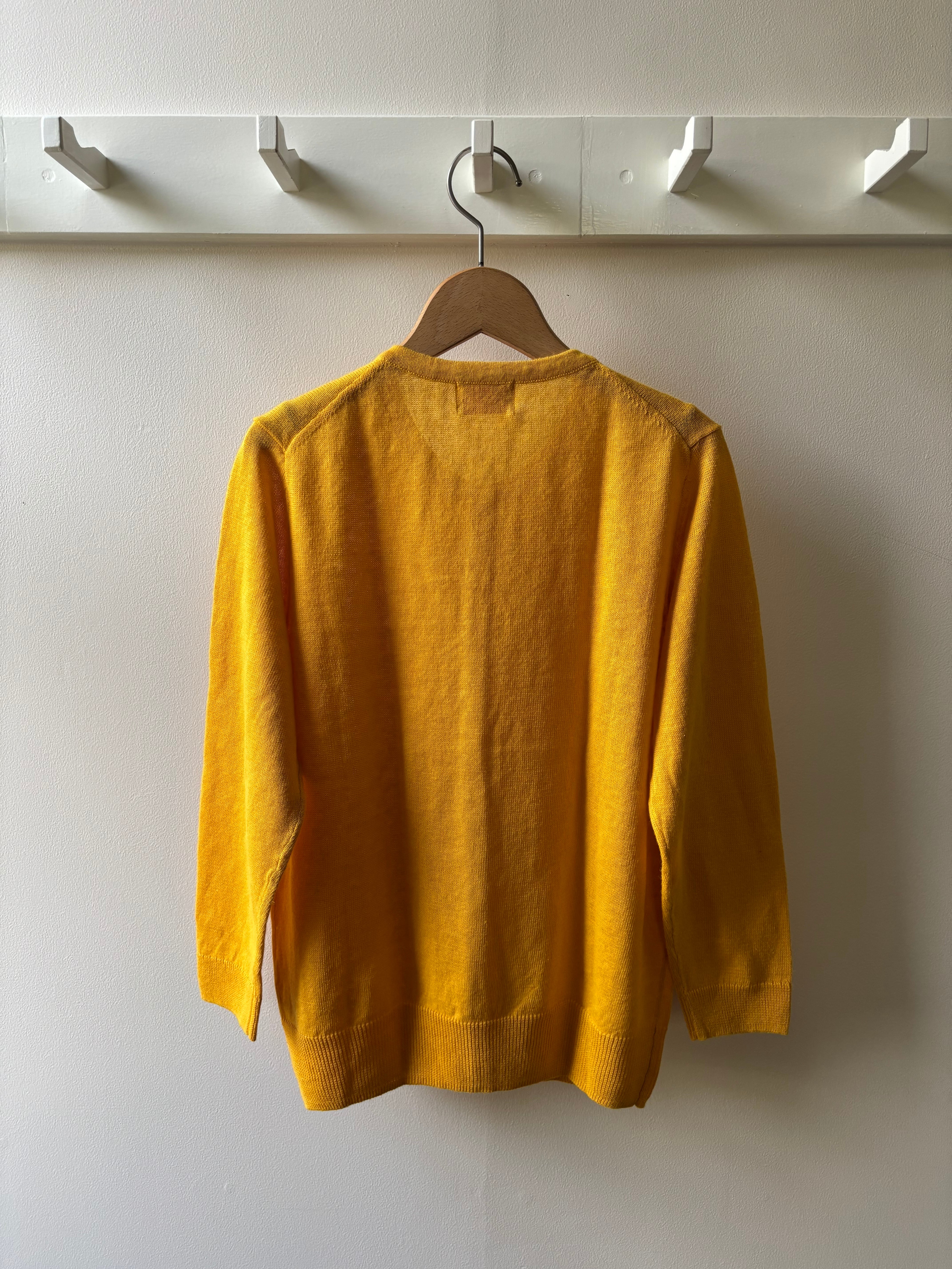 maomade【マオメイド】リネン・九分袖・Vネックカーディガン(イエロー)